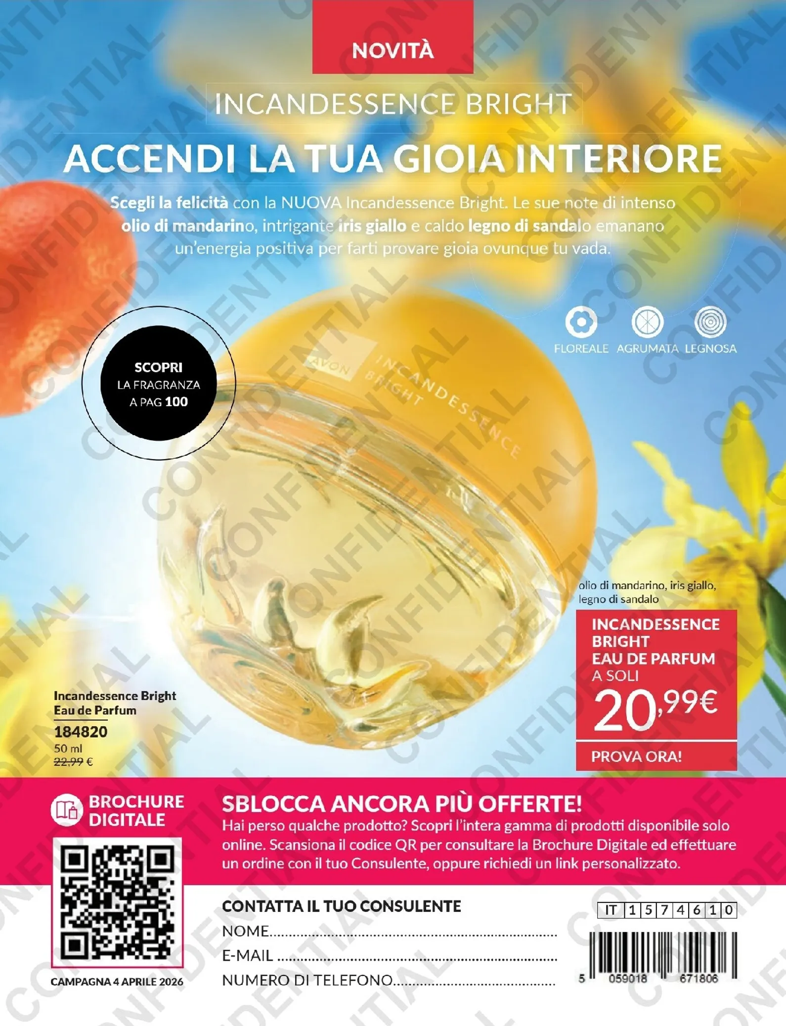 La gioia della primavera si accende con la nuova fragranza Incandessence Bright Eau de Parfum. Le sue note di mandarino, iris giallo e legno di sandalo creano un’essenza floreale e agrumata che emana energia positiva. In occasione del lancio, questo nuovo profumo è proposto a un prezzo speciale di soli 20,99€. Un’offerta imperdibile per chi desidera una fragranza che illumini le proprie giornate.