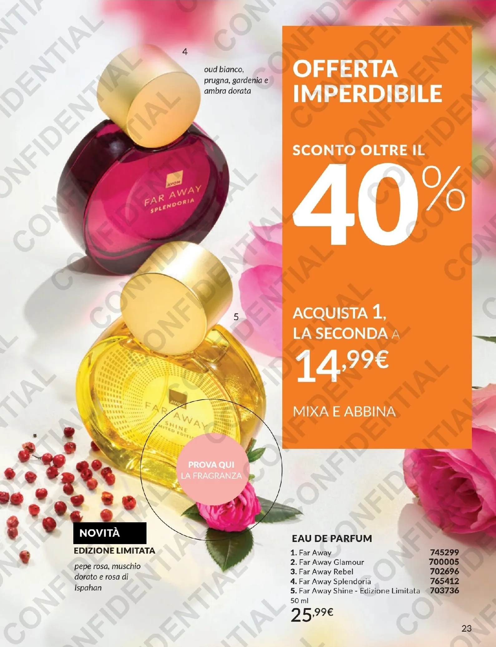 Sfogliando il catalogo, si scoprono innumerevoli nuovo offerte. Le sezioni Make-up, Skincare, e Corpo e Capelli sono piene di offerte vantaggiose. Questo è il momento giusto per esplorare i prodotti e approfittare degli sconti. Per essere sicuri di non perdere nessuna occasione, il nostro Avon Volantino dal 01/04/2026 è la risorsa perfetta. Consulta l’elenco completo delle campagne nella nostra sezione Avon Volantino.