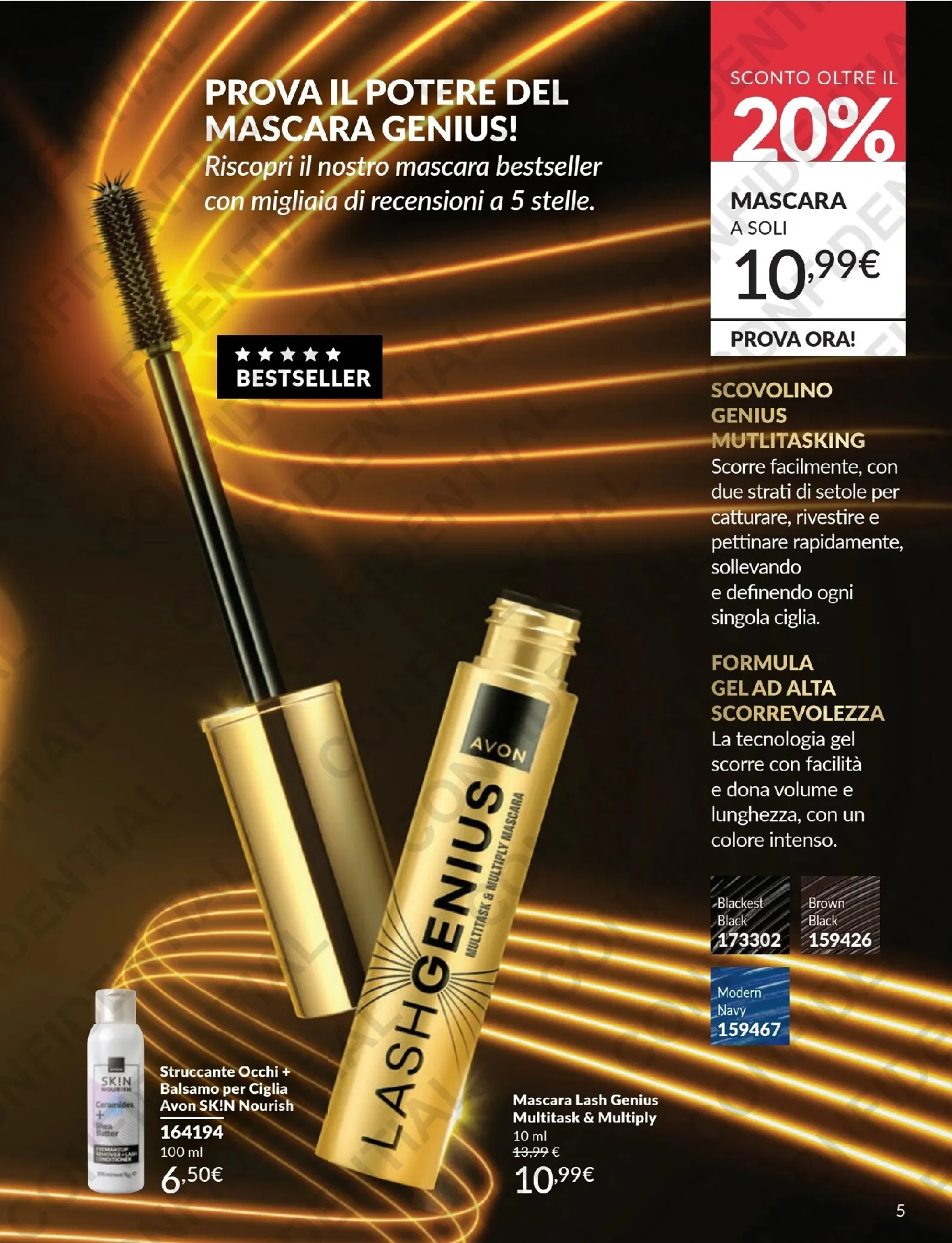 Il catalogo Avon di Aprile 2026 introduce una novità eccezionale: il mascara Lash Genius, ora in versione waterproof. Questo prodotto unico offre cinque benefici in una sola passata per uno sguardo definito e intenso che resiste a tutto. È l’occasione perfetta per aggiornare il proprio beauty case con le migliori Avon Volantino dal 01/04/2026 del momento. Tra le nuove offerte, questa è sicuramente una delle più attese per un make-up impeccabile.