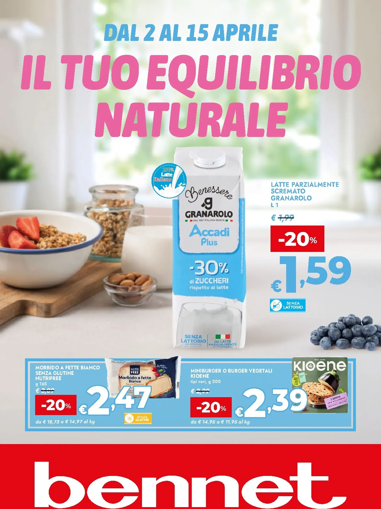 Bennet lancia il nuovo volantino “Il Tuo Equilibrio Naturale”, valido dal 2 al 15 aprile, con prodotti per il benessere a prezzi vantaggiosi. Tra le migliori offerte spicca il Latte Granarolo Accadì Plus a soli 1,59 €, perfetto per una colazione leggera. Questa promozione è un’ottima opportunità, e grazie a Bennet Volantino dal 02/04/2026 è ancora più facile scoprire tutte le occasioni di risparmio per la spesa quotidiana.