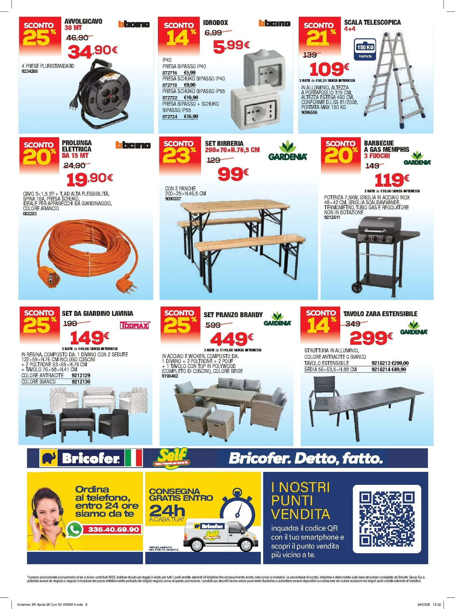 L’arredo giardino è protagonista con soluzioni eleganti come il set Lavina a 149€ o il set pranzo Brandy a 449€. Anche il tavolo Zara estensibile è un’ottima scelta per accogliere gli ospiti, scontato a 299€. Queste incredibili offerte sono l’opportunità per trasformare i propri spazi. Per scoprire ogni dettaglio, consulta il completo Bricofer Volantino digitale. Ricorda che con Bricofer Volantino dal 09/04/2026 il risparmio è garantito su centinaia di prodotti.