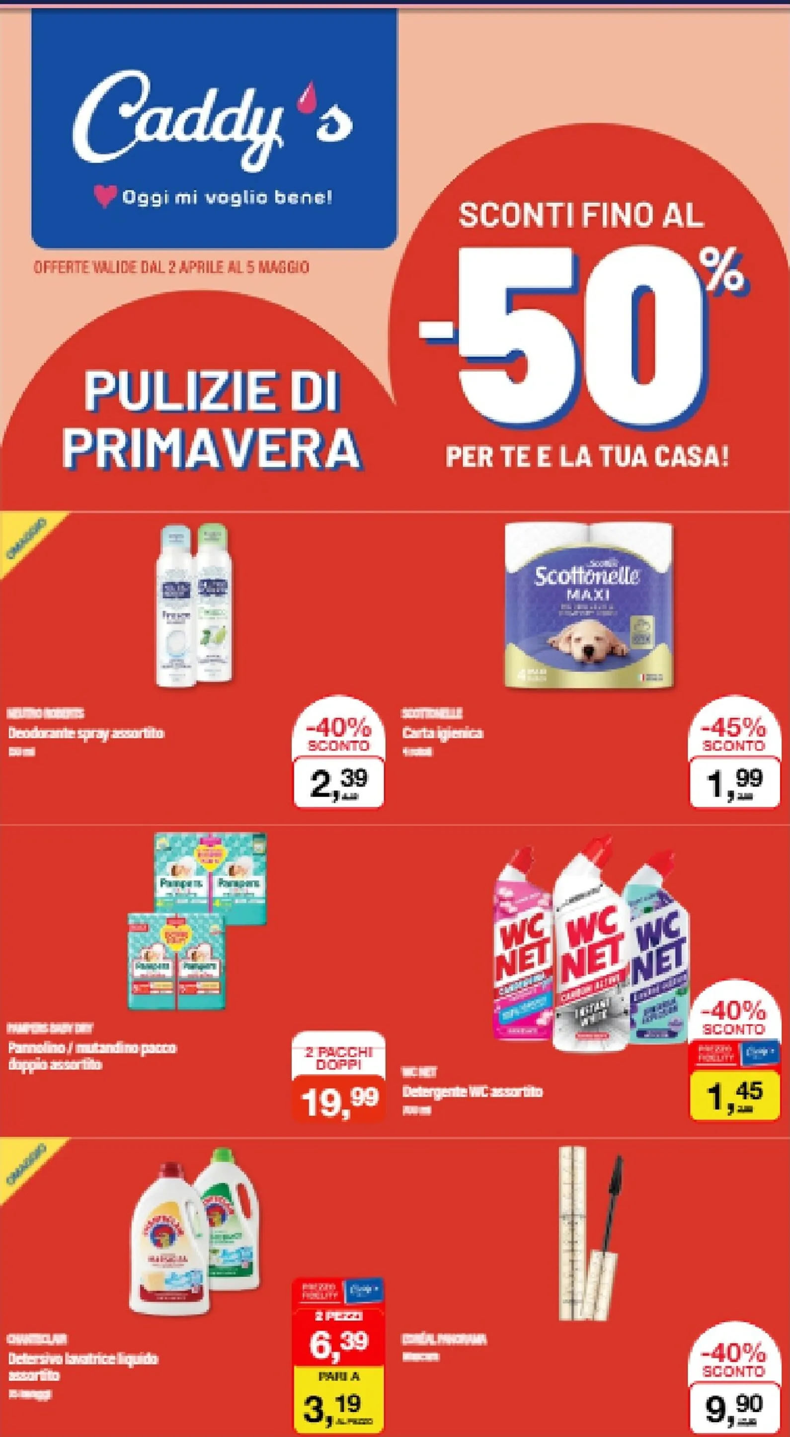 La primavera è arrivata e Caddy’s la celebra con un nuovo volantino ricco di offerte imperdibili, valide dal 2 aprile al 5 maggio. La campagna “Pulizie di Primavera” porta sconti spettacolari fino al 50% su una vasta gamma di prodotti per la casa e la persona. Questa è una fantastica occasione per fare scorta e rinnovare le proprie scorte. Approfittare di Caddys Volantino dal 02/04/2026 è il modo migliore per dare il benvenuto alla nuova stagione risparmiando.