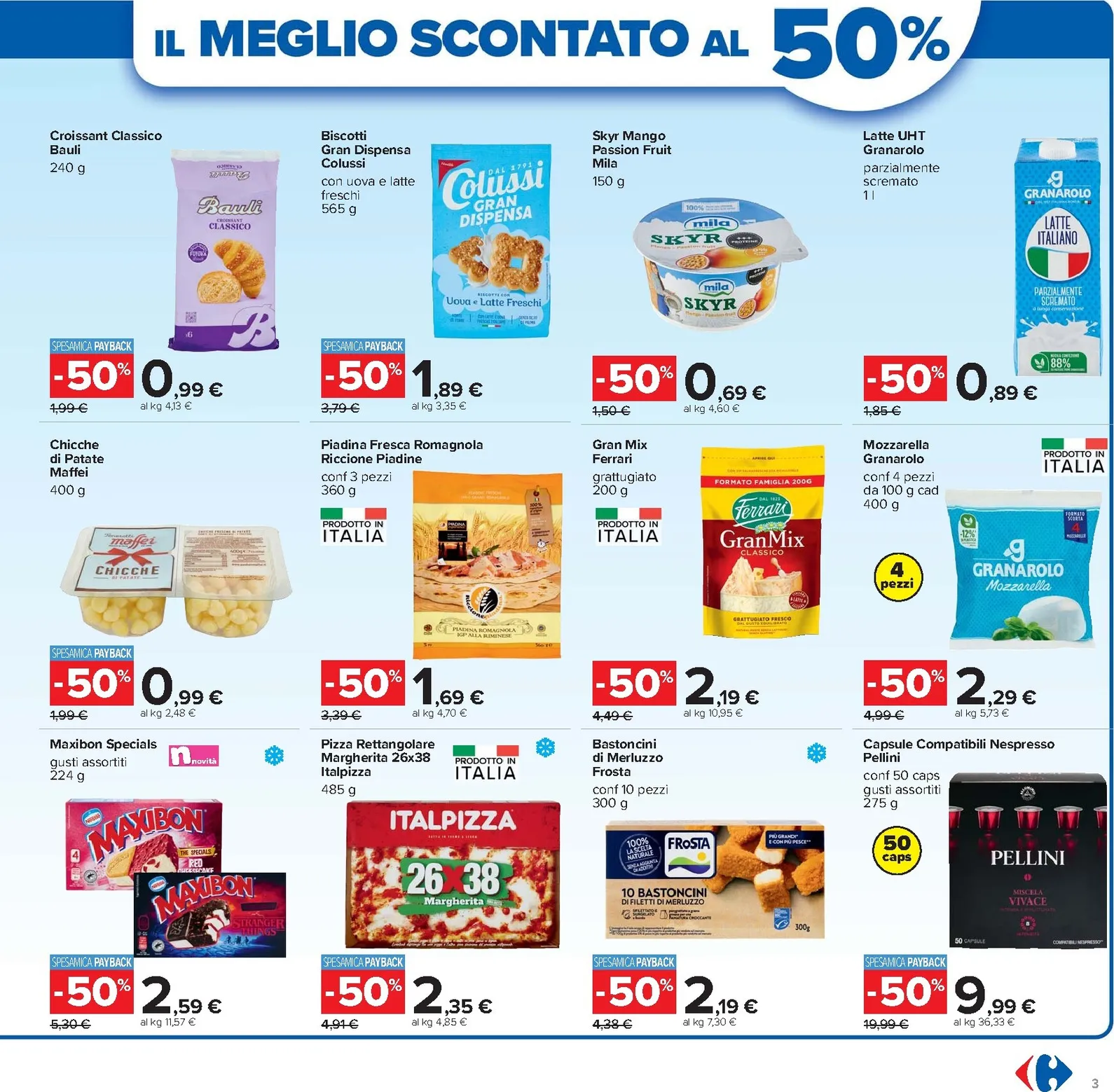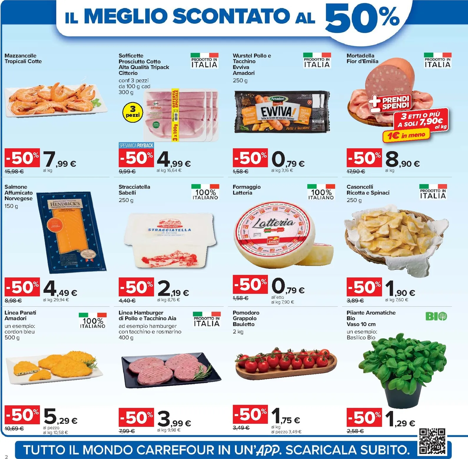 La convenienza prosegue nel reparto freschi con la selezione “Il Meglio Scontato al 50%”. Spiccano le mazzancolle tropicali a 7,99 € al kg, il salmone affumicato Hendrick’s a 4,49 € e il prosciutto cotto Citterio in tripack a 4,99 €. Anche i latticini sono in forte sconto, con il Formaggio Latteria a 0,79 € all’etto e le mozzarelle Granarolo a 2,29 €, insieme a prodotti BIO.