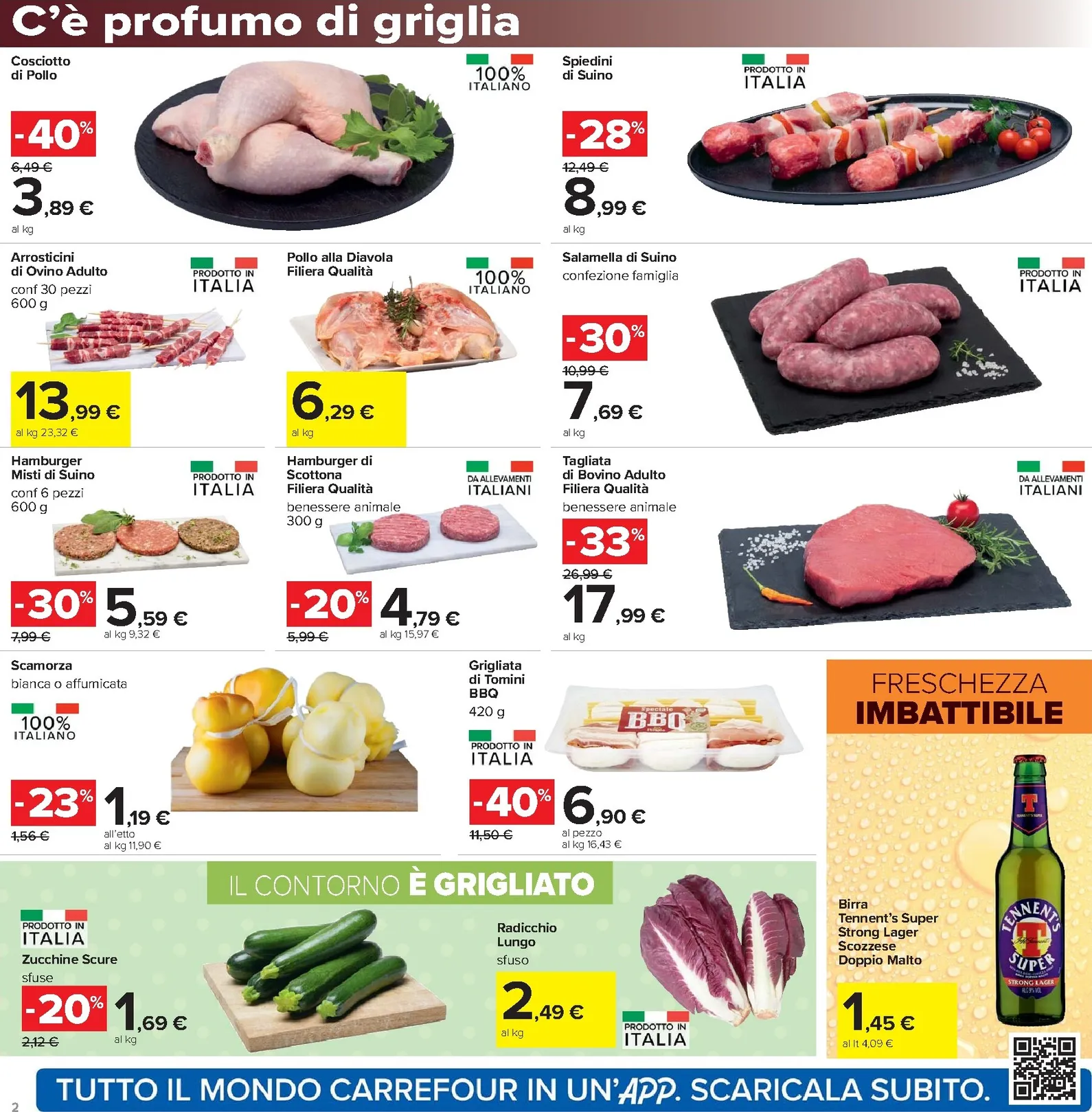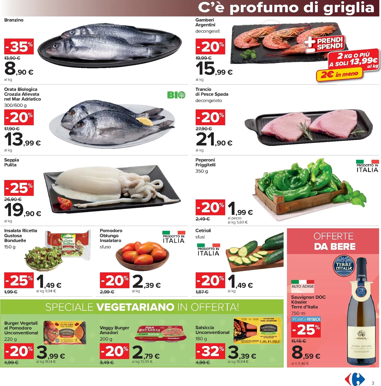 La selezione per il barbecue prosegue con la tagliata di bovino adulto e la pratica grigliata di Termini BBQ a 6,90€. Per chi preferisce il pesce, il volantino offre il branzino a 8,90€ al kg e i gamberi argentini. Non mancano i contorni perfetti come le zucchine scure e il radicchio lungo, disponibili a prezzi speciali per completare ogni menù con freschezza.