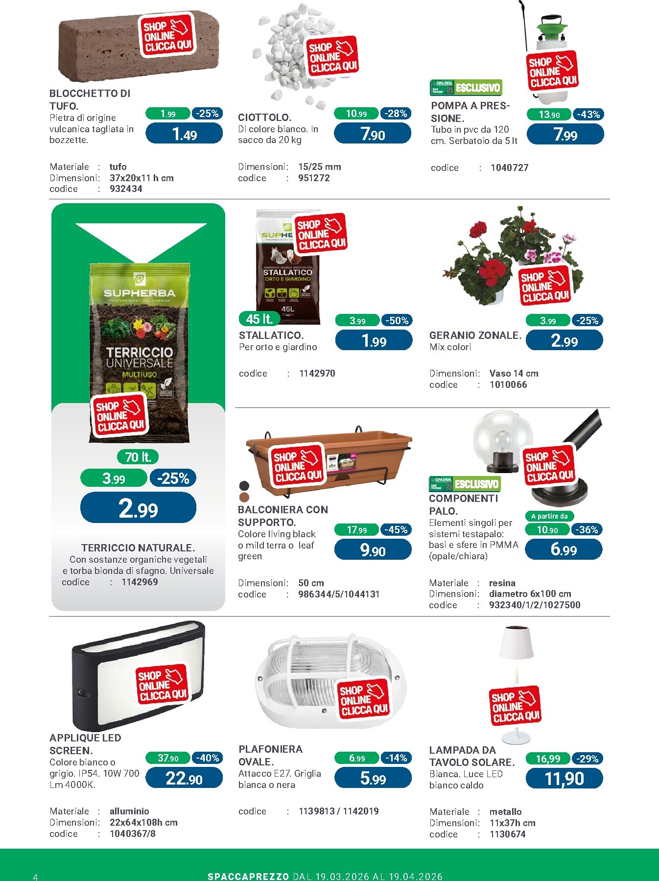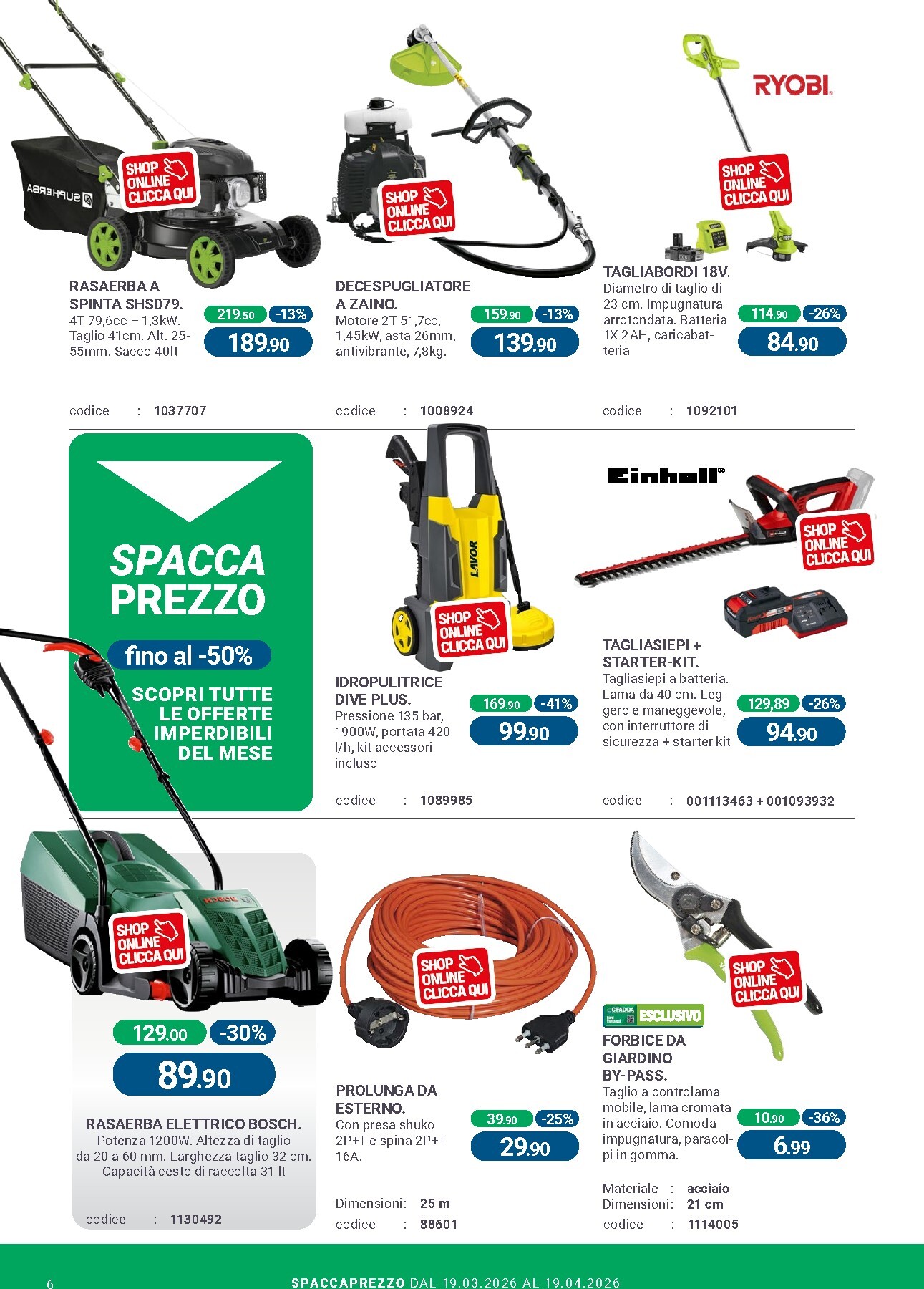 Le occasioni non finiscono qui, con il decespugliatore a zaino a 139,90€ e le forbici da giardino a 6,99€. Queste nuovo offerte rendono ogni progetto più accessibile. Consultare il Cfadda Volantino dal 19/03/2026 è il modo migliore per non perdere nessuna opportunità. Per tutti i dettagli e per scoprire l’intera gamma di prodotti scontati, visitate la pagina ufficiale del Cfadda Volantino e preparatevi a risparmiare.