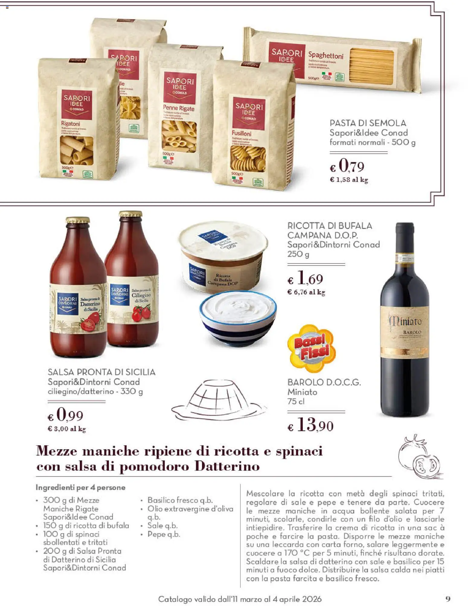 Il catalogo è strutturato come un vero e proprio menù, per accompagnare i clienti nella creazione di un pasto pasquale perfetto dall’inizio alla fine. Si parte con gli antipasti, “Un mare di sapori”, per poi passare ai primi piatti con le “Mezze maniche primaverili”. Il viaggio continua con i secondi, “Tesoro di terra”, e si conclude in dolcezza con la “Cascata d’arancio”. Ogni sezione è pensata per offrire spunti e idee, utilizzando ingredienti selezionati che esaltano i sapori della stagione. È l’occasione ideale per sperimentare in cucina e sorprendere i propri ospiti con piatti raffinati e ricchi di gusto, seguendo le proposte esclusive di Conad.