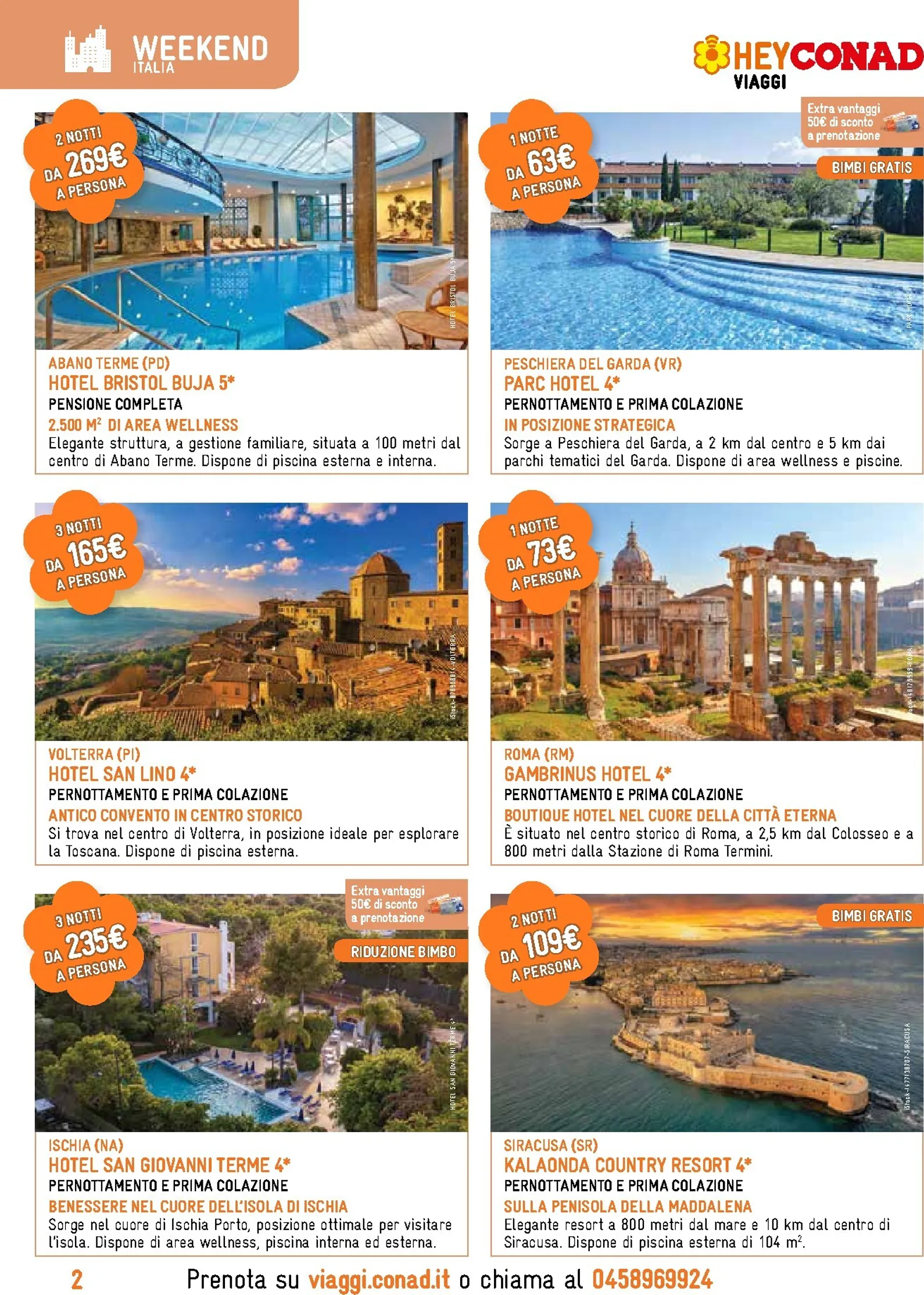 Per chi desidera un weekend di relax in Italia, le opzioni sono tantissime. Ad Abano Terme, l’Hotel Bristol Buja 5* offre un soggiorno in pensione completa da 269€ per due notti. Se preferisci il lago, a Peschiera del Garda il Parc Hotel 4* ti aspetta da 63€ a notte, in posizione strategica. Per un tuffo nella storia, l’Hotel San Lino 4* a Volterra, da 165€ per tre notti, è la base ideale per esplorare la Toscana.