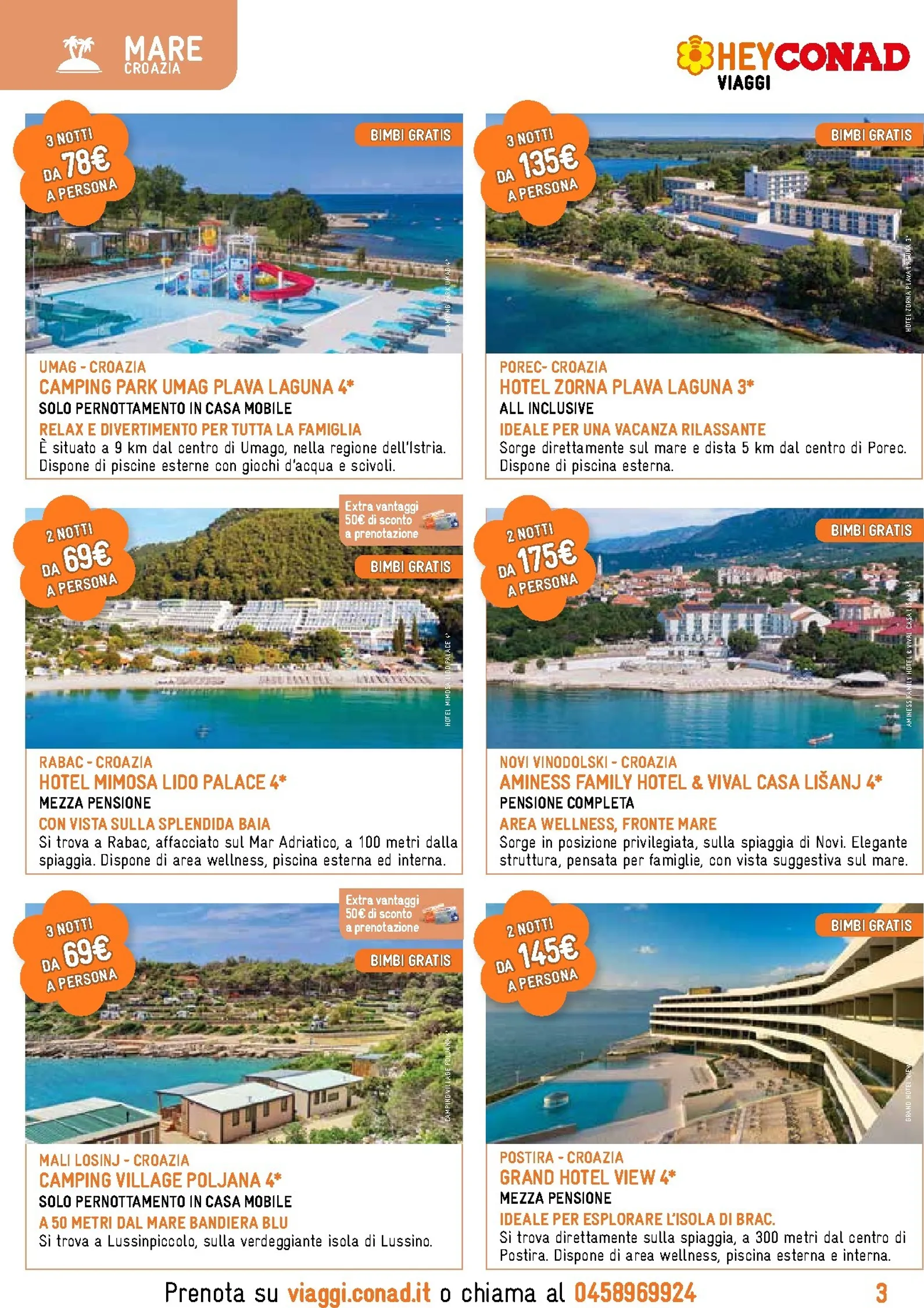 Se sogni il mare cristallino della Croazia, le soluzioni sono pensate per ogni esigenza. A Umag, il Camping Park Plava Laguna 4* offre divertimento per la famiglia da 78€ per tre notti. A Rabac, l’Hotel Mimosa Lido Palace 4* propone un soggiorno in mezza pensione in una splendida baia da 69€ per due notti. Questa è solo una piccola anteprima delle destinazioni, molte con l’opzione “Bimbi Gratis” per una vacanza ancora più conveniente.