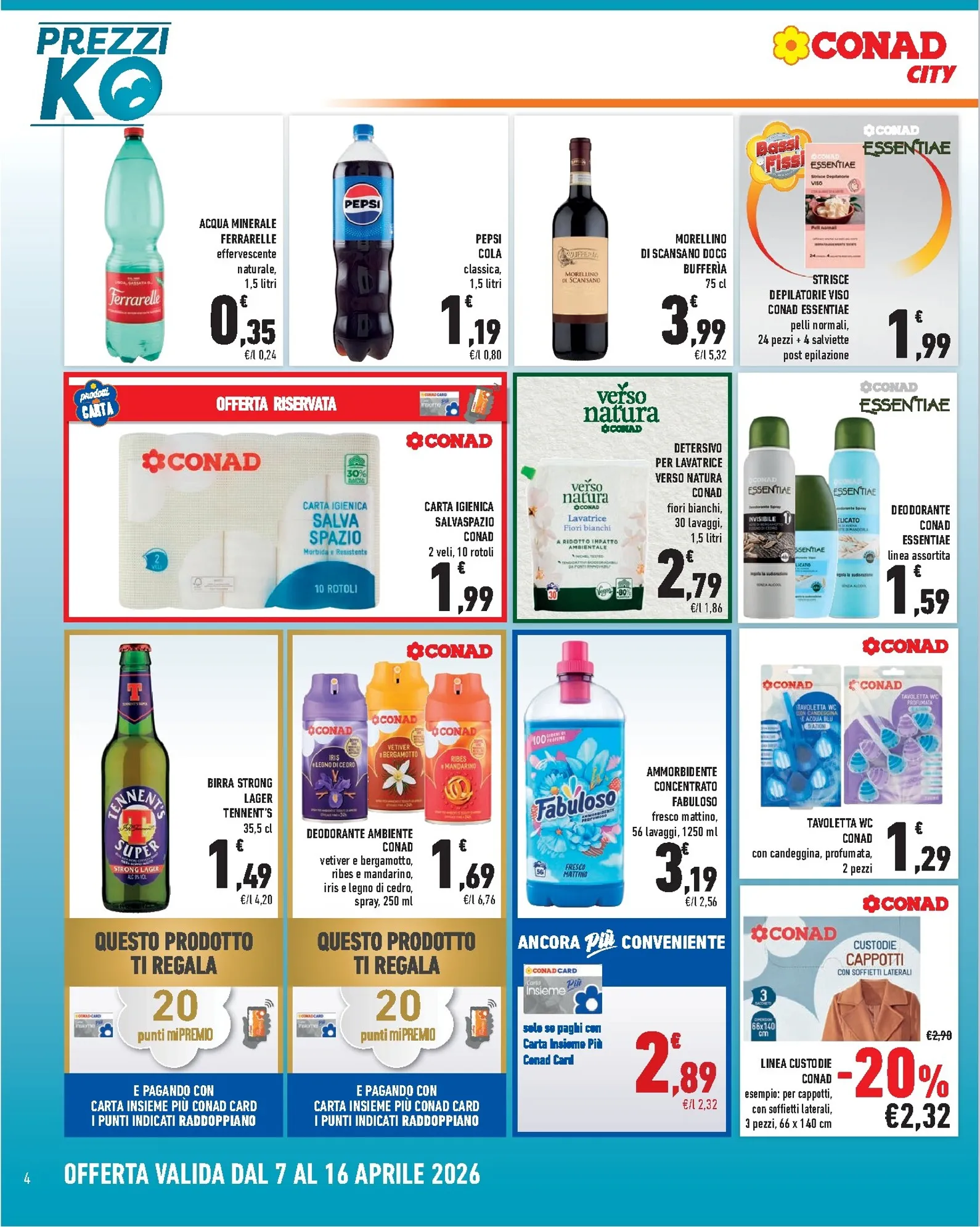 Conad City lancia la promozione “Prezzi KO”, valida dal 7 al 16 aprile 2026, un’occasione imperdibile per una spesa conveniente. Le offerte di questa settimana sono state pensate per ogni famiglia, garantendo risparmio e qualità. Sfogliando il Conad Volantino dal 07/04/2026 troverai sconti eccezionali su prodotti di uso quotidiano, come il formaggio Philadelphia a 1,99€ e l’autentico Parmigiano Reggiano DOP Conad a soli 18,90€ al chilo.