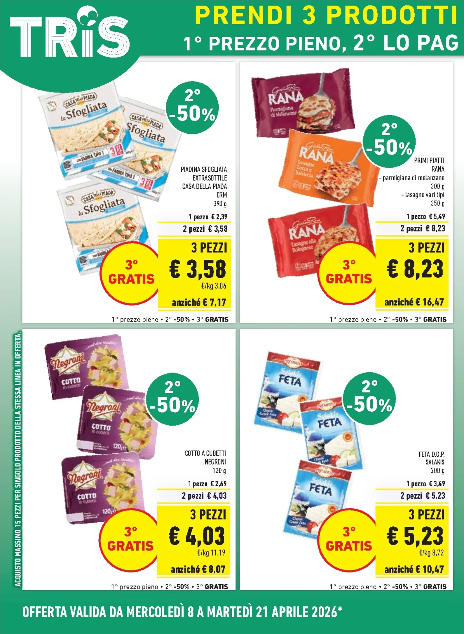 Oltre all’offerta Tris, Conad City premia la tua fedeltà con “Il Buono della Settimana”. Facendo la spesa dal 6 al 12 aprile, riceverai un buono sconto da utilizzare la settimana successiva sulla Piadina Fresca Sapori&Dintorni, pagandola solo 0,99€. È un modo intelligente per provare l’eccellenza dei prodotti a marchio Conad a un prezzo speciale, valido solo per un periodo limitato.