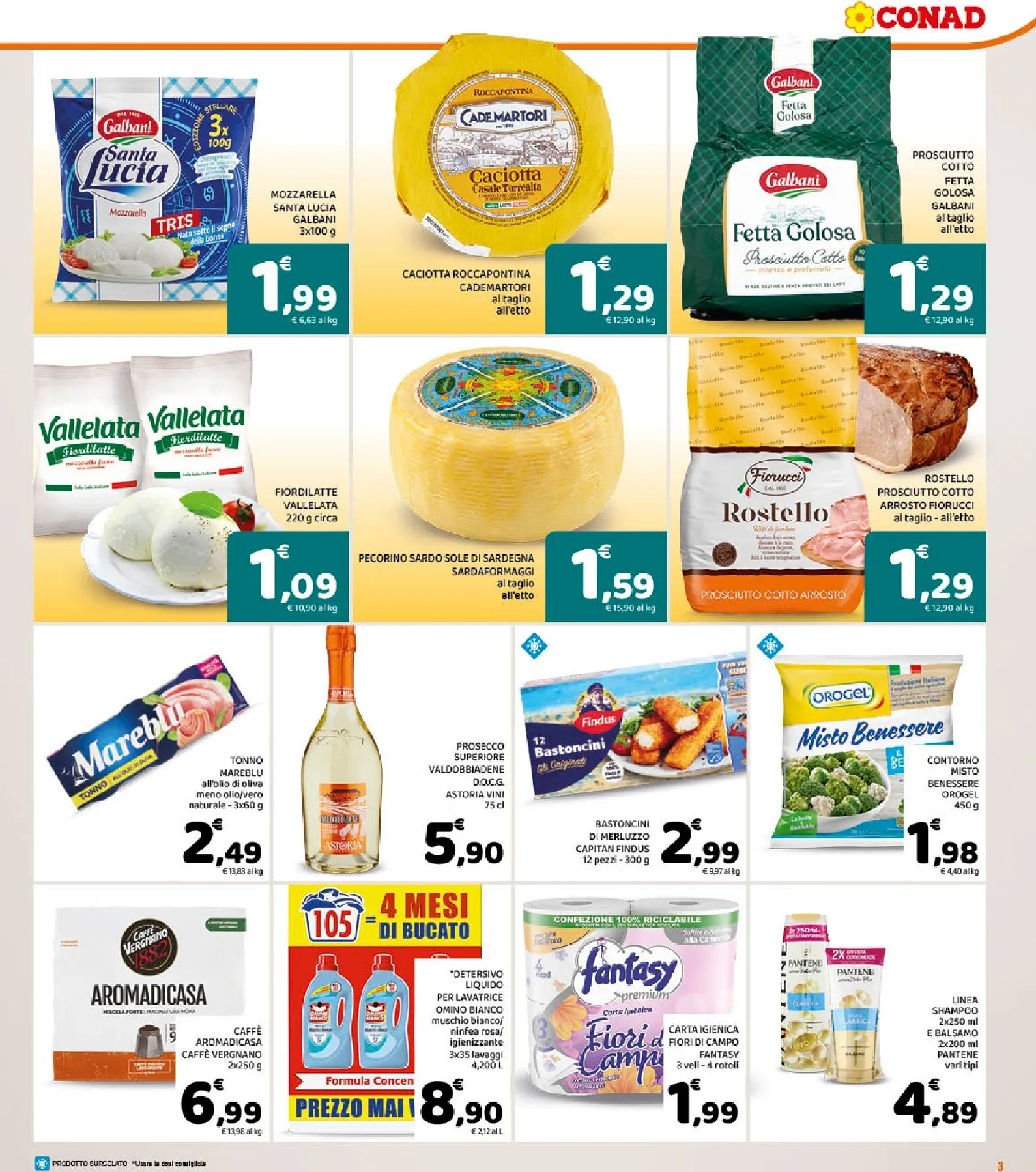 La convenienza continua con una vasta selezione di prodotti. Dalla Caciotta Roccapontina Cademartori alla Feta Galbani, entrambe a 1,29€ l’etto, fino al Prosciutto Cotto Rostello Fiorucci allo stesso prezzo. Per la dispensa, la pasta fresca Rana a 1,99€ e i Bastoncini di merluzzo Findus a 2,99€ sono occasioni da non perdere. Ogni reparto riserva sconti pensati per le esigenze di tutta la famiglia.