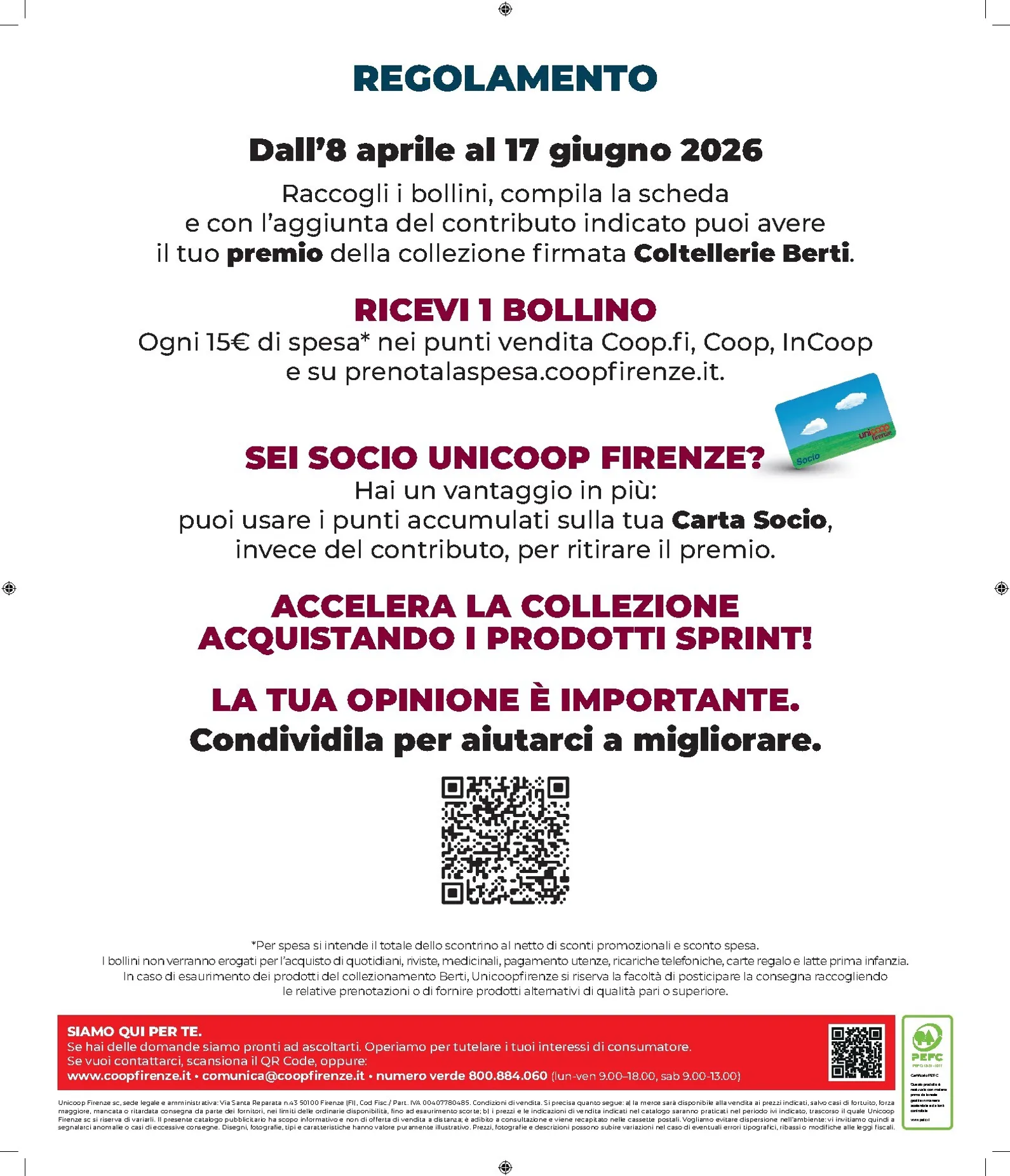 Preparatevi a trasformare la vostra cucina con la nuova raccolta punti di Coop.fi. Dall’8 aprile al 17 giugno 2026, potrete collezionare i prestigiosi coltelli della linea Compendio di Coltellerie Berti, un’eccellenza italiana fondata nel 1895. Ogni 15 euro di spesa vi daranno diritto a un bollino per iniziare questa fantastica avventura. Queste Coop Volantino dal 08/04/2026 rappresentano un’occasione unica per portare in tavola la qualità artigianale.