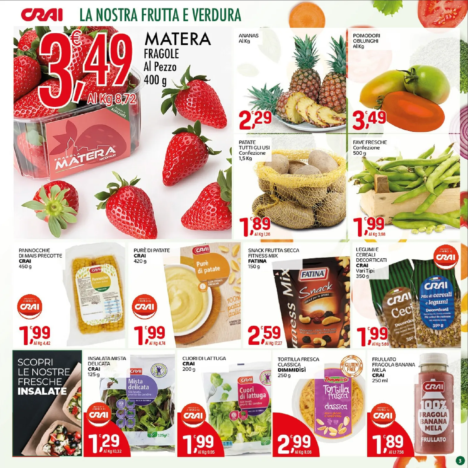 Il reparto ortofrutta si tinge di rosso con le deliziose fragole di Matera a 3,49€, un’esplosione di sapore primaverile. Non mancano ananas, pomodori e fave fresche per arricchire le vostre tavole con prodotti di stagione. Per la dispensa, Crai propone soluzioni pratiche come il purè di patate a 1,99€ e le tortillas classiche senza glutine a 2,99€. Anche i legumi e cereali in mix Crai a 1,99€ sono perfetti per preparare piatti sani.