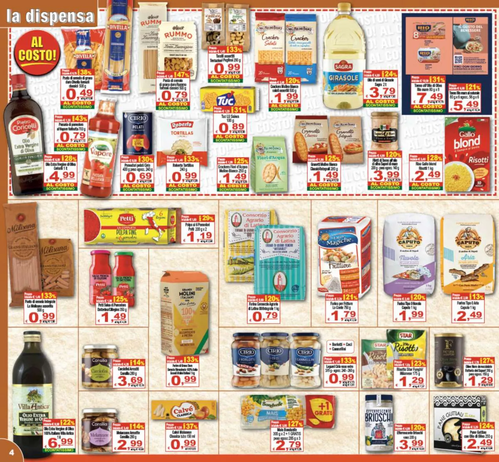 La convenienza prosegue con prodotti per la dispensa. L’olio extra vergine Coricelli è in offerta a 4,99 €, mentre il latte Arborea costa solo 0,79 €. Per le famiglie, la confezione di pannolini Pampers Baby-Dry è a 19,99 €, un notevole risparmio. Anche la cura della casa è scontata con il detersivo Sole a 2,99 €. Queste nuovo offerte “Al Costo” sono pensate per alleggerire il carrello della spesa quotidiana, garantendo la massima qualità.