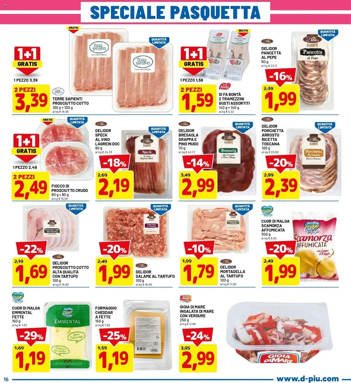 Le Offerte Speciali dal Giovedì di D Piu sono arrivate, portando convenienza imperdibile! Il nuovo Volantino D Piu dal 26.03.2026 è pronto a riempire i carrelli con prodotti di qualità a prezzi eccezionali, perfetti per celebrare la Pasqua e rifornire la dispensa. Scoprite sconti incredibili e promozioni "1+1 GRATIS" che renderanno la spesa più leggera e gustosa.