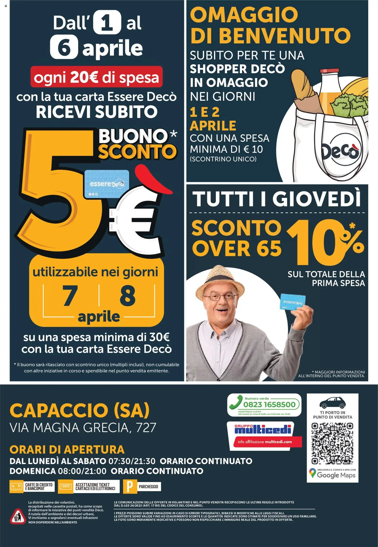 Deco volantino 1 al 6 aprile 2026 Capaccio Nuova gestione Grandi Novit