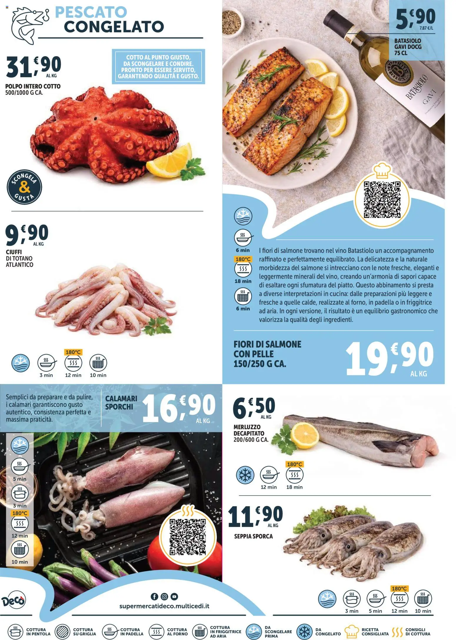 All’interno del catalogo, il reparto pesce congelato offre soluzioni per tutti i gusti. I Fiori di Salmone con pelle, a 19,90€ al kg, sono ideali per preparazioni raffinate al forno o in padella, garantendo un piatto sano e saporito. Per chi ama i sapori più tradizionali, i Calamari Sporchi a 16,90€ al kg e la Seppia Sporca a 11,90€ al kg offrono la base perfetta per fritture croccanti o deliziosi sughi per la pasta. Per accompagnare queste prelibatezze, il volantino propone anche il vino Batasiolo Gavi DOCG a 5,90€, un abbinamento elegante che esalta i sapori del pesce.
