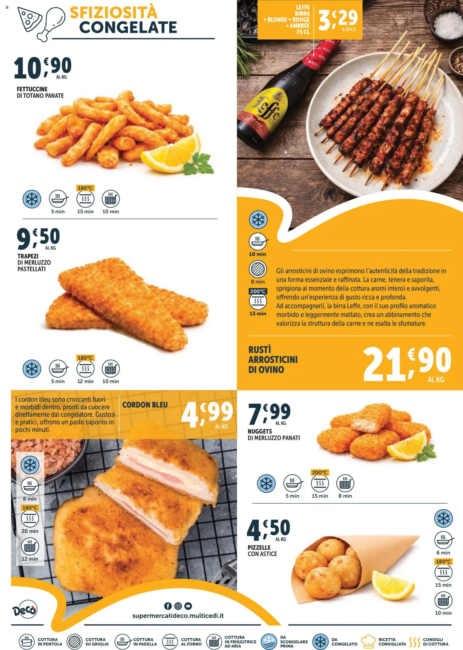 Non solo pesce: il volantino Deco dal 27 marzo al 6 aprile 2026 è ricco di soluzioni veloci e sfiziose per aperitivi o cene in famiglia. Gli amanti della carne non potranno resistere ai Rusti Arrosticini di Ovino a 21,90€ al kg, un classico intramontabile che porta allegria in tavola. Per i più piccoli (e non solo), troviamo i Nuggets di Merluzzo Panati a 7,99€ al kg e il classico Cordon Bleu a soli 4,99€ al kg. Queste proposte, pronte in pochi minuti, sono ideali per chi ha poco tempo ma non vuole rinunciare al gusto.