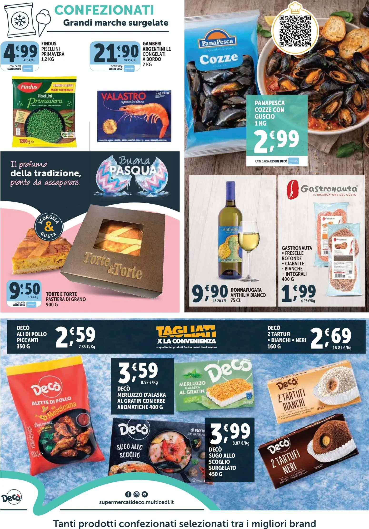 La Pasqua si avvicina e Decò celebra l’occasione con una selezione eccezionale di prodotti surgelati di alta qualità. Il volantino Deco dal 27 marzo al 6 aprile 2026 è un vero e proprio invito a riscoprire il gusto del mare e le sfiziosità più pratiche per arricchire la tavola delle feste. L’offerta di copertina è imperdibile: il Polpo Riccio del Marocco a soli 16,90€ al kg, perfetto per insalate e piatti principali gustosi e teneri. Inoltre, Decò premia la tua spesa: con almeno 25€ di acquisti e la carta Essere Decò, ricevi subito un buono sconto da 5€, utilizzabile il 7 e 8 aprile su una spesa minima di 20€.