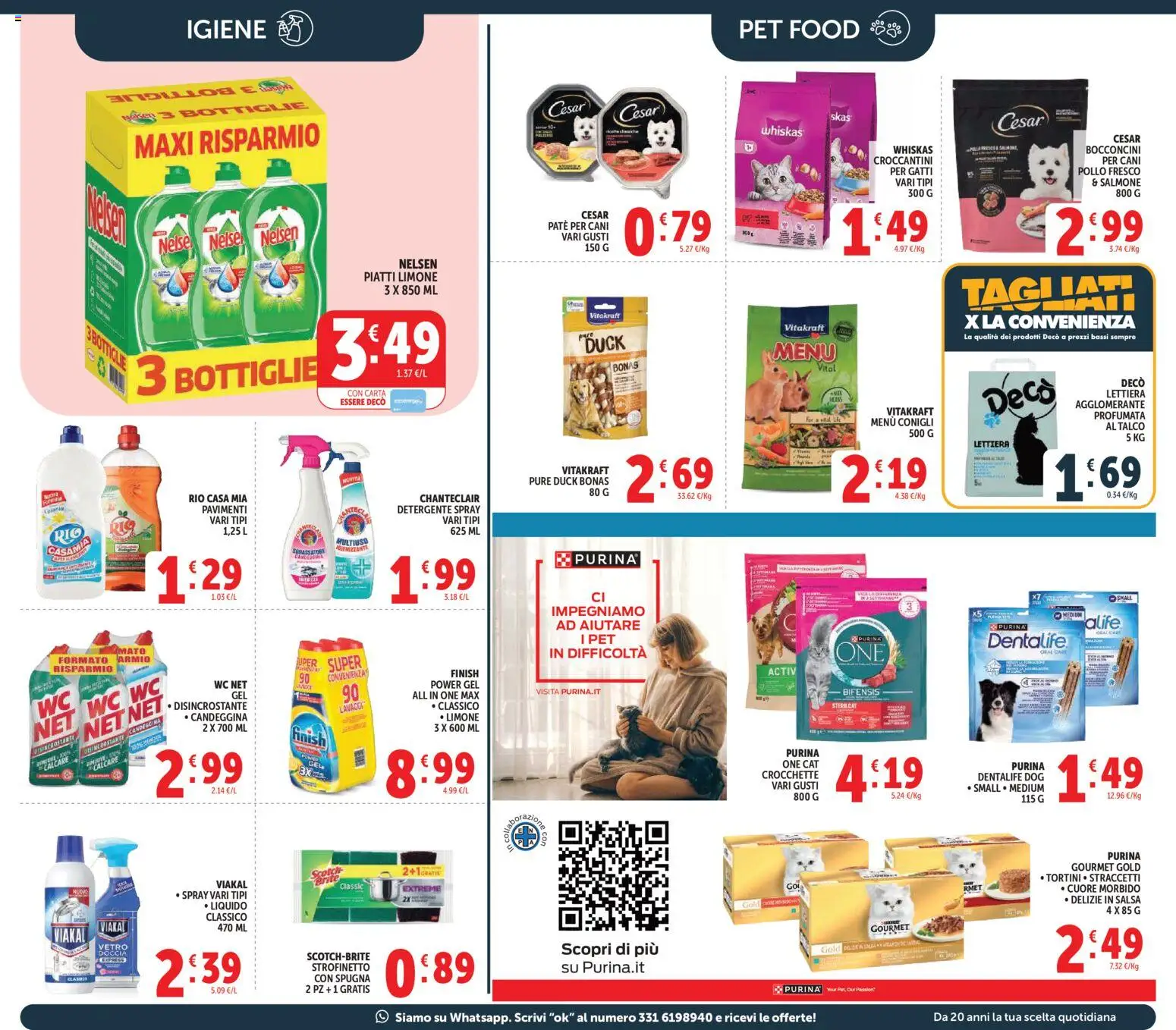 Le offerte non si limitano ai prodotti pasquali. Decò pensa anche ai nostri amici a quattro zampe, con i bocconcini Whiskas Pure Delight a 1,99€ e le crocchette Miglior Cane a 5,49€. Per la casa, troviamo i tappettini igienici Decò a 3,39€ e le batterie Energizer Max in formato convenienza a 3,99€. Un’occasione perfetta per fare scorta di tutto il necessario, approfittando dei prezzi bassi garantiti da Decò.