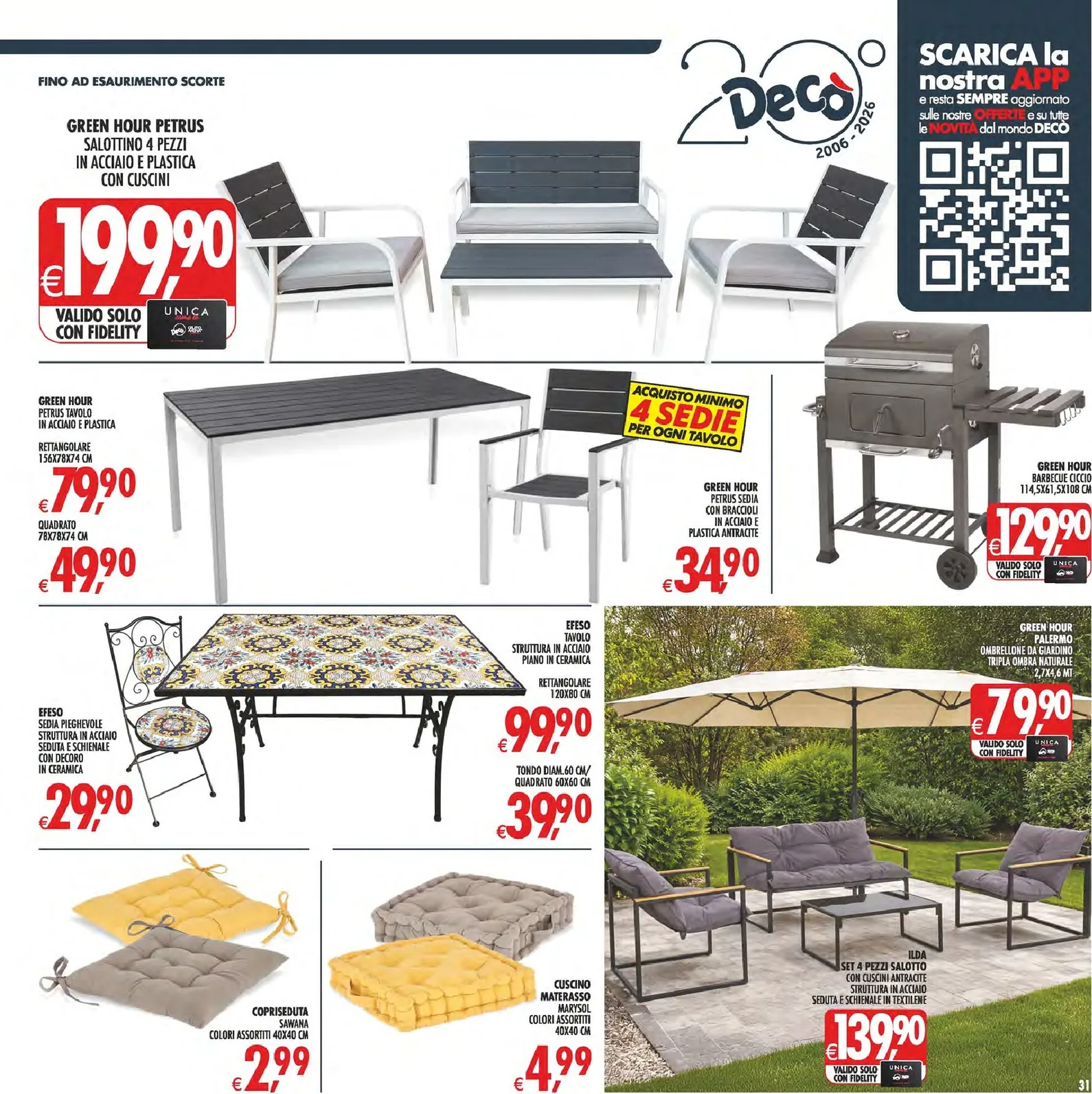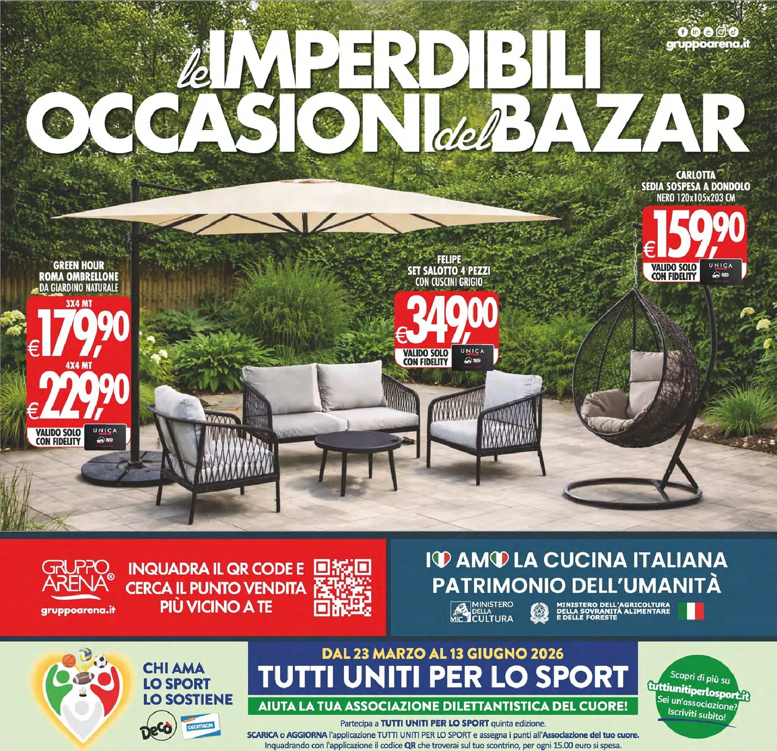 Il volantino propone anche le “Imperdibili Occasioni del Bazar” per rinnovare il giardino, come l’ombrellone Green Hour o il set salotto Felipex. Per non perdere nessuna di queste opportunità, consultate il nuovo Deco Volantino dal 07/04/2026 e pianificate i vostri acquisti. Rimanete sempre aggiornati su tutte le nuovo offerte visitando la nostra sezione dedicata al Deco Volantino, la vostra guida completa al risparmio intelligente.