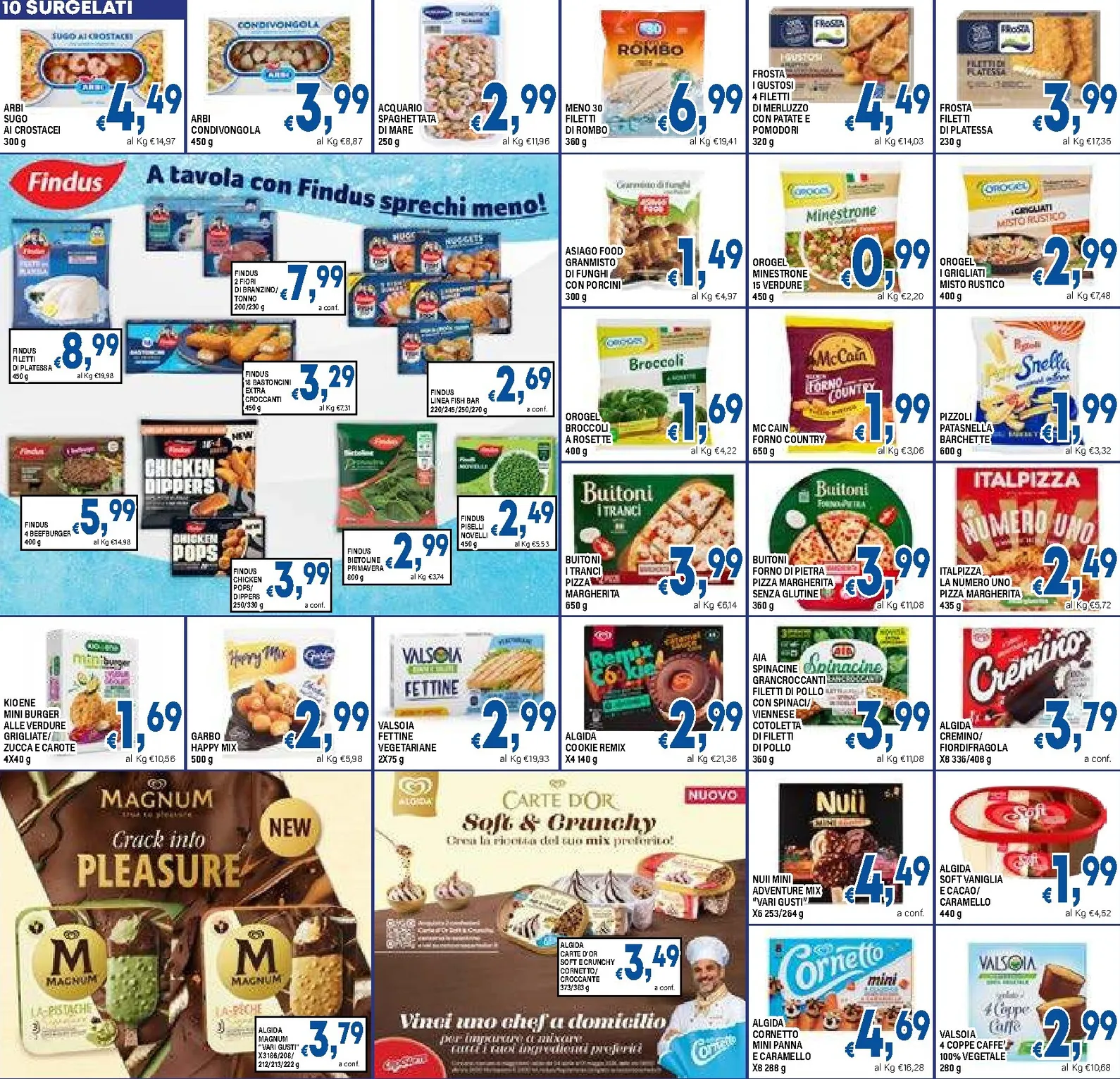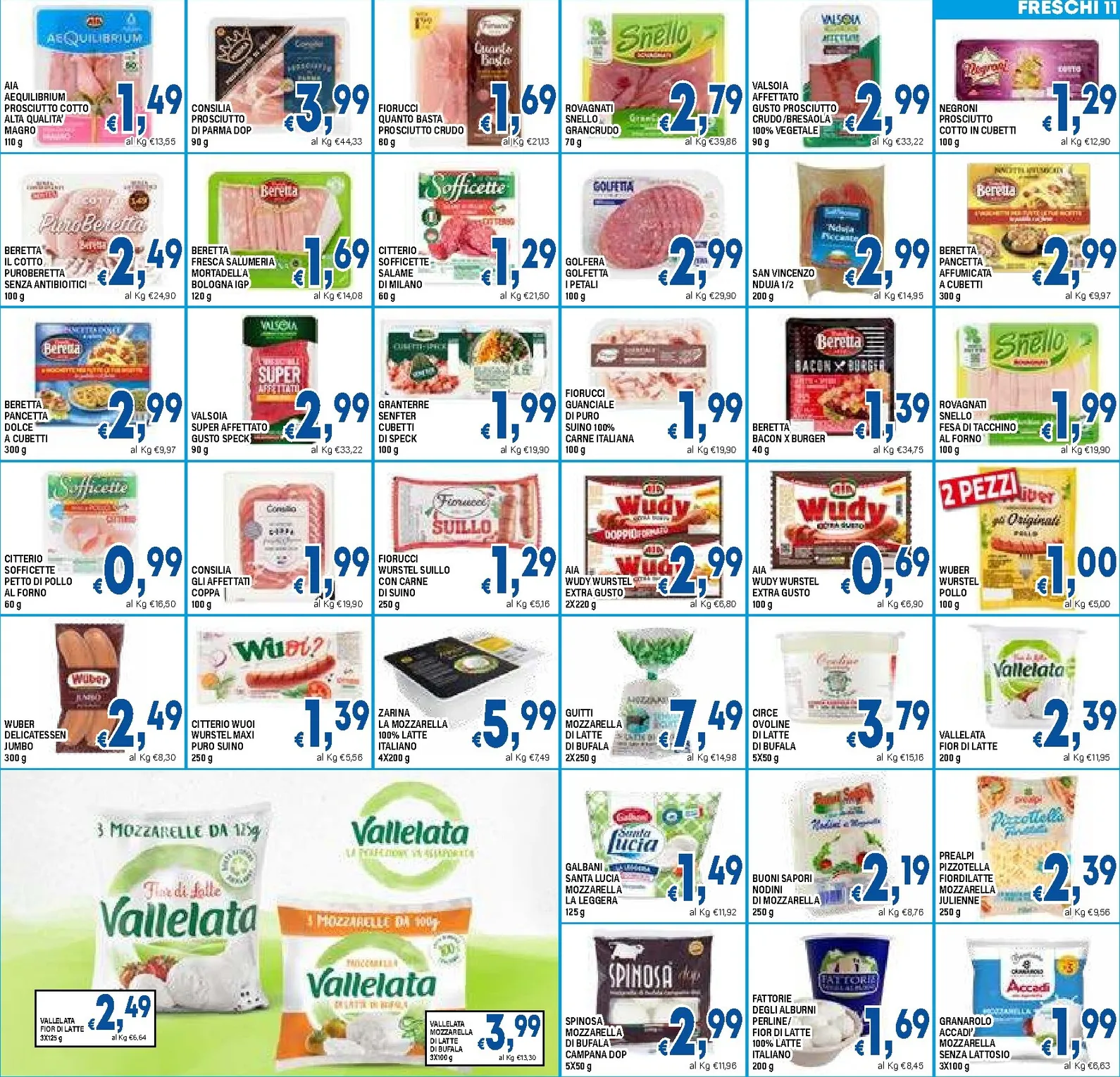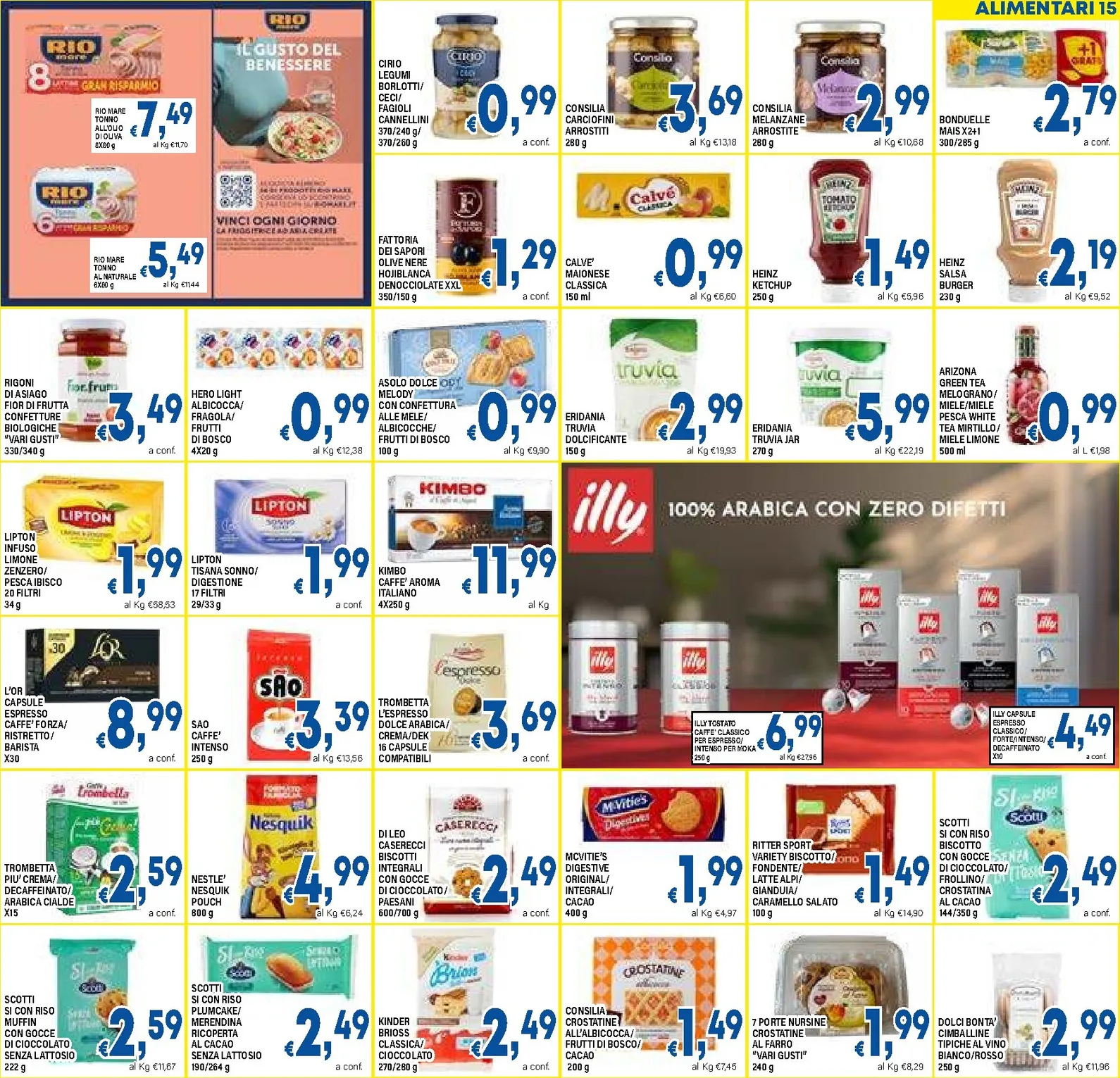 All’interno del volantino la convenienza continua. La dispensa si arricchisce con la pasta Rummo e il riso Gallo a soli 0,79 €. Per la colazione, ci sono i cereali Kellogg’s Extra a 2,49 € e una vasta scelta di biscotti Mulino Bianco. Il banco frigo propone prodotti freschi come lo yogurt Fage Total a 3,99 €, la mozzarella Granarolo a 1,99 € e il formaggio Philadelphia a 1,49 €.