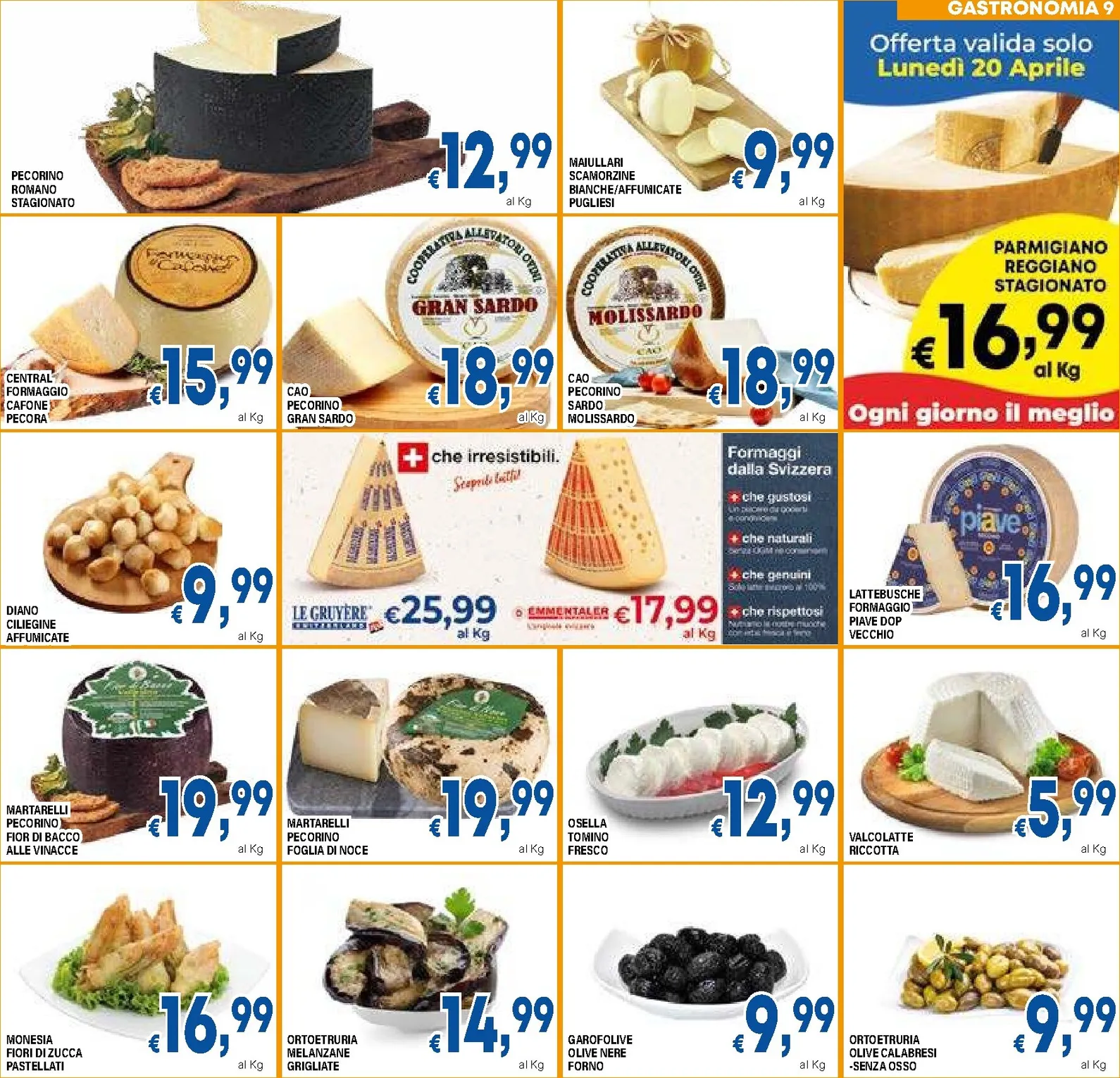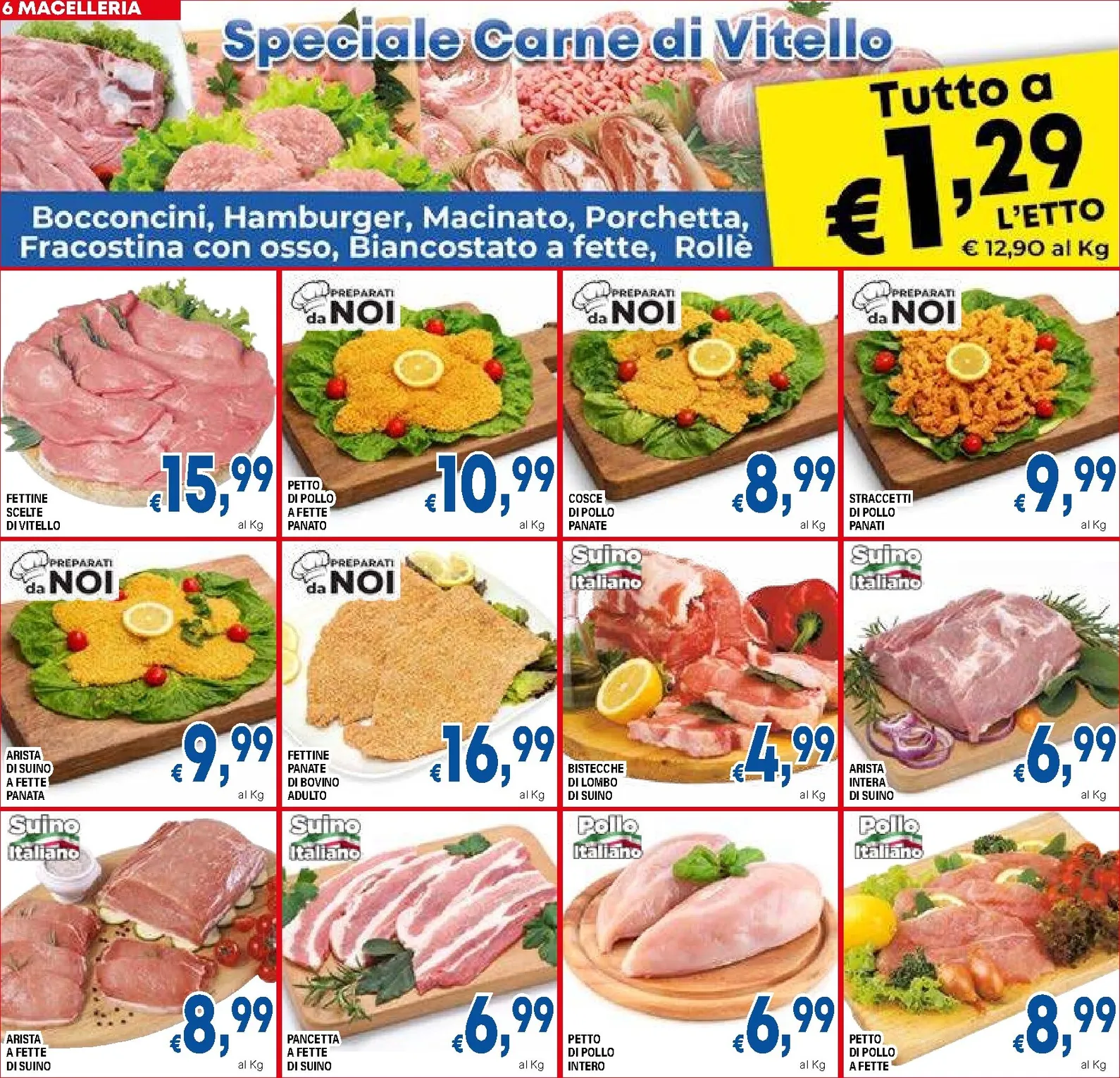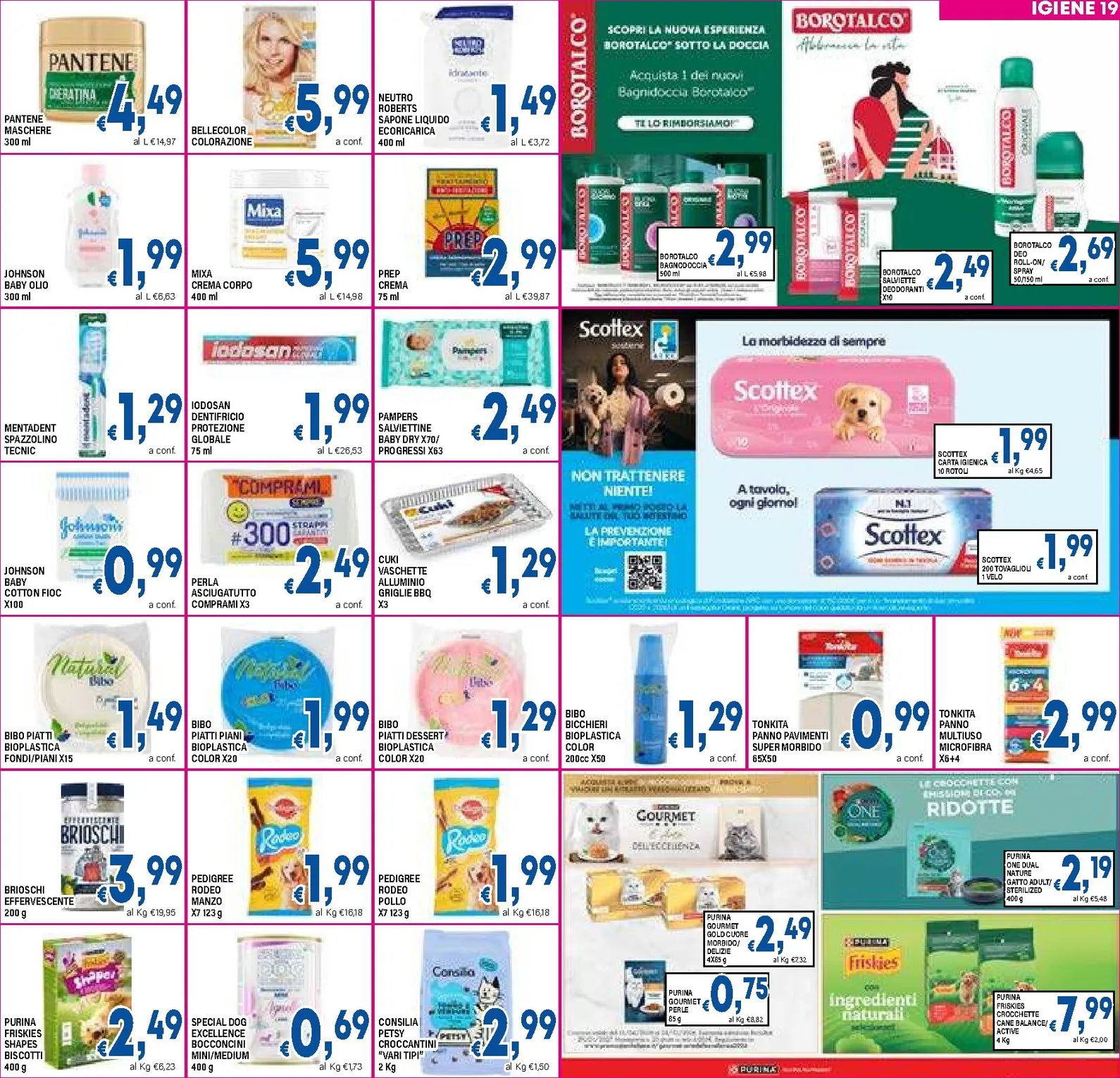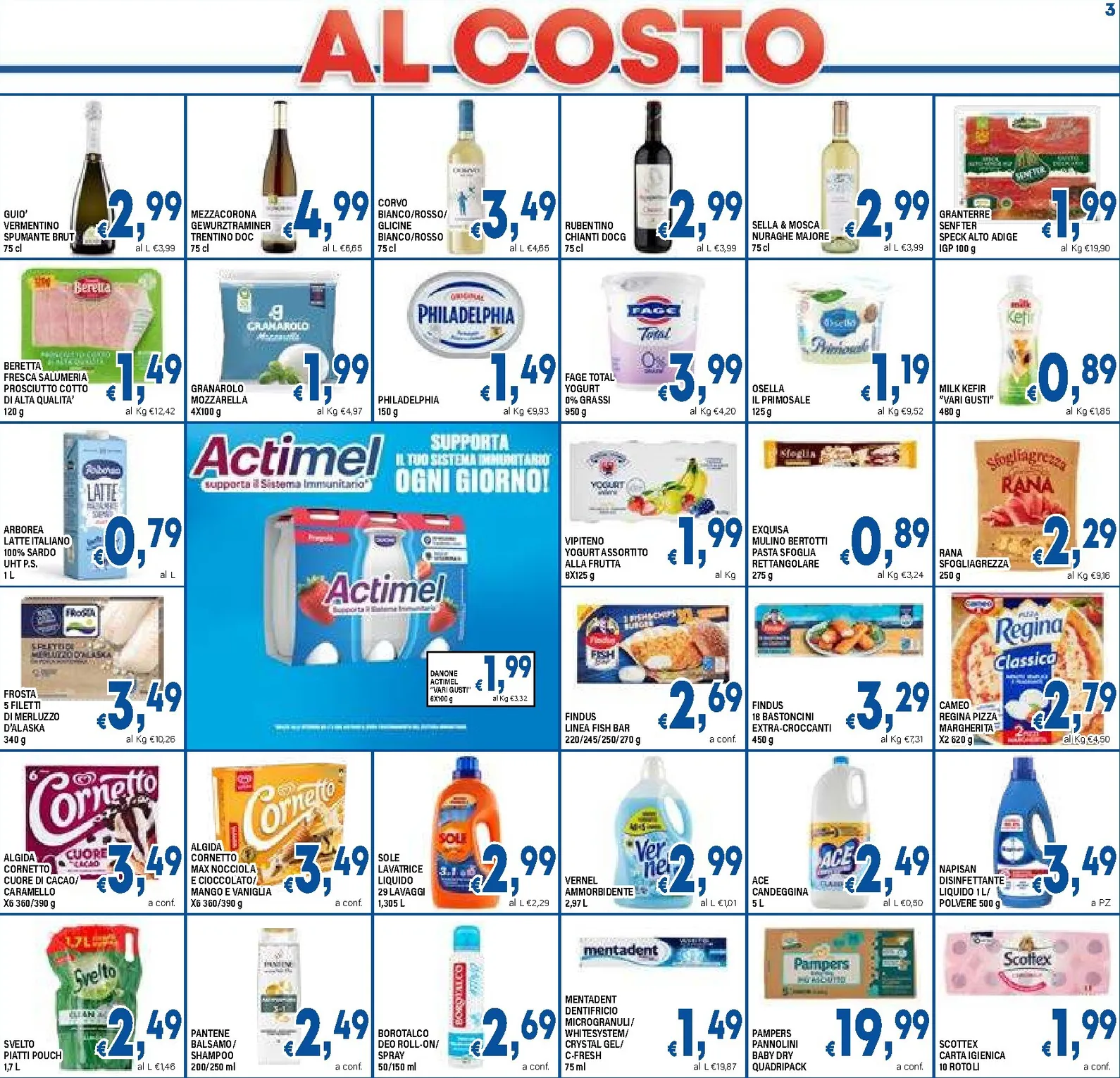 Le offerte in copertina sono un ottimo esempio del risparmio. L’Olio Extra Vergine Coricelli da 1L è proposto a 4,99 €, mentre la Passata Valfrutta a 0,79 €. Per chi cerca la qualità, il Prosciutto di Parma è a 19,99 € al kg. Attenzione alle famiglie con il maxi pacco di pannolini Pampers a 19,99 € e la confezione di Tonno Rio Mare a 7,49 €. Per la colazione, i frollini Gocciole Pavesi sono a 1,99 €.