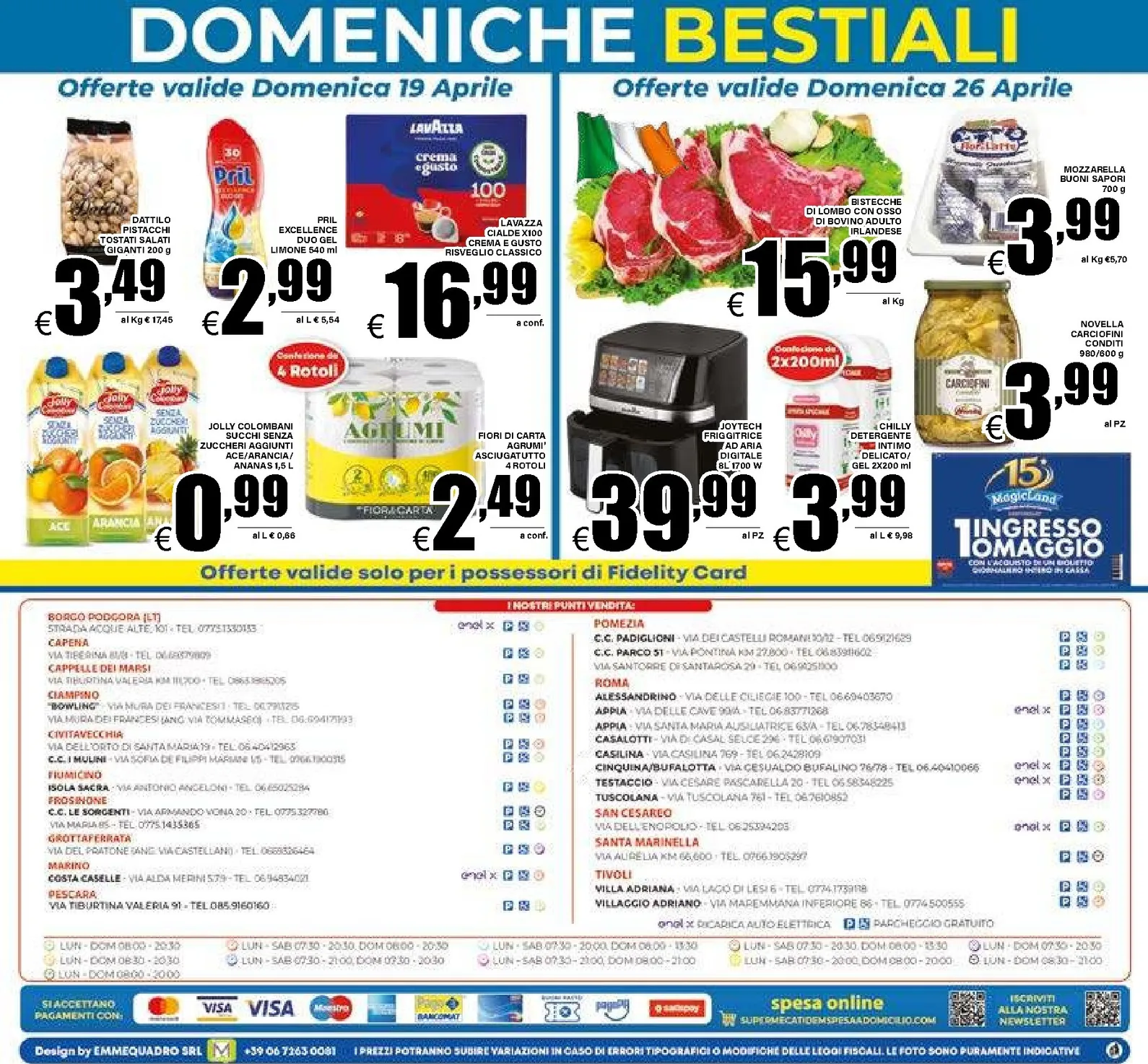Non dimenticate le “Domeniche Bestiali”, con nuovo offerte esclusive come il caffè Lavazza e la friggitrice ad aria. La cantina offre una selezione di vini a partire da 2,99 €. Per scoprire tutti i dettagli e pianificare gli acquisti, consultate il Dem Volantino dal 17/04/2026 completo. Tutte le migliori occasioni sono riassunte nel Dem Volantino, la vostra guida alle offerte più vantaggiose.