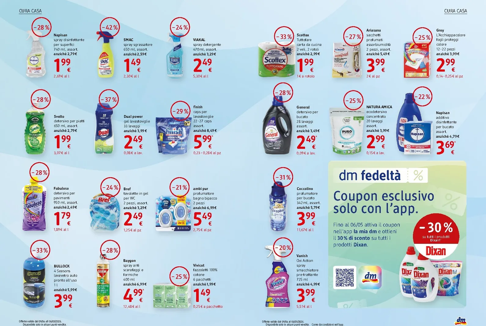 Le nuove offerte DM si estendono anche ai prodotti essenziali per la casa. Il volantino include sconti su articoli di uso quotidiano, come il deodorante Neutro Roberts, proposto con un eccezionale -38%. Per il bucato, l’ammorbidente concentrato Vernel è scontato del 34%. Per la pulizia, lo Swiffer Duster è ribassato del 29%, mentre la carta igienica Scottonelle è in promozione al -32%, assicurando un risparmio concreto per la famiglia.