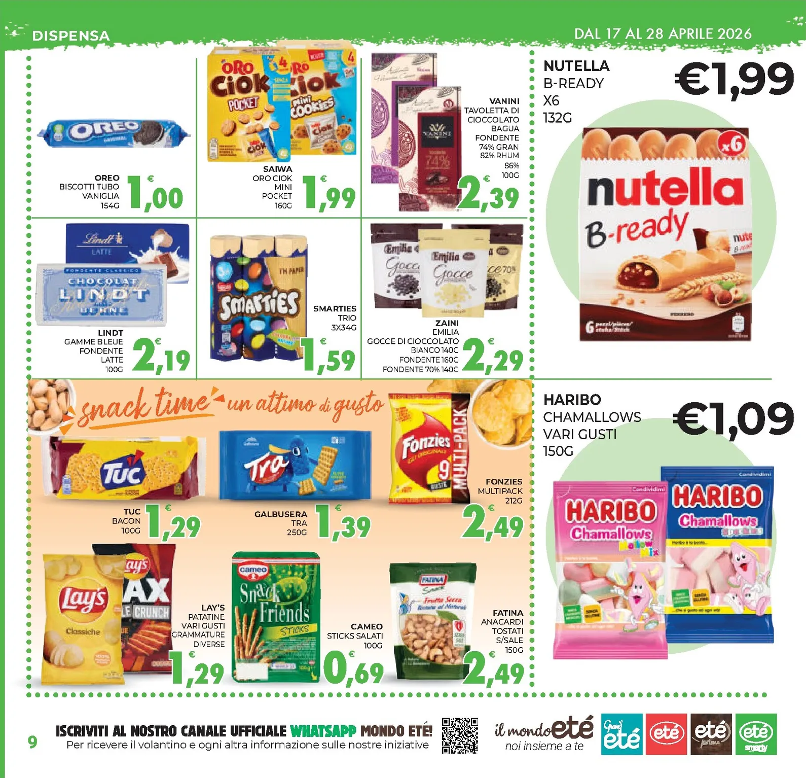 Le nuovo offerte continuano nel reparto per la cura della persona e della casa. Trovate il dentifricio Colgate a 1,00€ e il detergente intimo Chilly a 2,79€. Per la pulizia, lo sgrassatore Cif è a 1,89€. Non mancano offerte per gli amici animali, come il cibo per gatti Gourmet Gold a 2,59€. Per scoprire ogni nuovo dettaglio, consultate il nostro Ete Volantino dal 17/04/2026 e l’ultimo Ete Volantino per rimanere aggiornati.