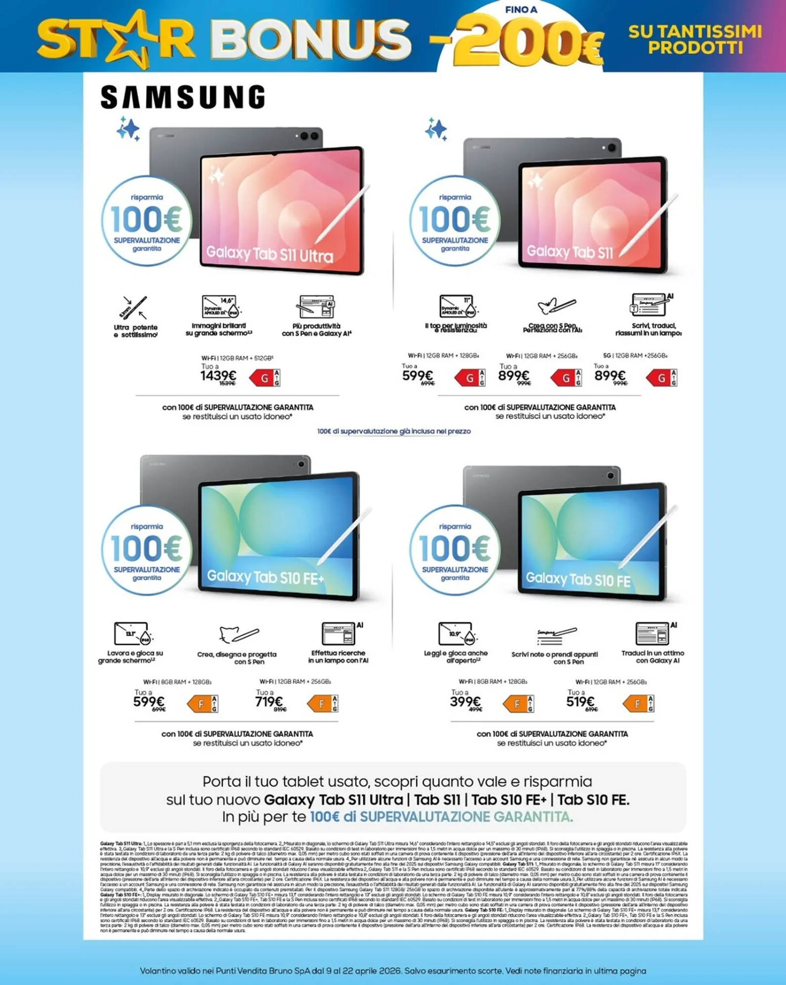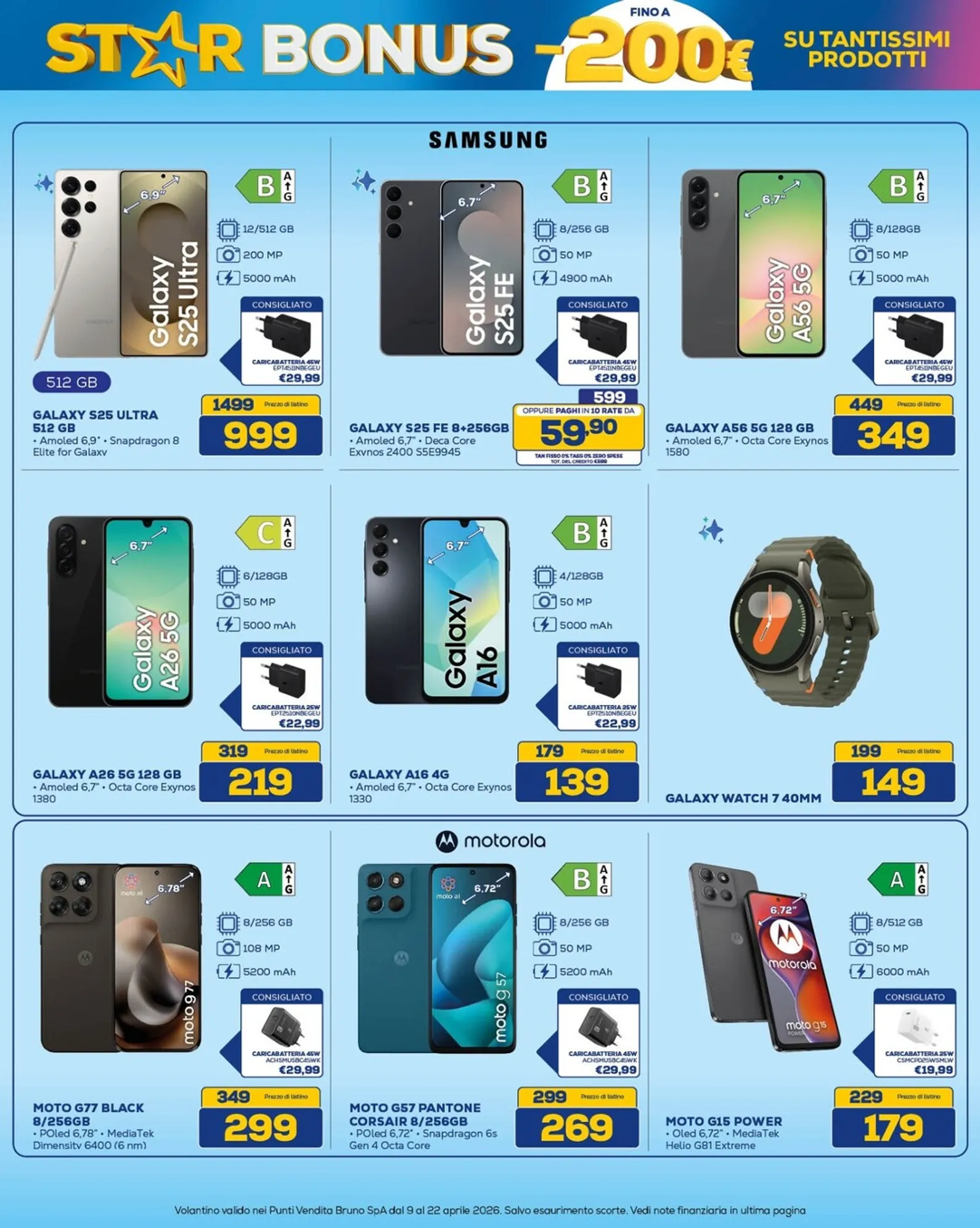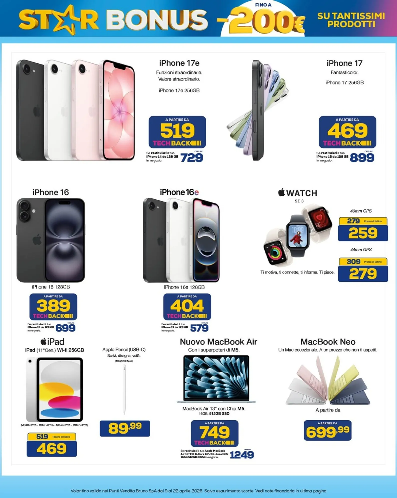 Euronics Bruno lancia il suo nuovo Star Bonus, valido dal 9 al 22 aprile 2026 per gli iscritti al club. La promozione offre sconti fino a 200€ su tantissimi prodotti, un’occasione imperdibile per rinnovare la tecnologia. Le offerte spaziano dagli smartphone ai grandi elettrodomestici. Per orientarsi tra le migliori occasioni, questo Euronics Bruno Volantino dal 09/04/2026 si rivela la guida perfetta per un acquisto intelligente e conveniente.