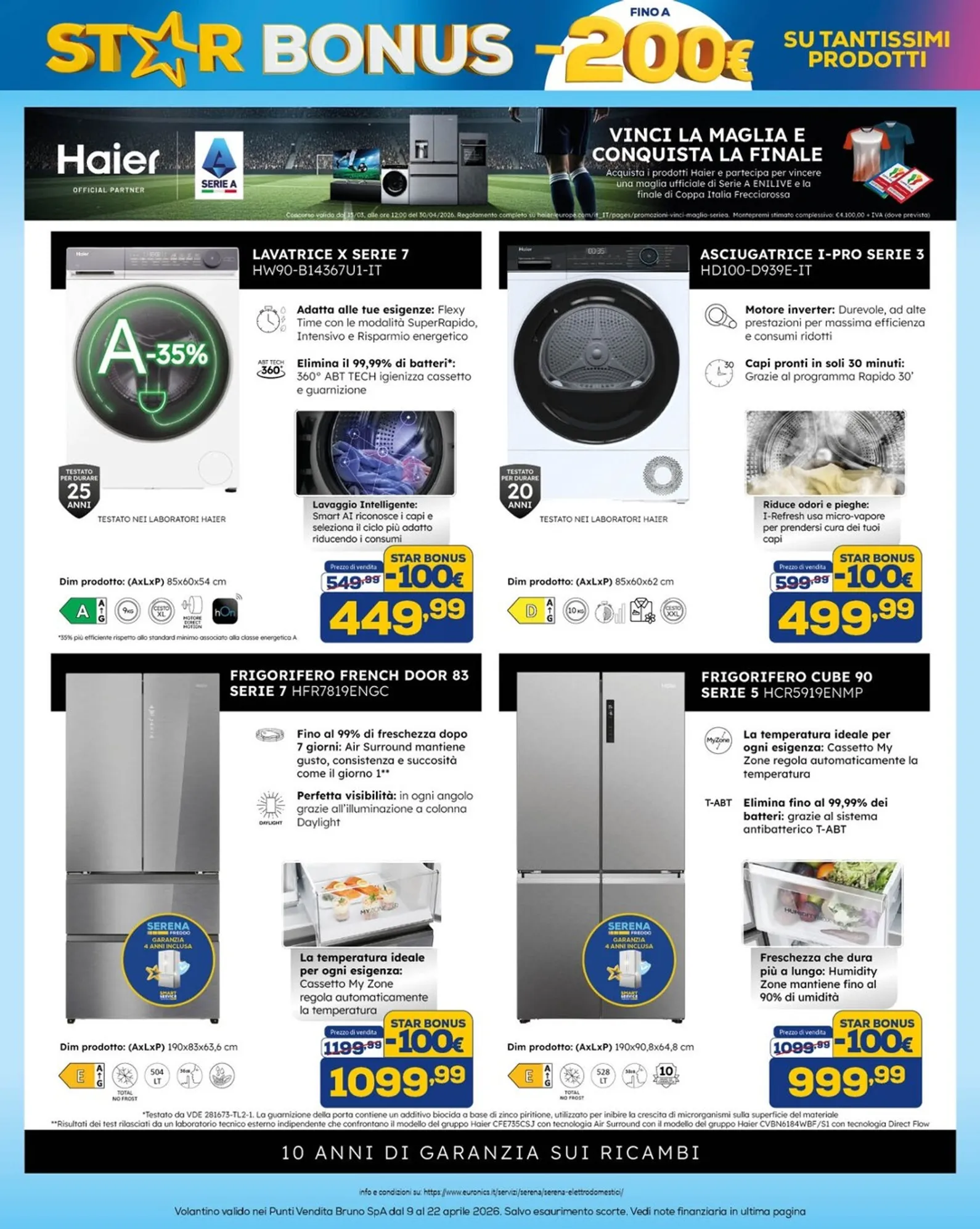 L’iniziativa Tasso Zero in 10 mesi rende ogni nuovo acquisto più accessibile. Lo Star Bonus è la chiave per ottenere il massimo della tecnologia a prezzi vantaggiosi. Queste offerte sono pensate per soddisfare ogni esigenza. Per scoprire i dettagli e rimanere aggiornati, il nostro Euronics Bruno Volantino dal 09/04/2026 è lo strumento ideale. Visita subito il Euronics Bruno Volantino per non perdere le nuovo offerte.