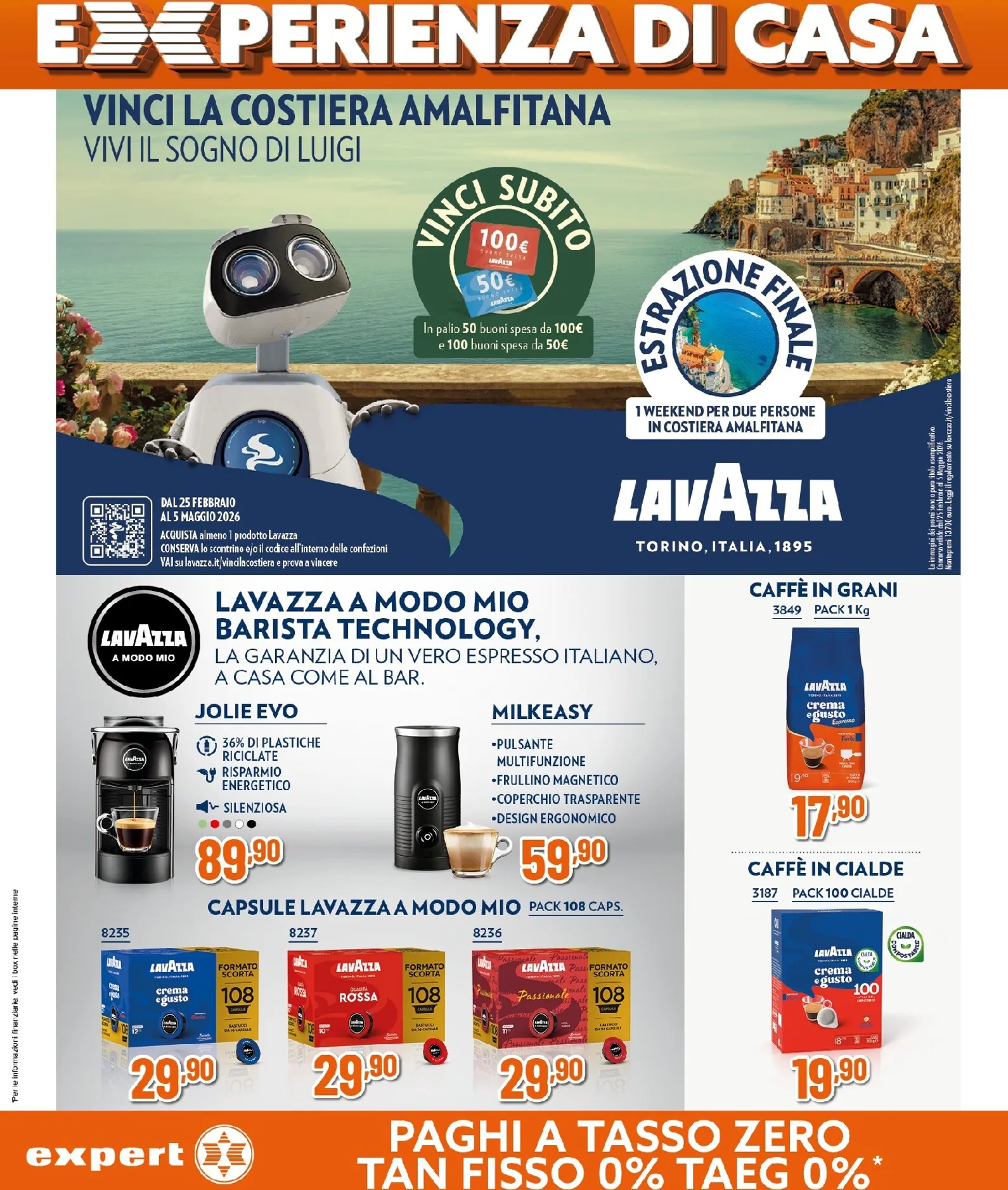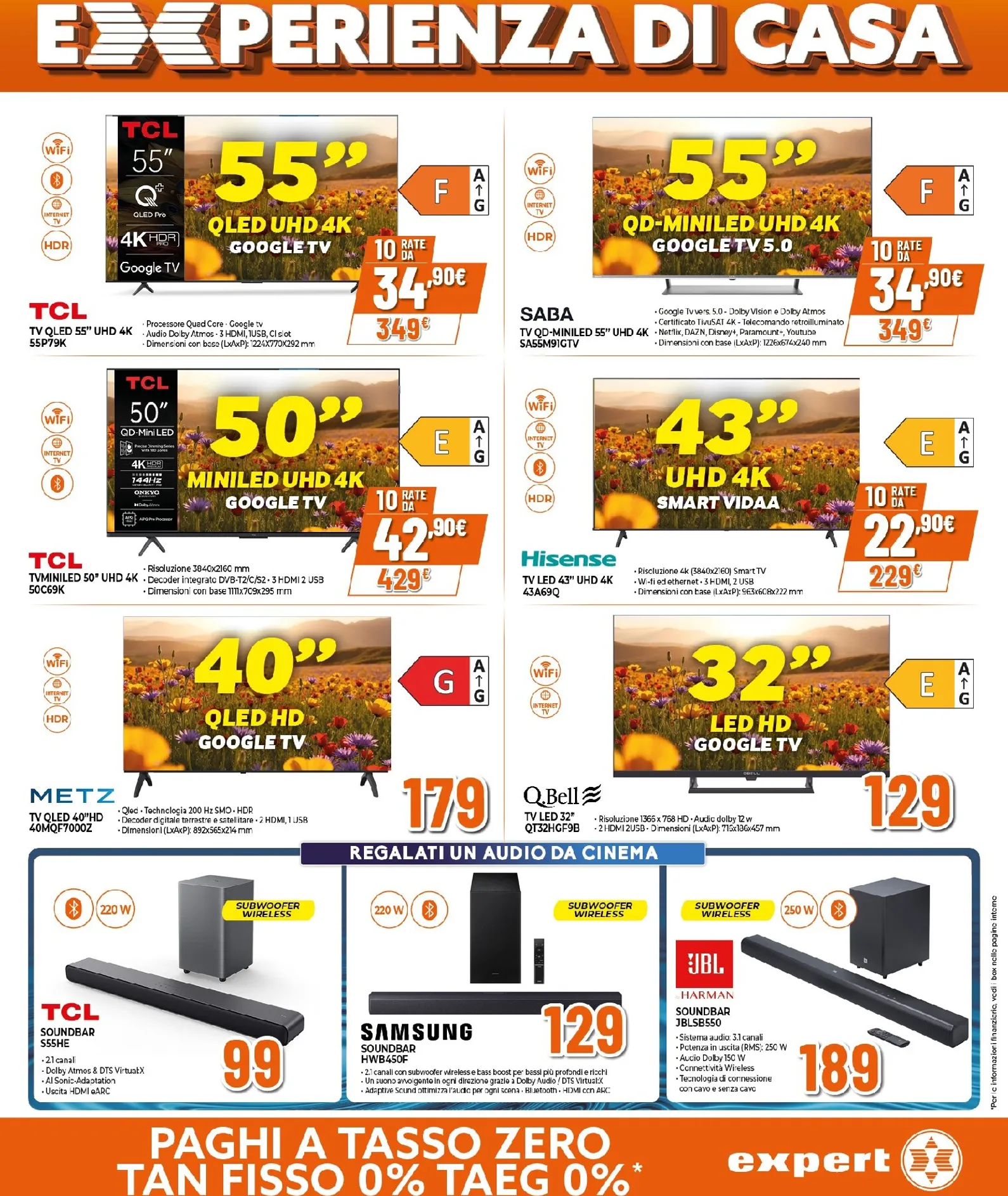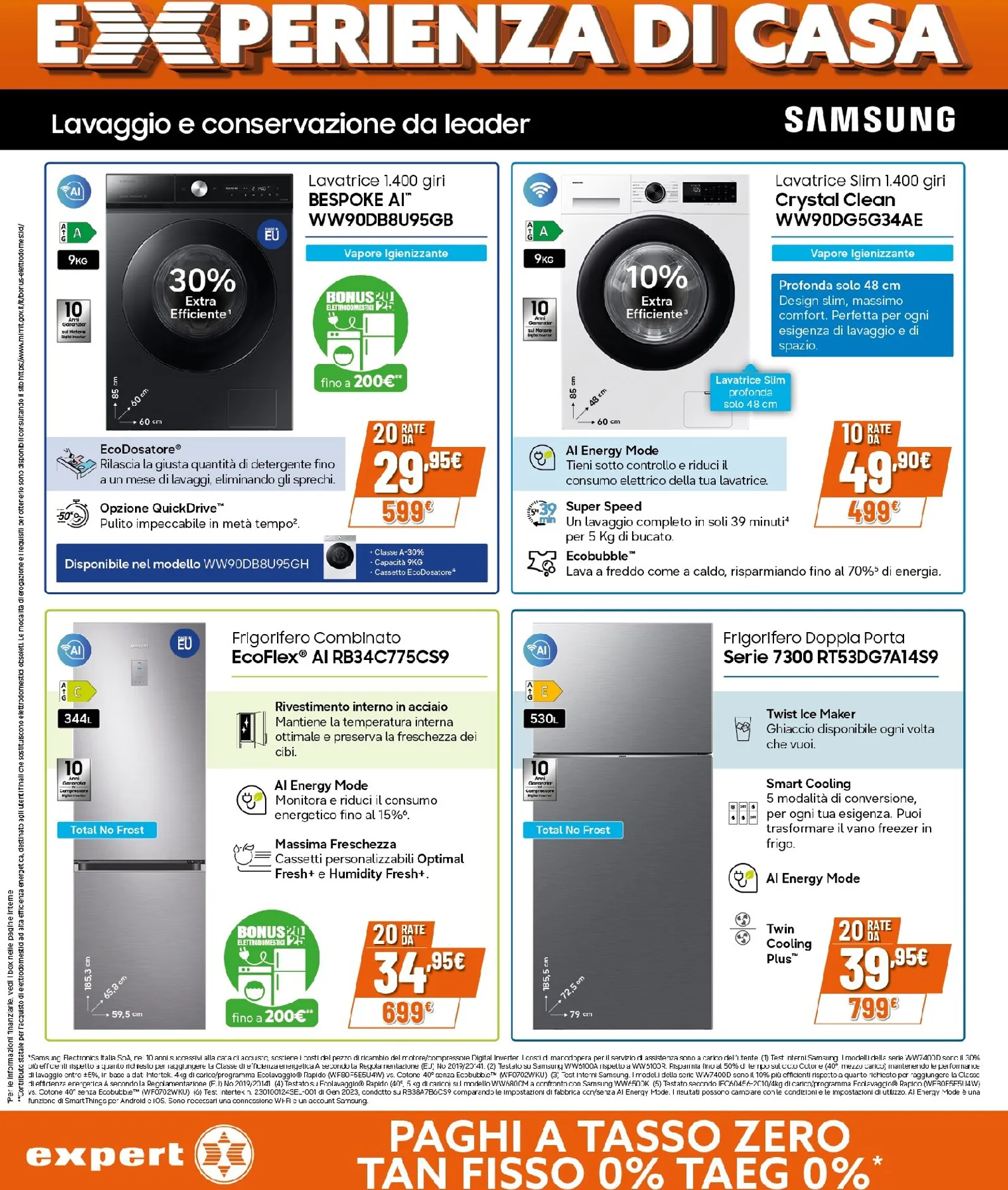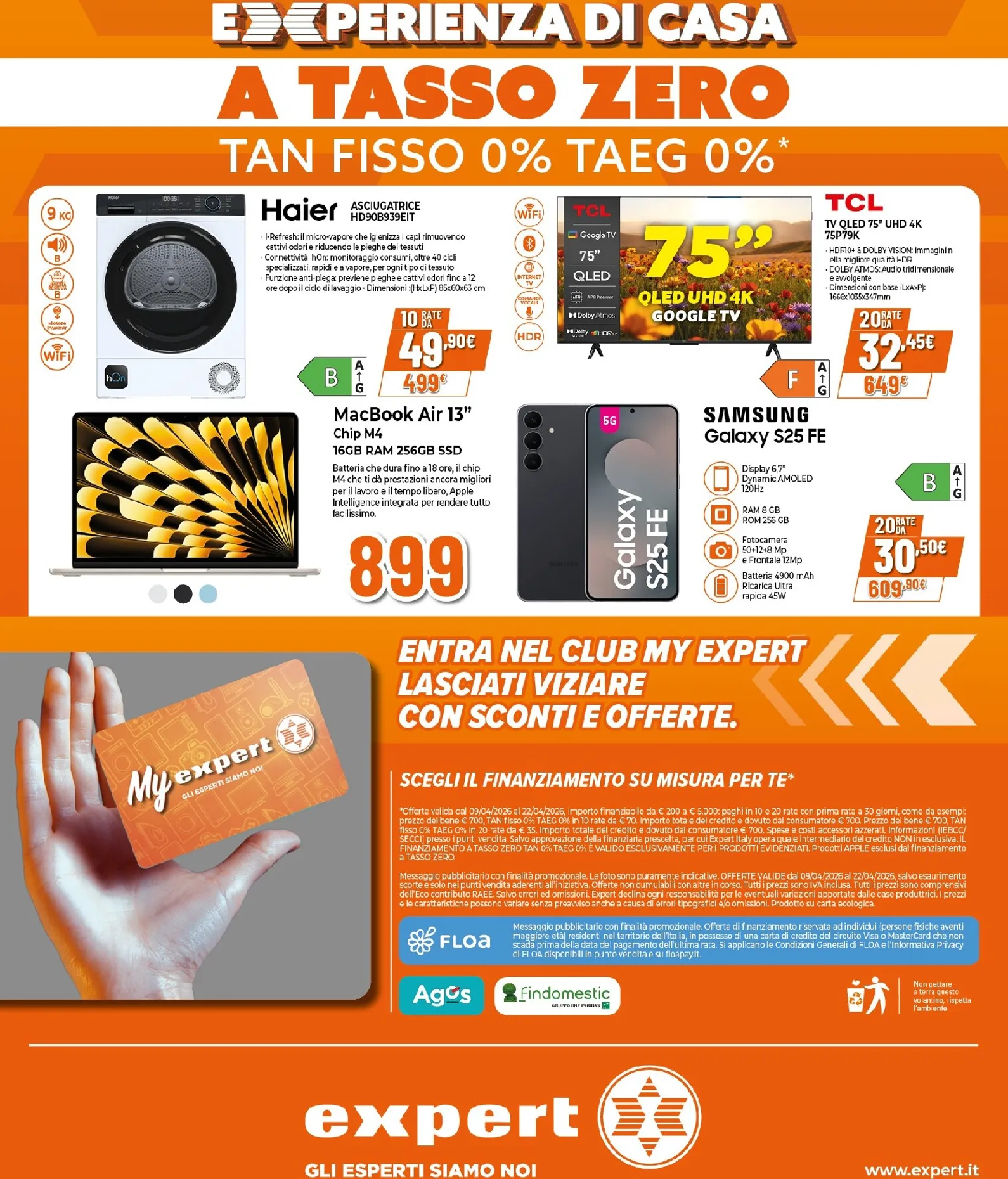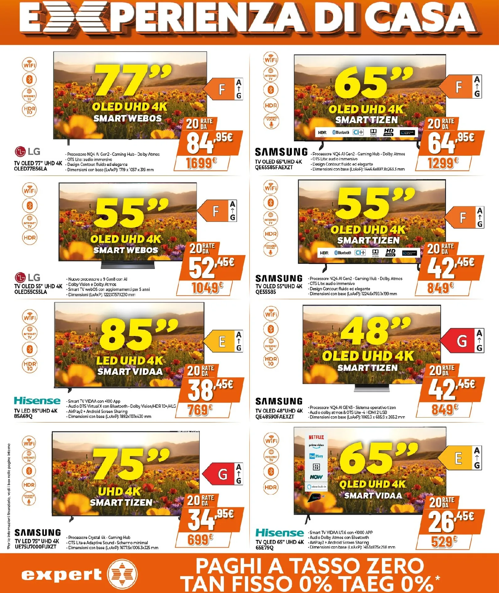 Il nuovo volantino Expert, valido dal 9 al 22 aprile, lancia la promozione “Esperienza di Casa” con un incredibile Tasso Zero (TAN 0%, TAEG 0%). È il momento ideale per rinnovare la tecnologia domestica con offerte imperdibili. Tra le proposte di punta, la lavatrice Samsung da 10 kg e lo Smart TV LG UHD 4K da 65 pollici. Anche la produttività è in primo piano con l’HP Notebook. Queste Expert Di Lella Volantino dal 09/04/2026 sono state pensate per migliorare la vita di tutti i giorni.