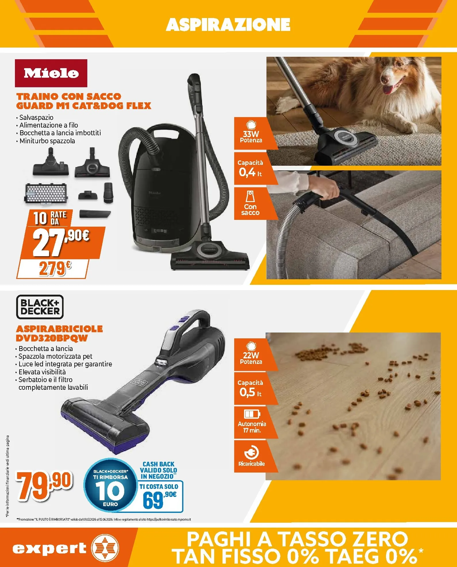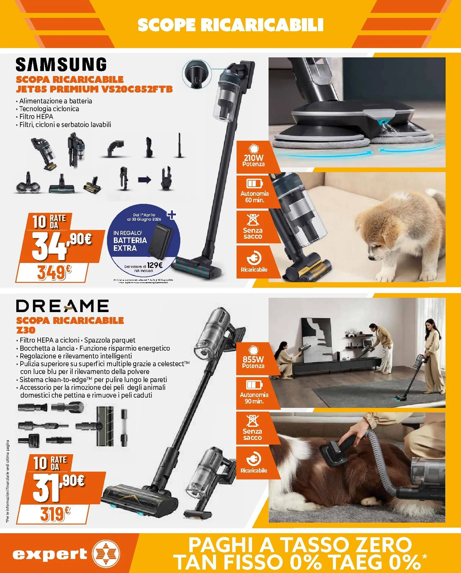 Dal 9 al 22 aprile, Expert presenta la nuova campagna “SelectionExpert”, dedicata alle migliori tecnologie per la pulizia. Il volantino è ricco di offerte imperdibili, con il grande vantaggio del finanziamento a tasso zero (TAN 0%, TAEG 0%) su tantissimi prodotti. È l’occasione ideale per chi cerca soluzioni innovative per semplificare la cura della casa. All’interno troverete Expert Volantino dal 09/04/2026 per scegliere l’elettrodomestico più adatto, unendo efficienza e convenienza.
