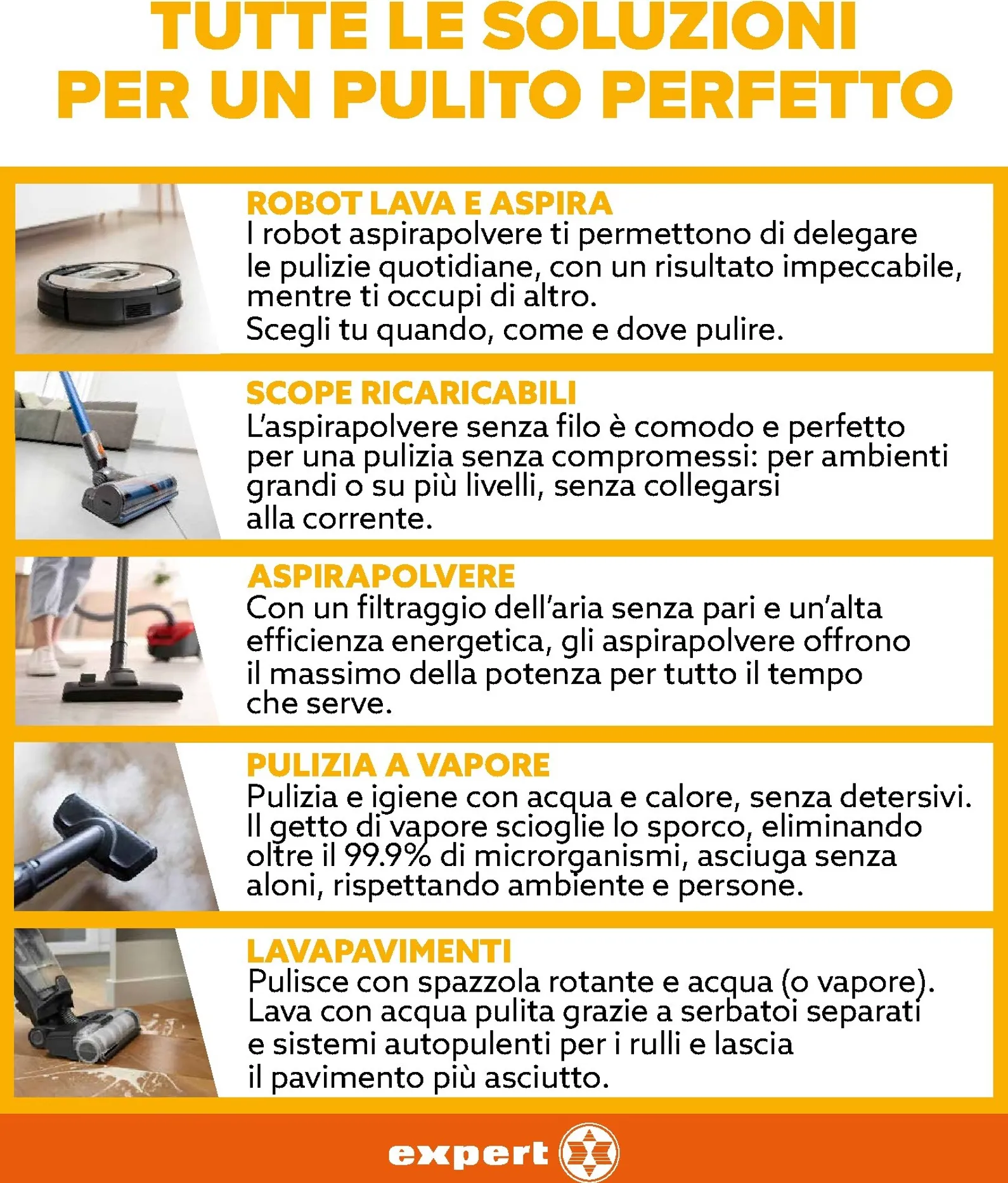A completare la proposta ci sono accessori indispensabili come i sacchetti Miele, i detergenti iRobot e le soluzioni ecologiche Meliconi. Expert offre un ecosistema completo per la pulizia. Per scoprire ogni dettaglio, consultate il nuovo Expert Volantino ufficiale. Non perdete l’opportunità di trovare Expert Volantino dal 09/04/2026 e di rinnovare la vostra casa con la migliore tecnologia disponibile sul mercato.