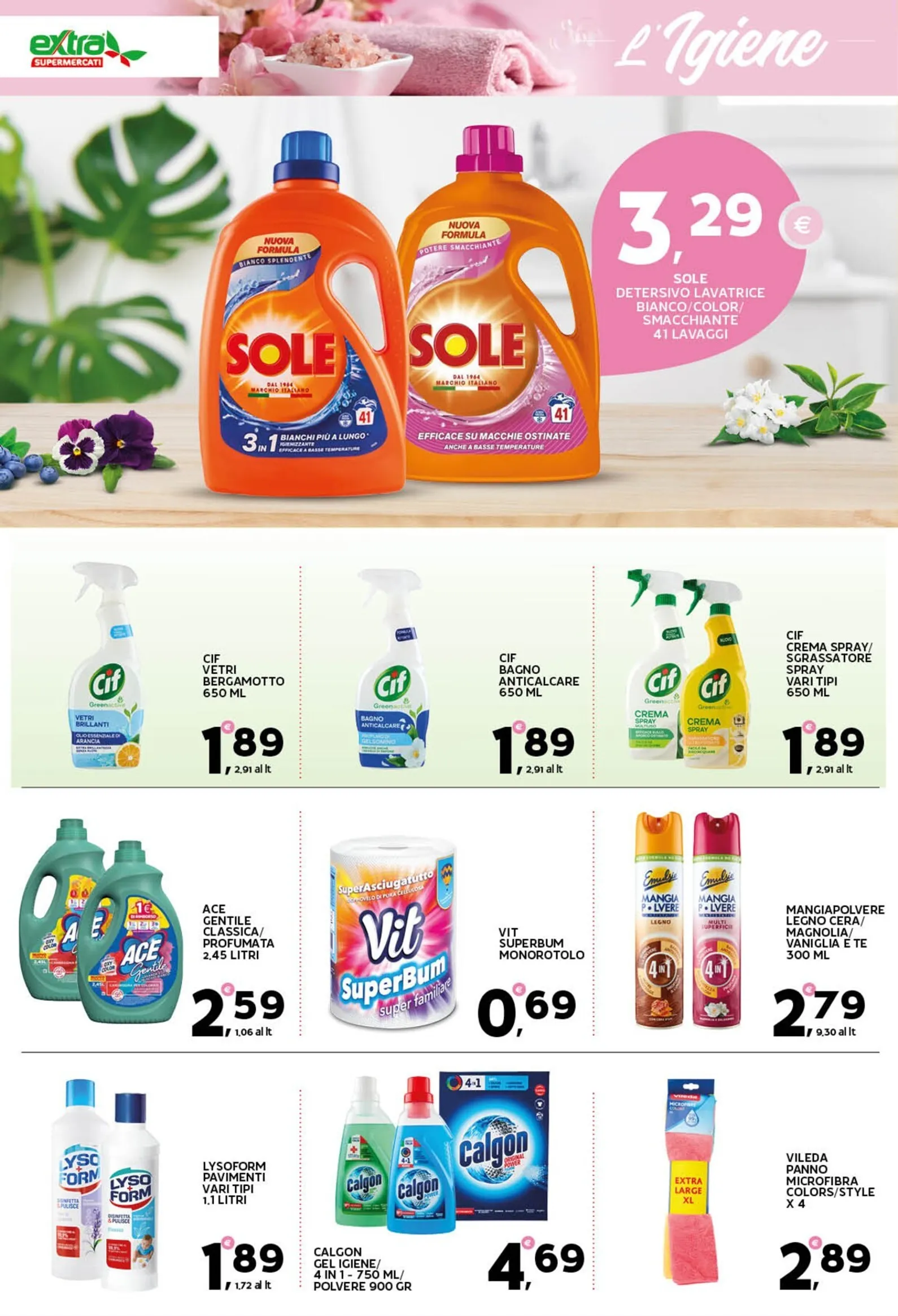 Concludete la spesa con i gelati Cornetto Algida a 3,89€ o i prodotti per la casa come il detersivo Sole a 1,00€. Per non perdere nessuno sconto e organizzare gli acquisti, consultate il catalogo. Troverete ogni nuovo dettaglio nel Extra Supermercati Volantino dal 17/04/2026 che abbiamo preparato. Visitate la pagina del Extra Supermercati Volantino per tutti i particolari.