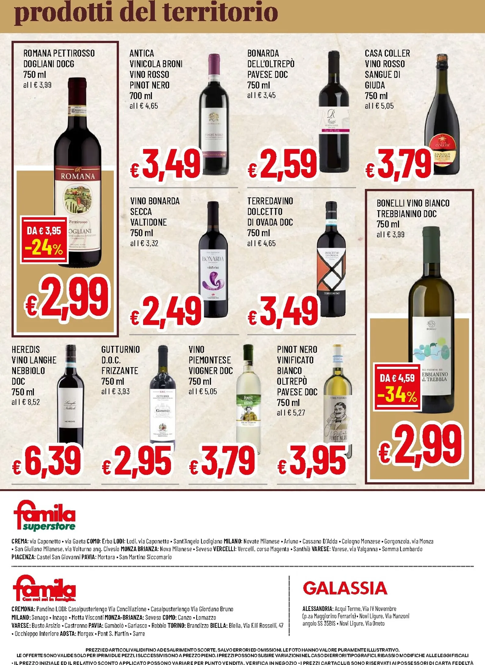 La cantina si arricchisce con vini regionali che esaltano ogni piatto. Troviamo etichette prestigiose a prezzi scontati, come il Dogliani DOCG Romana a 2,99€ e il Bonarda dell’Oltrepò Pavese a 2,59€. L’assortimento spazia dai rossi corposi ai bianchi freschi, come il Trebbianino DOC Bonelli. Per scoprire tutte le offerte della settimana e pianificare la spesa, potete consultare il nuovo Famila Volantino dal 07/04/2026 che include tutte le proposte di questa speciale settimana. Visitate il Famila Volantino per non perdere nessuna opportunità di risparmio.