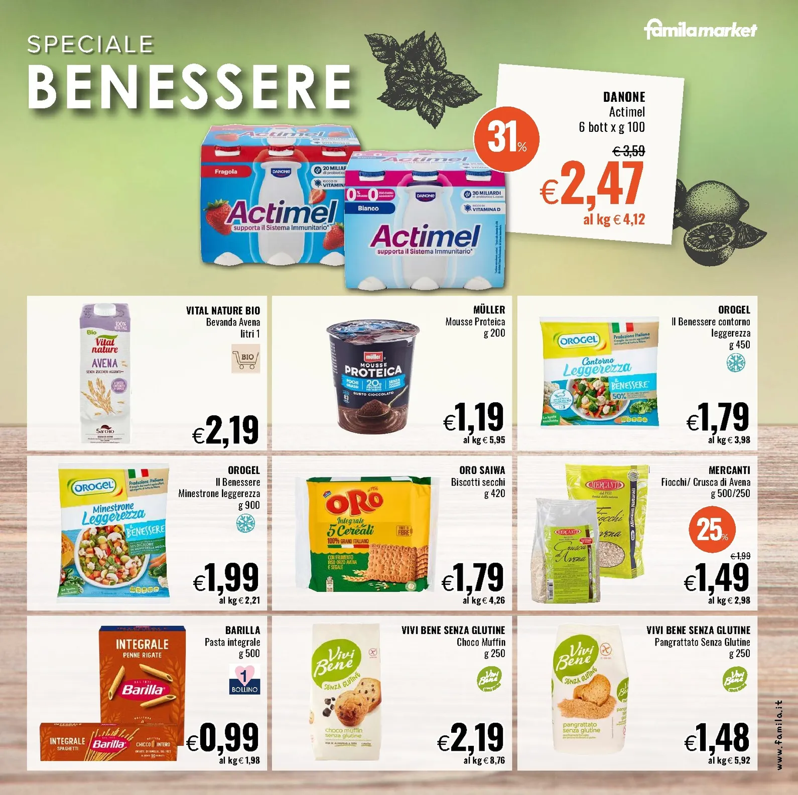 Il nuovo volantino Famila, valido dal 9 al 22 aprile, è all’insegna del risparmio e della qualità. In copertina troviamo lo “Speciale Cura Casa” e catalogo e offerte alimentari imperdibili. Spicca l’offerta su Danone Actimel con il 31% di sconto. Questo catalogo è stato pensato per la massima convenienza, e il Famila Volantino dal 09/04/2026 aiuta a scoprire le migliori occasioni. Da non perdere anche la mozzarella di bufala Saper di Sapori, scontata del 43%.