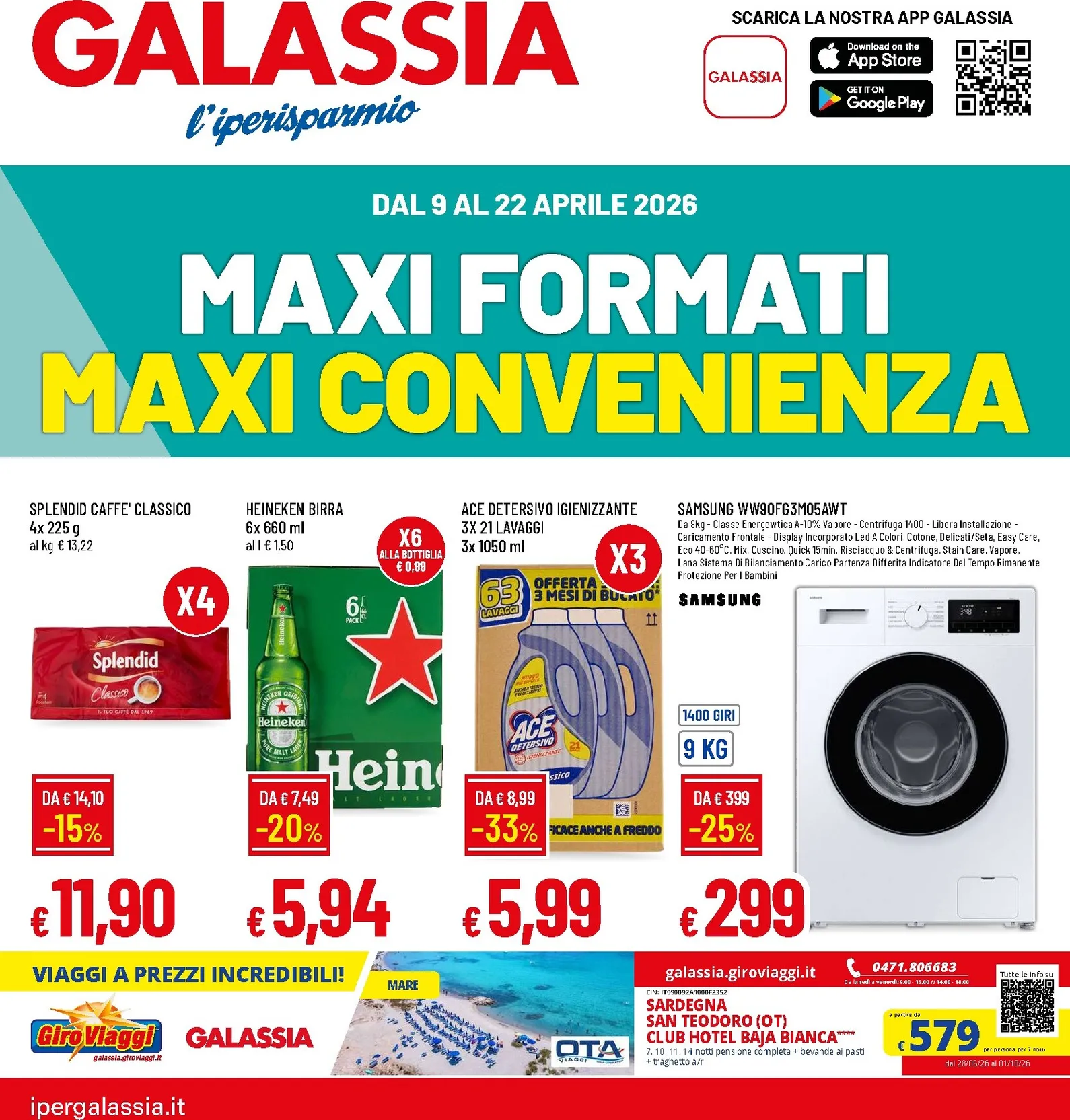 Dal 9 al 22 Aprile, Galassia lancia la campagna “Maxi Formati, Maxi Convenienza”, un’occasione imperdibile per fare scorta risparmiando. Questo catalogo è pensato per le famiglie, con offerte su confezioni speciali. Tra le catalogo e offerte di punta troviamo il Caffè Splendido Classico in formato da quattro pacchi e la birra Heineken da sei bottiglie a un prezzo imbattibile. Scoprire Galassia Volantino dal 09/04/2026 è il modo perfetto per ottimizzare il budget familiare e fare acquisti intelligenti.