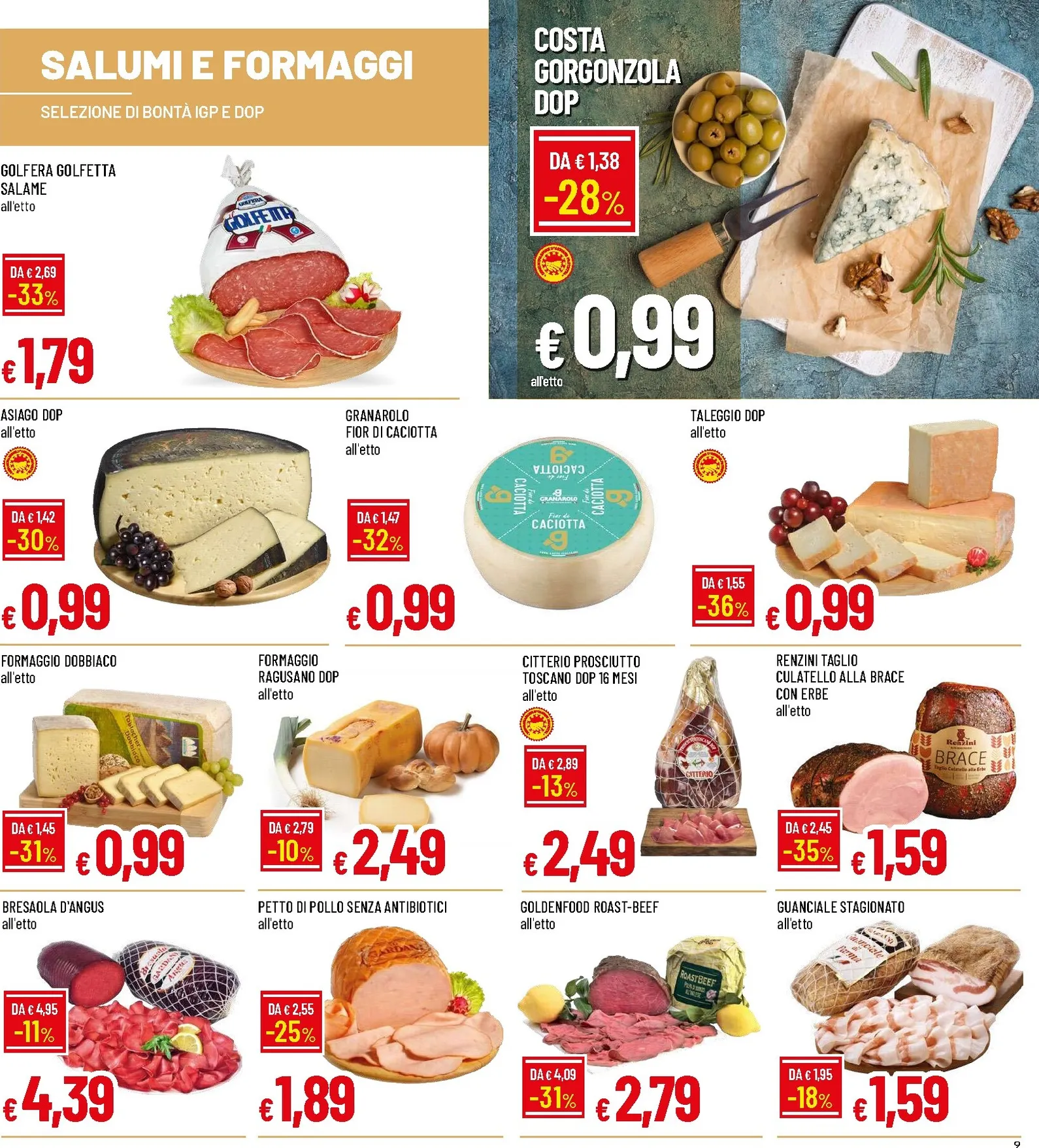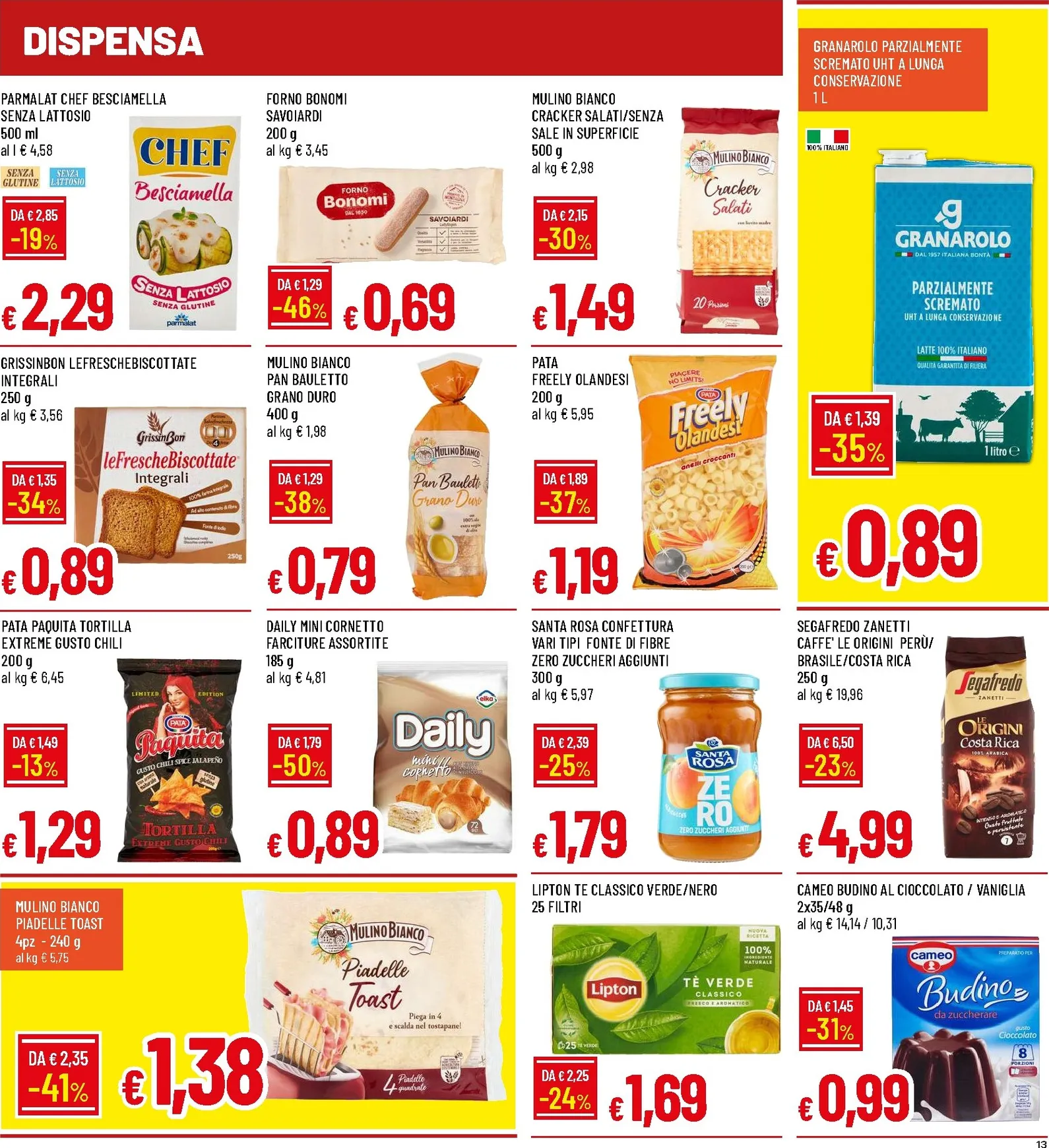 Le offerte proseguono nel reparto freschi. Per la colazione, il Muller Mix Multipack è scontato del 27%. Per i pasti, la Mozzarella Tris Santa Lucia di Galbani è disponibile con un taglio prezzo del 45%. Per i dessert, il Mascarpone Granarolo è proposto a metà prezzo con uno sconto del 50%. Non mancano catalogo e offerte su articoli essenziali come il Parmigiano Reggiano Granterre e il Prosciutto Cotto di Alta Qualità, combinando gusto e convenienza in ogni offerta.