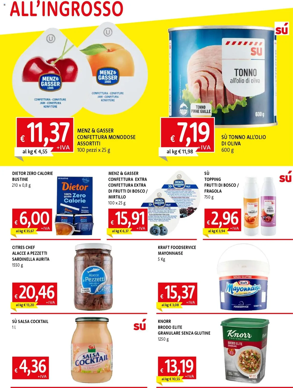 Tra le proposte più interessanti, spicca l'immancabile APEROL da 100 cl a soli € 10,17, perfetto per i tuoi aperitivi. Non mancano le eccellenze casearie come il BAYERNLAND EDAM TEDESCO FORMAGGIO DA TAGLIO da 1.3 kg circa a € 6,73 e il pregiato BIRAGHI GORGONZOLA DOP SELEZIONE GASTRONOMIA al kg a € 8,18. Per la cucina, trovi la SÙ POLPA IN PEZZI DI POMODORO da 2,5 kg a € 3,07, un ingrediente base irrinunciabile. E per chi cerca soluzioni pratiche e gustose, le SÙ LASAGNE ALLA BOLOGNESE SURGELATE da 2,5 kg a € 11,64 rappresentano un'ottima scelta, così come i MONGELO 15 CROISSANT CREMA per la colazione o la SÙ TORTA DELLA NONNA CONGELATA PRETAGLIATA per un dessert sempre pronto. Anche il POLPO INTERO MAROCCO T6 SURGELATO a € 15,28 al kg è un'offerta da non perdere per arricchire il menù.