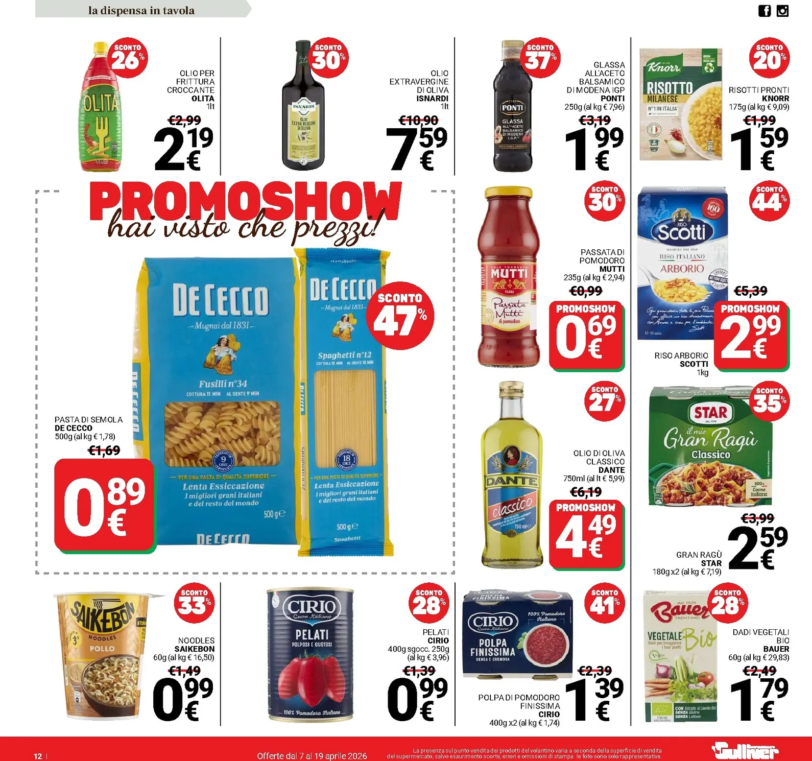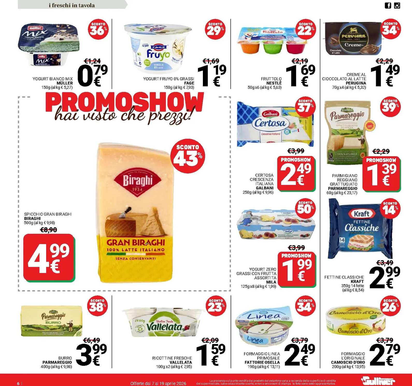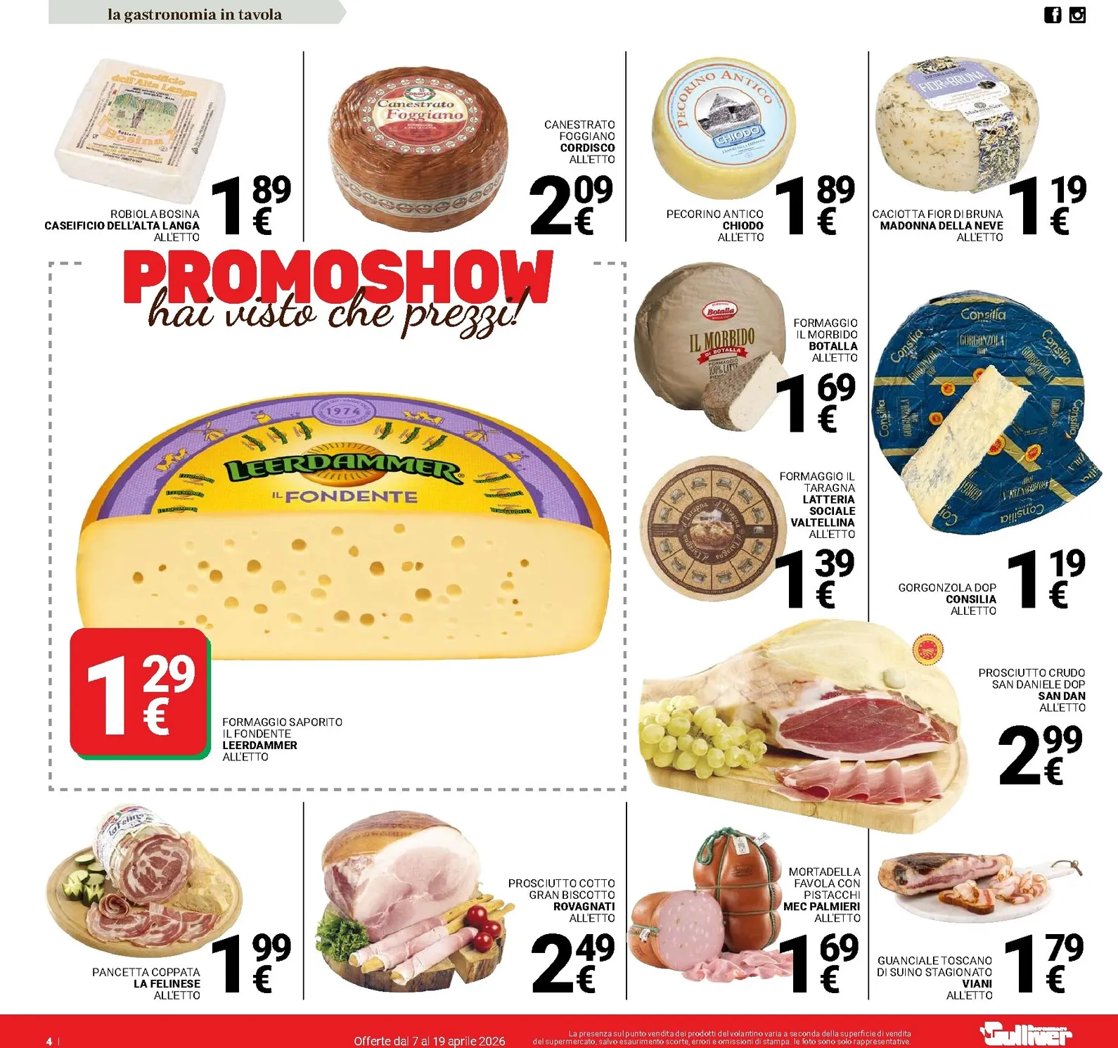 Il nuovo volantino Gulliver presenta il “Promoshow”, una parata di offerte valide dal 7 al 19 aprile. La convenienza è protagonista con prezzi mai visti. In primo piano troviamo l’Asiago DOP Fresco Riserva a soli 0,99€ all’etto, un formaggio dal sapore unico. Per la dispensa, il Tonno all’Olio di Oliva Nostromo è in promozione a 2,19€. Esplorare queste nuove nuovo offerte è il modo migliore per una spesa intelligente, e approfittare di Gulliver Volantino dal 07/04/2026 è un’occasione da cogliere.