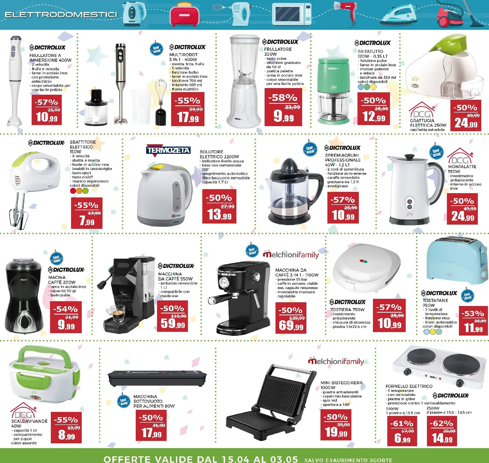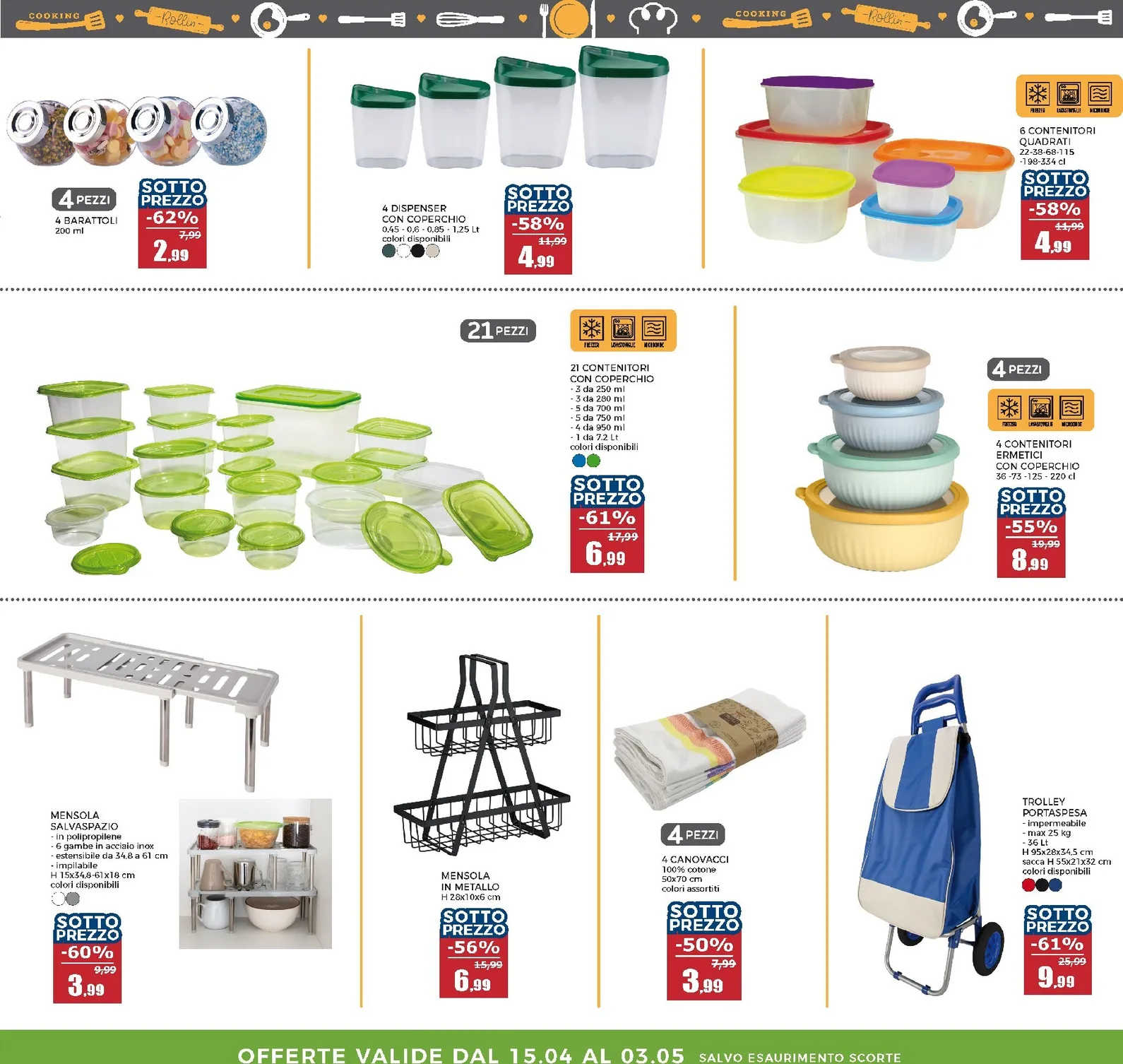 Non mancano accessori indispensabili a prezzi speciali. Il set di 3 coltelli in acciaio è in offerta a 4,99€, la bilancia da cucina digitale a 9,99€ e il dispenser per bevande in vetro a 13,99€. Queste nuovo offerte sono illustrate nel Happy Casa Volantino dal 15/04/2026 attuale. Per una panoramica completa delle nuove occasioni, visita la sezione Happy Casa Volantino e scopri come rendere unica la tua casa con un piccolo budget.