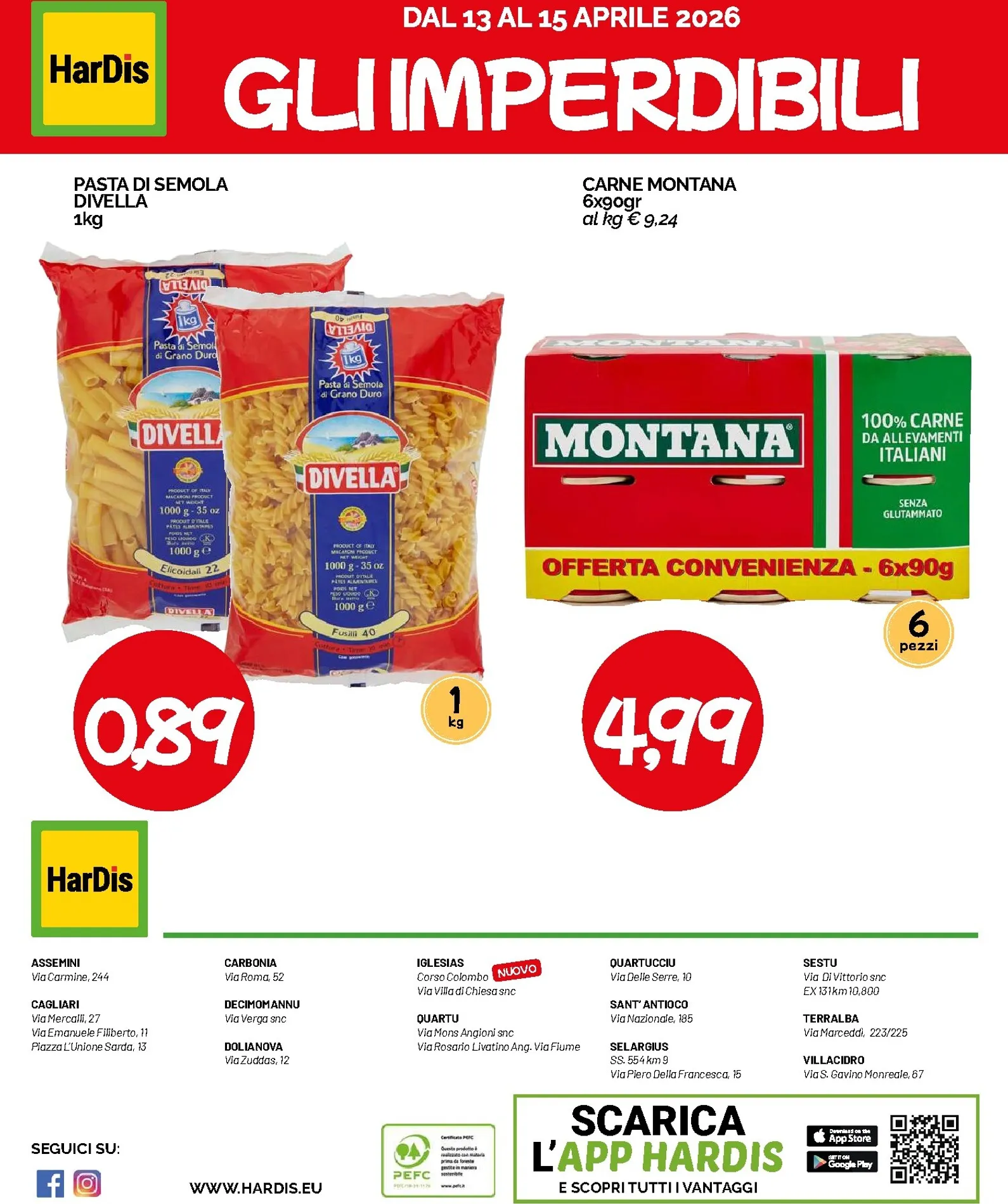 Le sorprese continuano con gli “Imperdibili”, come la Pasta Divella da 1 kg a soli 0,89€ e la Carne Montana (6x90g) a 4,99€. Per uno spuntino leggero, ci sono i Biscotti Zeropiù Balocco a 1,49€. È fondamentale esaminare ogni pagina per non perdere nessuna opportunità. Il nuovo Hardis Volantino dal 07/04/2026 è sempre aggiornato con le migliori catalogo e offerte. Per una panoramica completa, consulta l’ultimo Hardis Volantino.