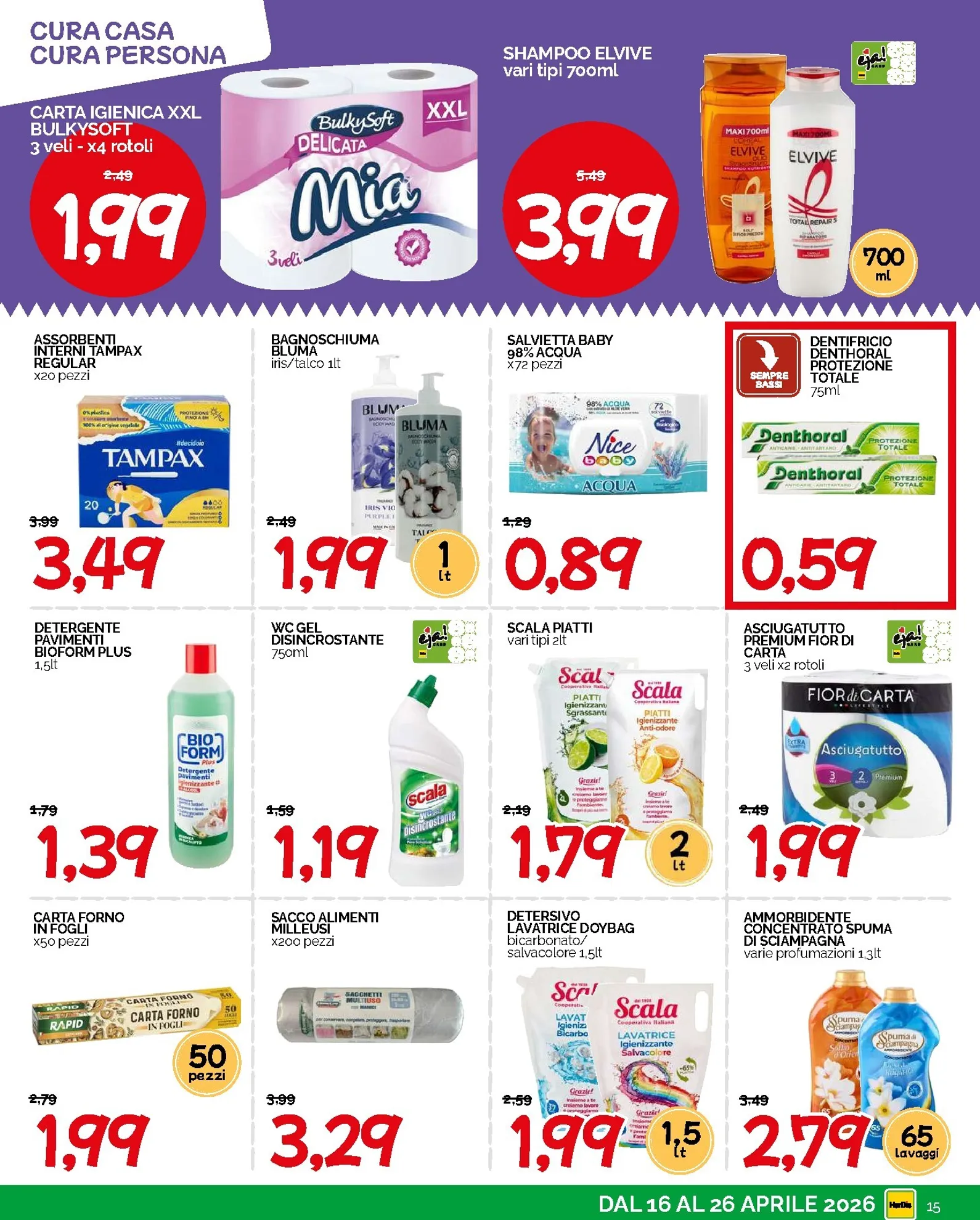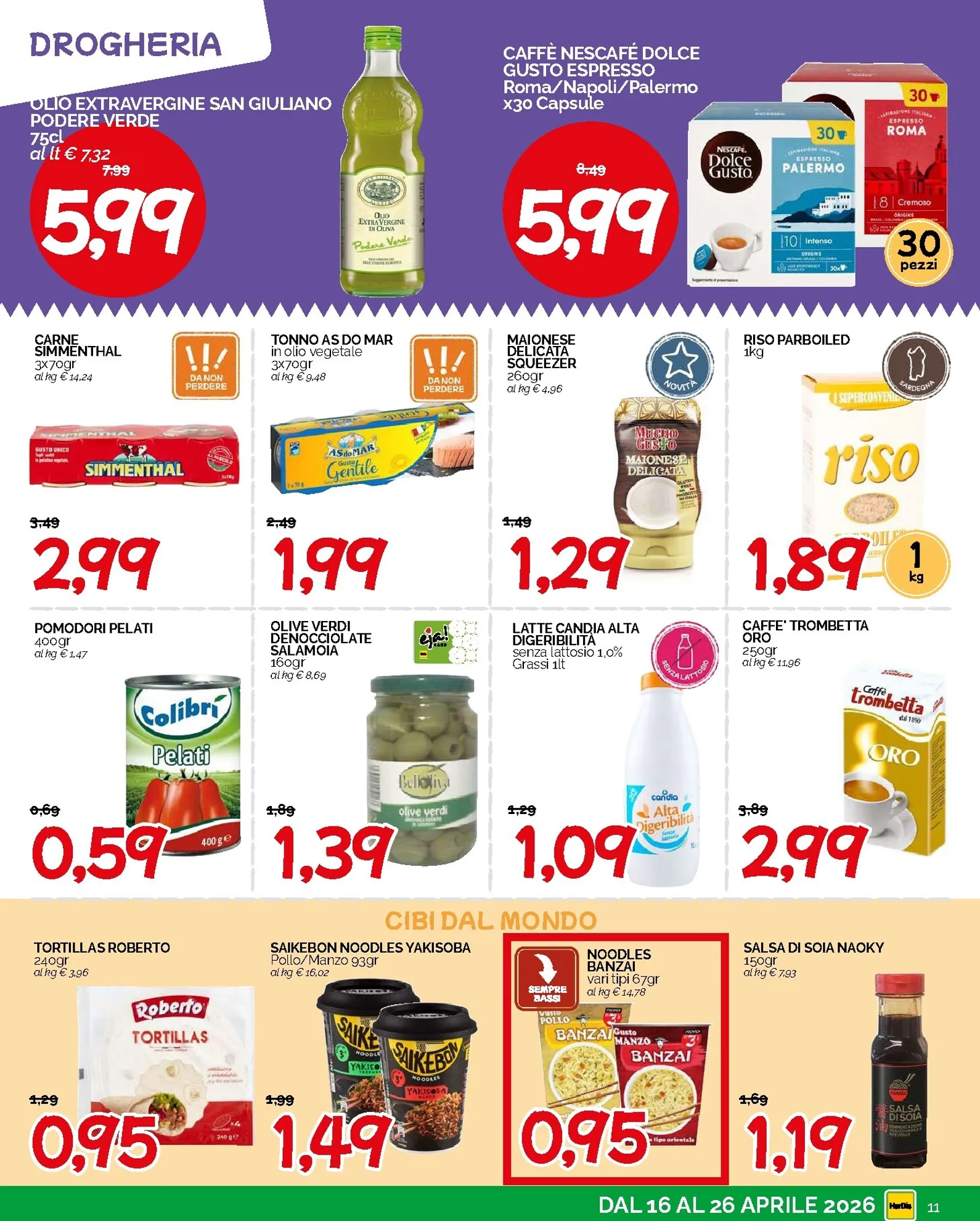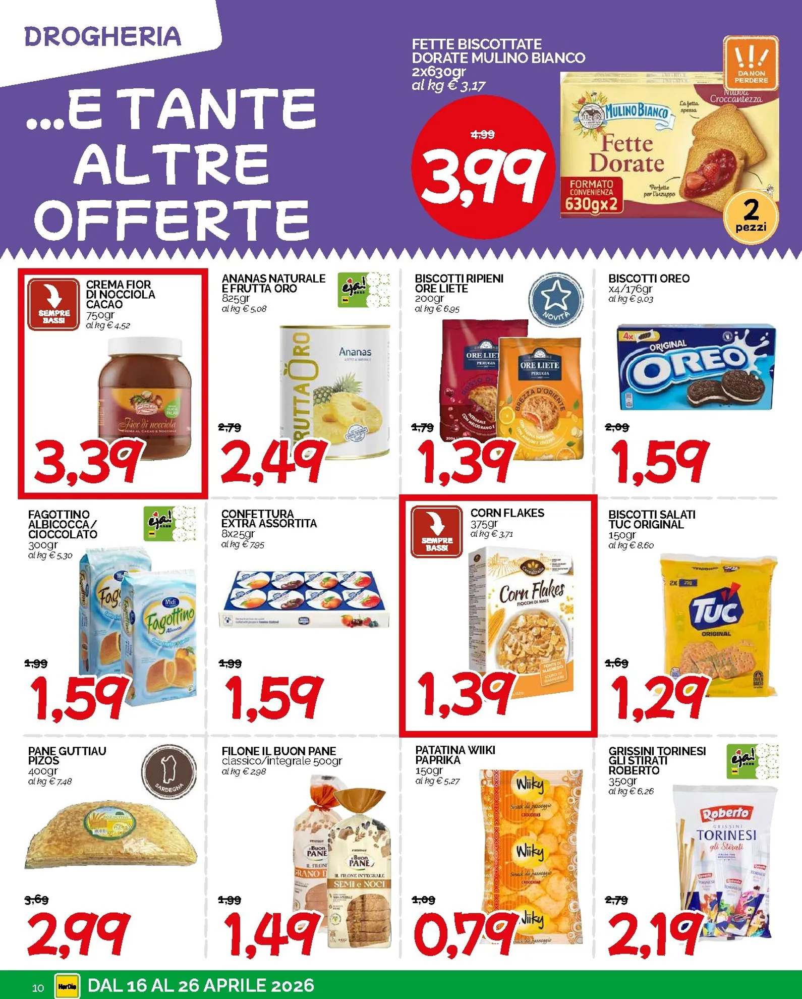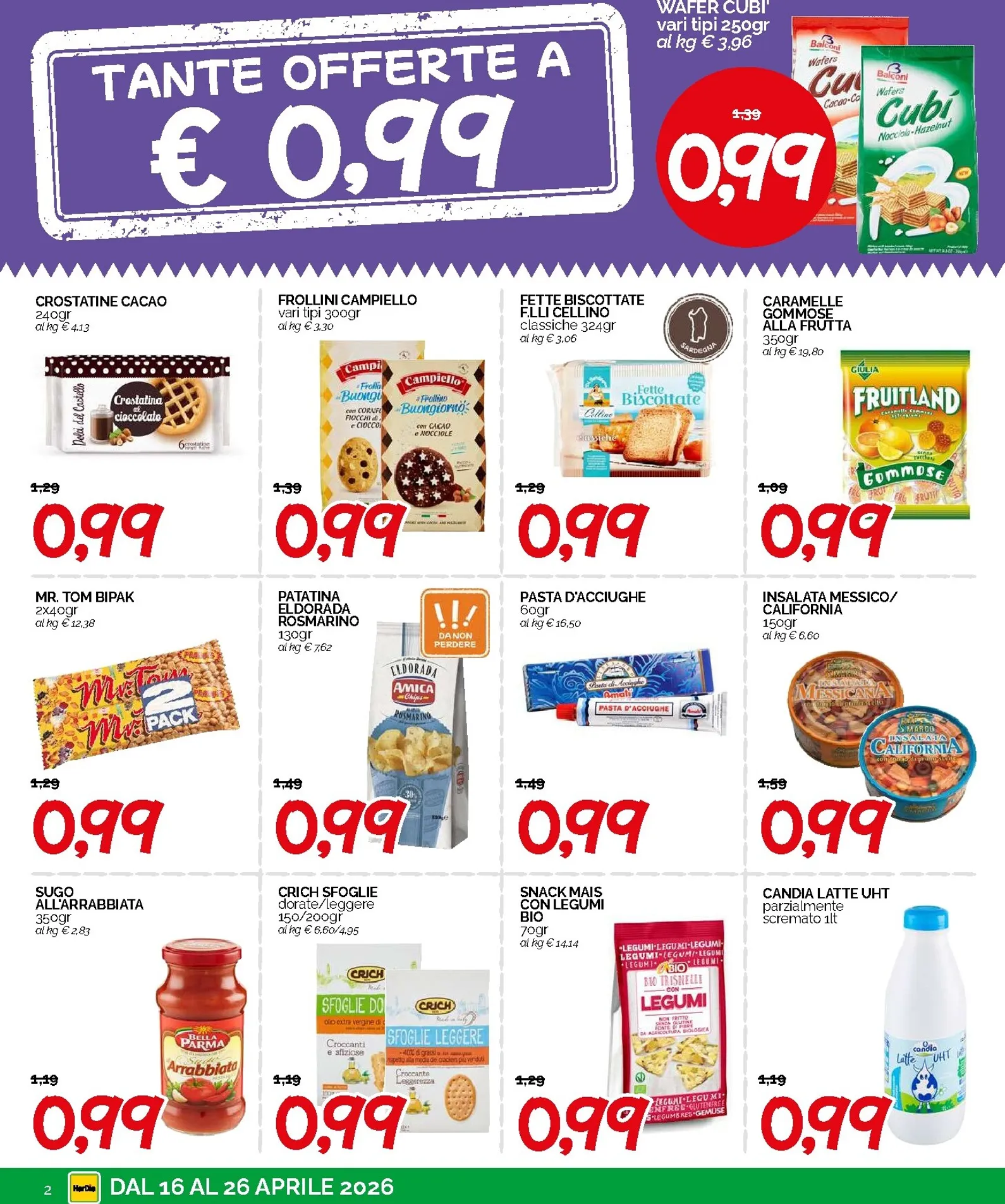La convenienza prosegue anche nel reparto colazione e dispensa. A soli 0,99€ potrete acquistare le crostatine al cacao, i frollini Campiello in varie versioni, le fette biscottate F.lli Cellino e le caramelle gommose Fruitland da 350gr. Sono disponibili anche i saporiti cracker Crich Sfogliè Leggere e il sugo all’arrabbiata Sud di Parma. Queste nuove opportunità di risparmio consentono di gestire la spesa quotidiana con intelligenza, garantendo sempre qualità e gusto sulla vostra tavola. Hardis ha pensato a tutto per offrirvi una varietà eccezionale, mantenendo un prezzo piccolo e accessibile per tutti i clienti.