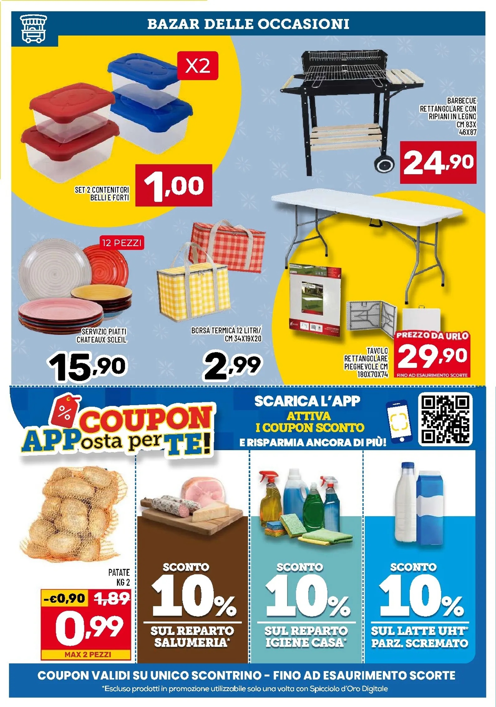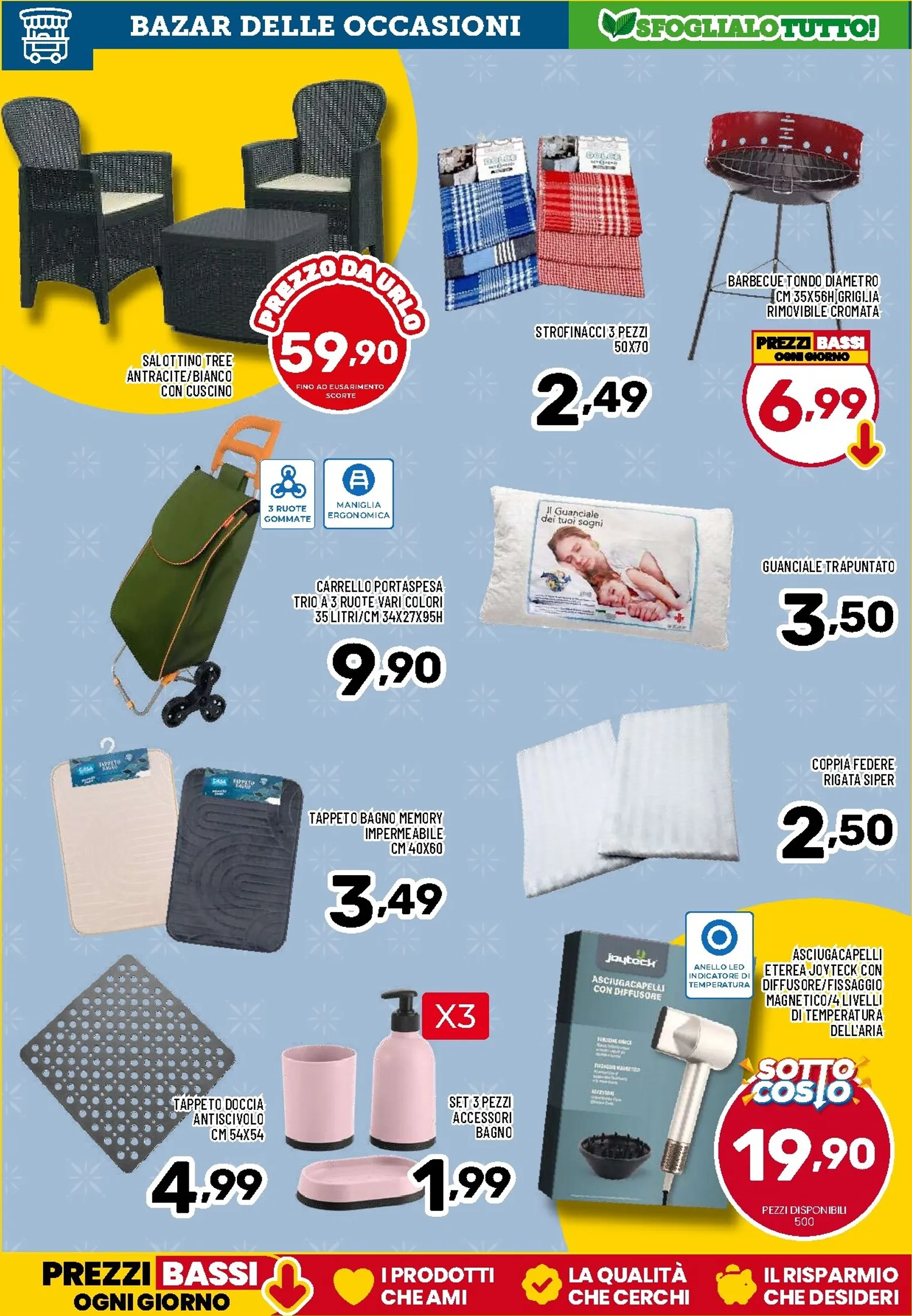 Il bazar riserva grandi sorprese con il nuovo catalogo, come il salottino da esterno a 59,90€, perfetto per il giardino, e l’asciugacapelli con diffusore a 19,90€. Non mancano articoli per la casa come il set da bagno a 1,99€. Per scoprire tutte le nuovo offerte, sfoglia il completo Il Centesimo Volantino e non perdere l’occasione di usare Il Centesimo Volantino dal 07/04/2026 per rinnovare la tua casa e la dispensa.