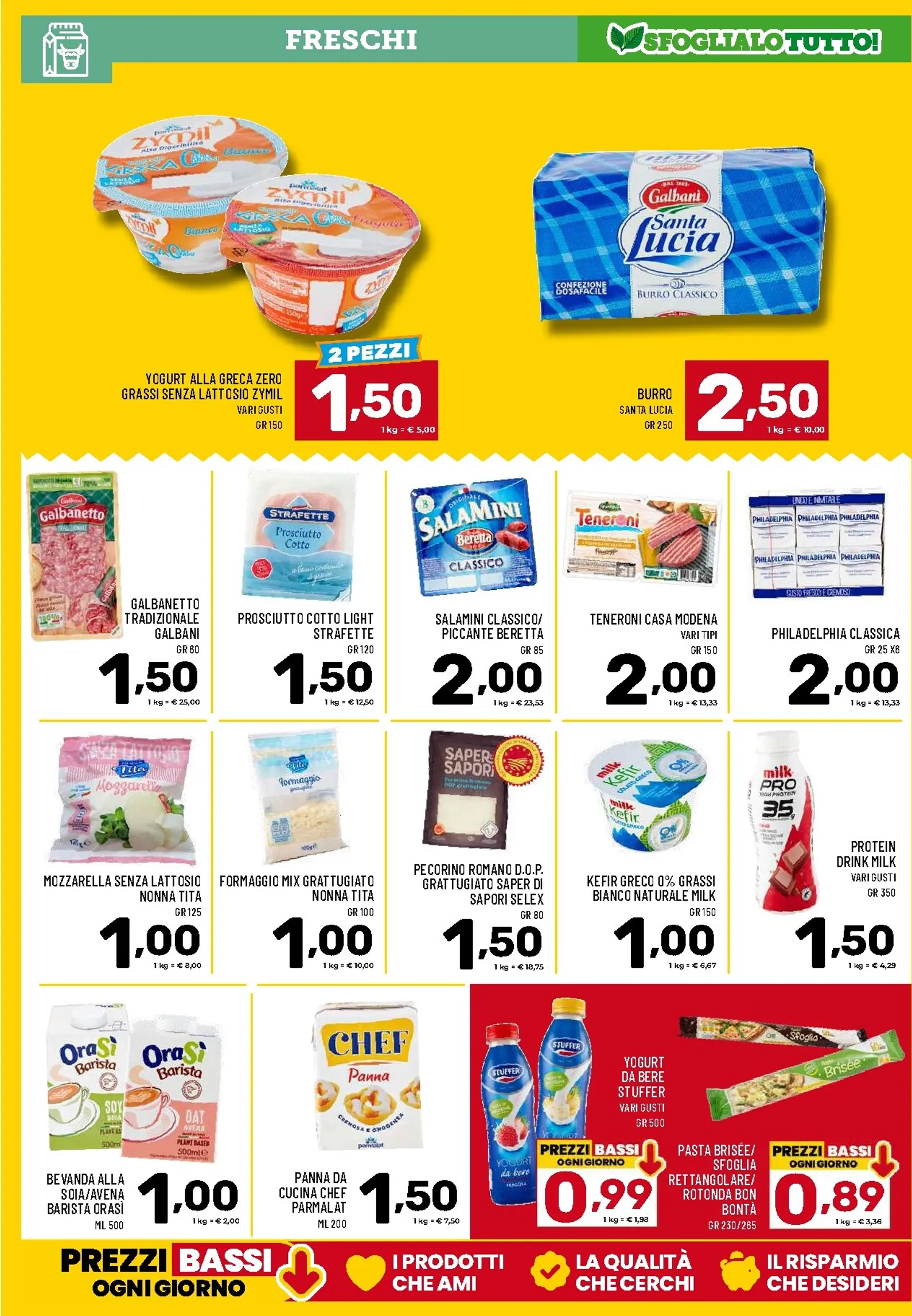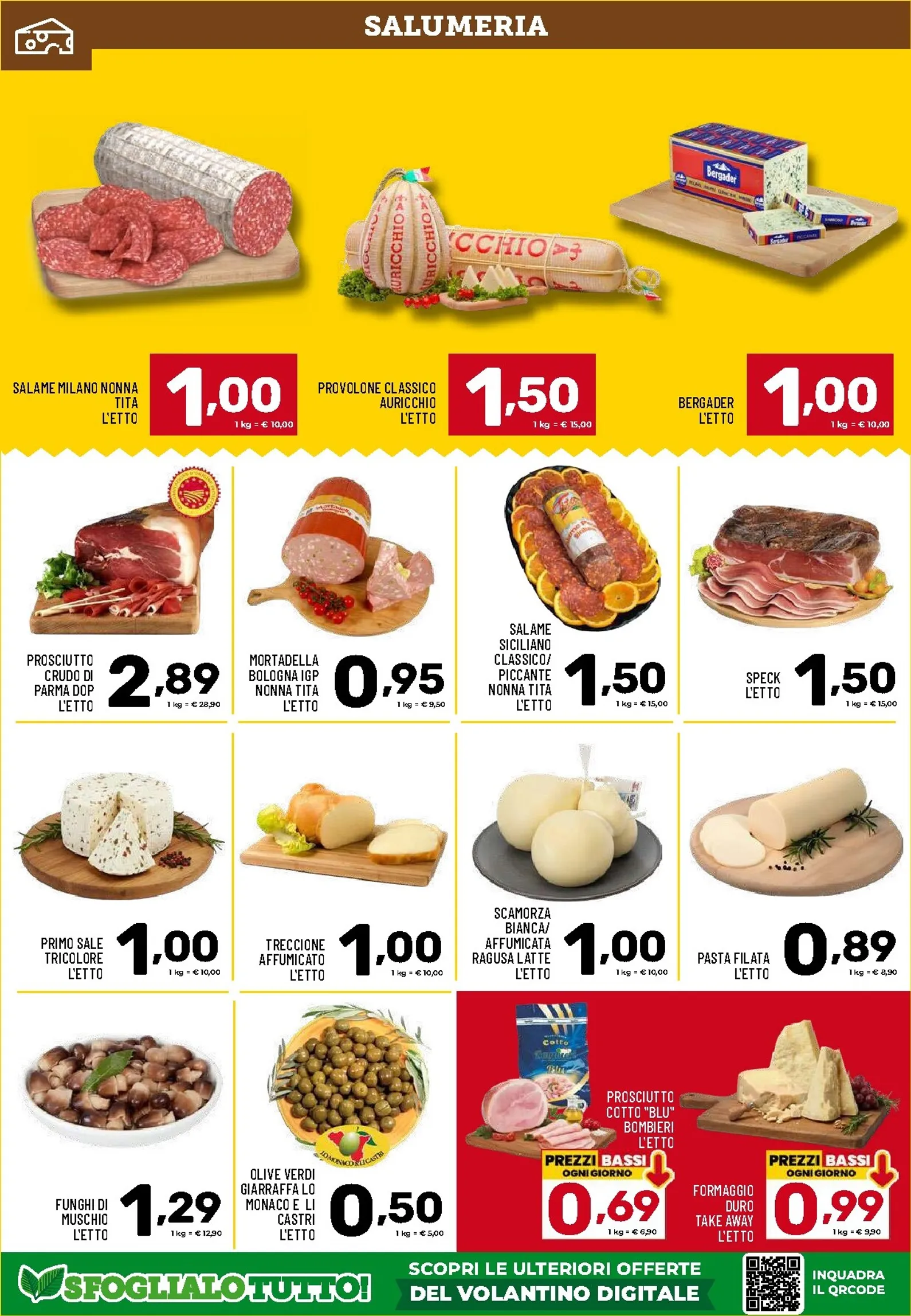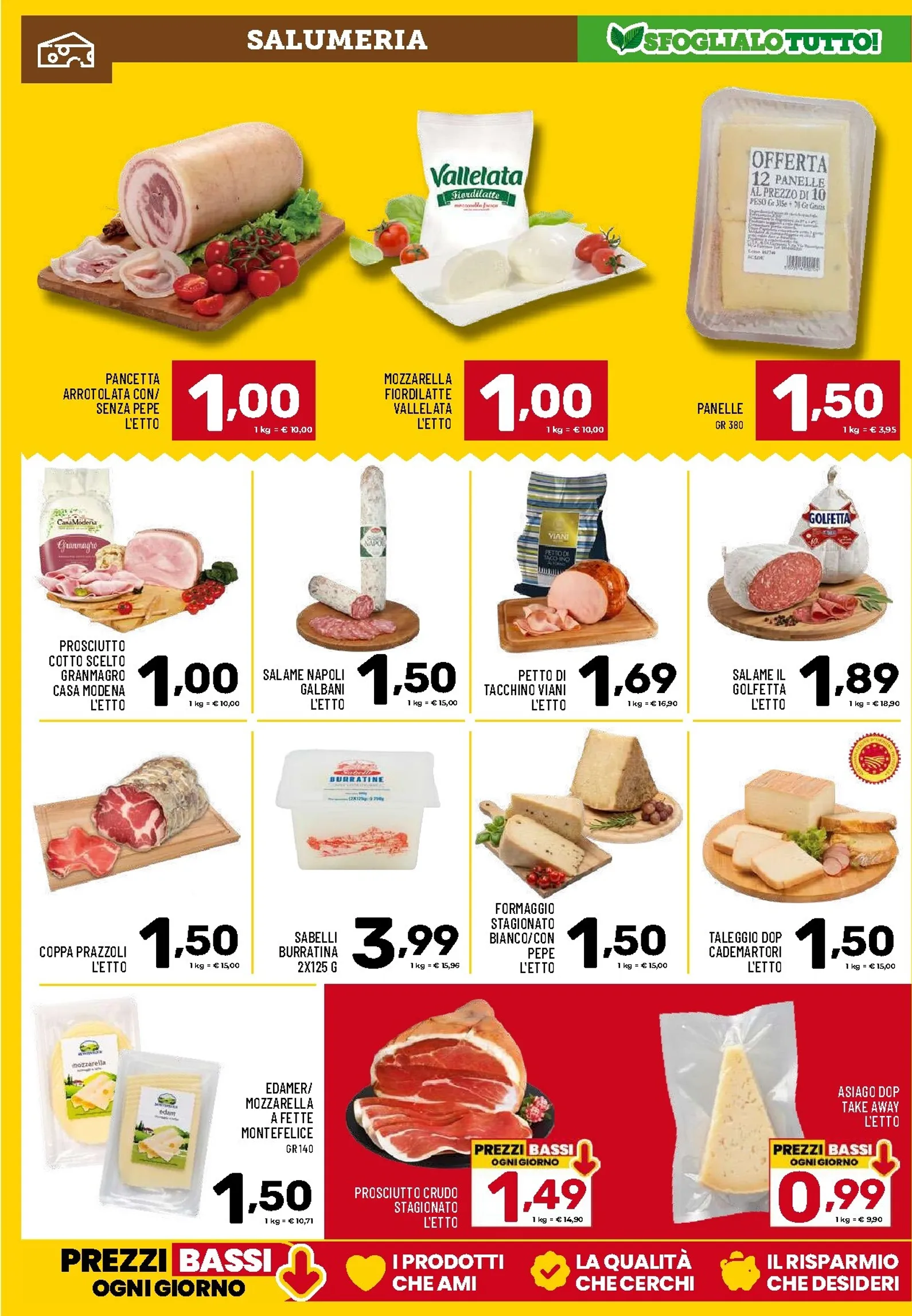 Il reparto salumeria offre una ricca selezione di eccellenze italiane a prezzi vantaggiosi. Troviamo il Prosciutto Crudo di Parma DOP a 2,89€ l’etto e la Mortadella Bologna IGP a soli 0,95€ l’etto. Moltissime altre specialità, come il Salame Milano, il Provolone Auricchio e la Pancetta Arrotolata, sono disponibili a 1€ l’etto. Queste offerte sono perfette per arricchire la tavola con gusto.