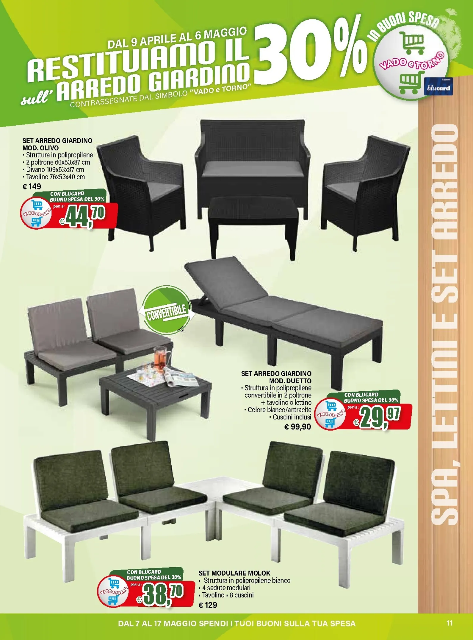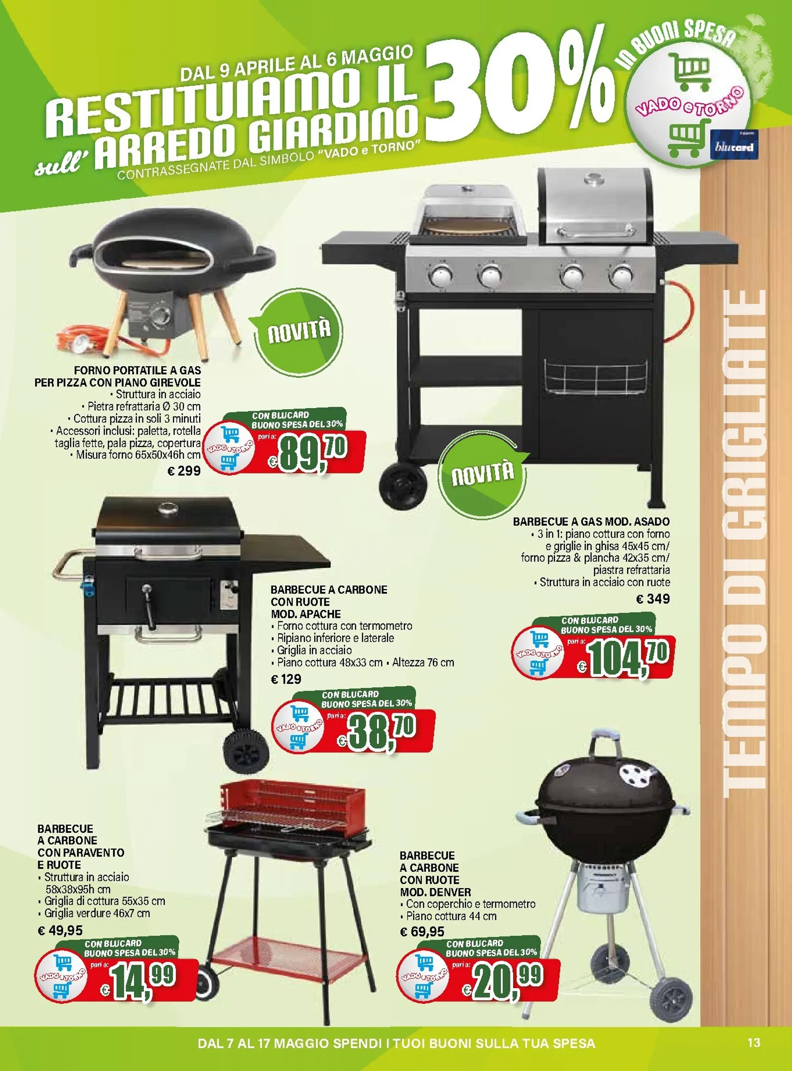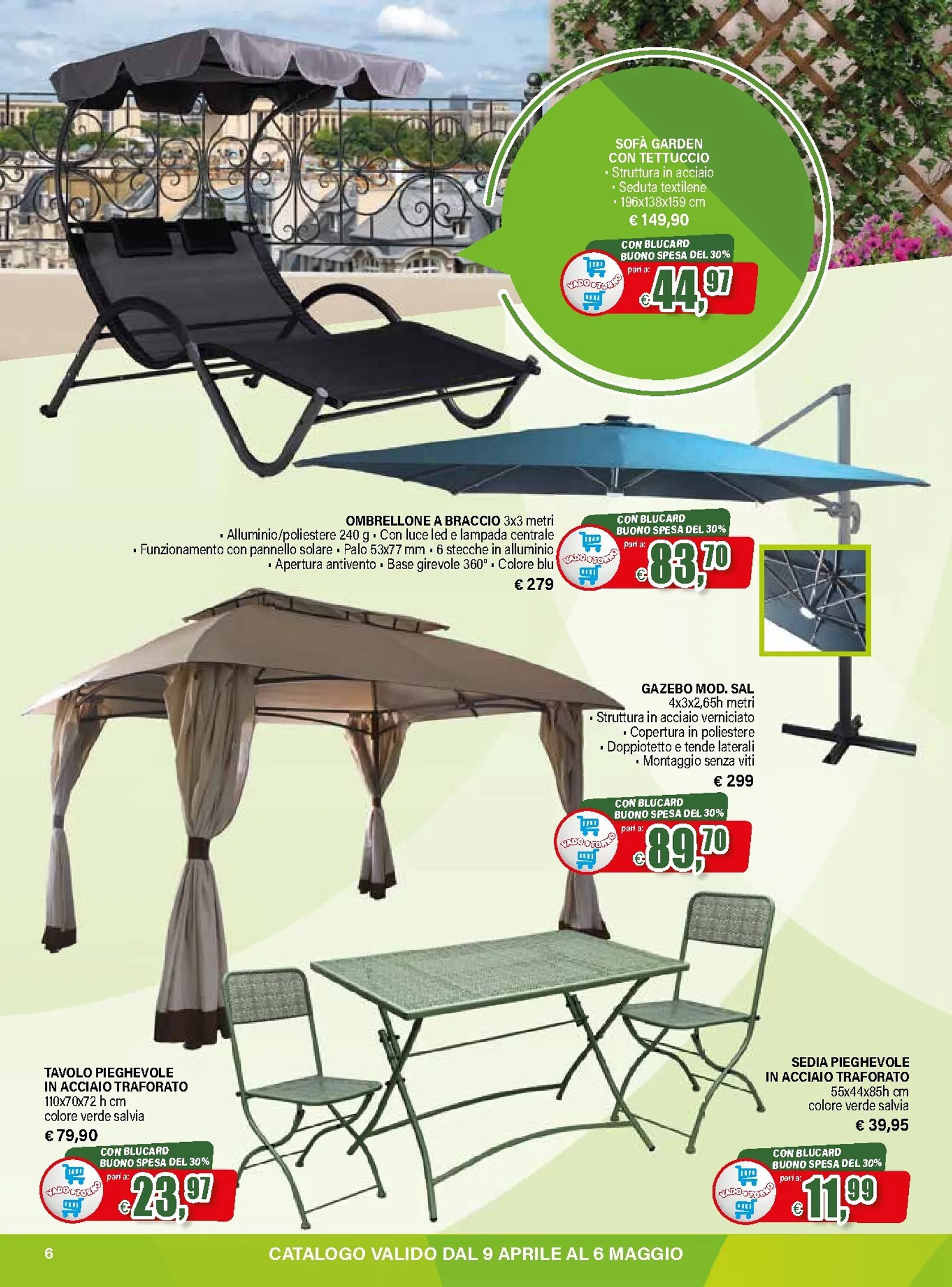 La primavera porta una grande novità da Il Gigante con la promozione “Vado e Torno”, attiva dal 9 aprile al 6 maggio 2026. Riservata ai clienti Blucard, l’iniziativa restituisce il 30% del valore speso in arredo giardino tramite buoni spesa. È un’occasione unica per rinnovare gli spazi esterni. Grazie a Il Gigante Volantino dal 09/04/2026, accedere a un catalogo ricco di proposte è semplice, un’anteprima ideale per chi cerca qualità e convenienza.