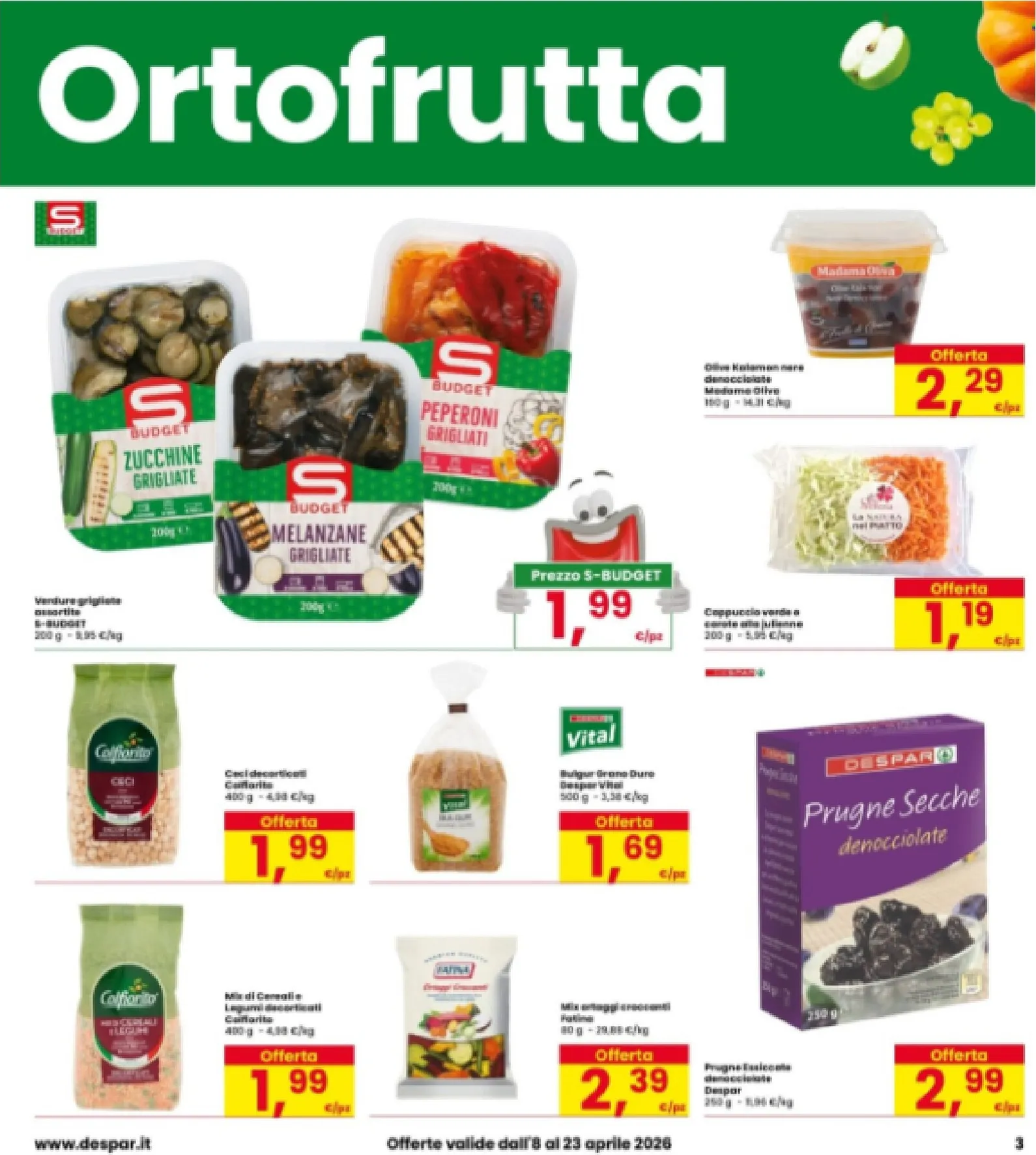 La convenienza continua con i prodotti per la dispensa. La linea S-Budget propone verdure grigliate a 1,99€, ideali per contorni veloci. Per l’aperitivo, le olive Kalamon nere sono a 2,29€, mentre i legumi Colfiorito partono da 1,99€. Questo nuovo catalogo è pieno di soluzioni pratiche per la tavola, come le prugne secche Despar, perfette per uno spuntino sano. Una spesa completa e di qualità è semplice e vantaggiosa.