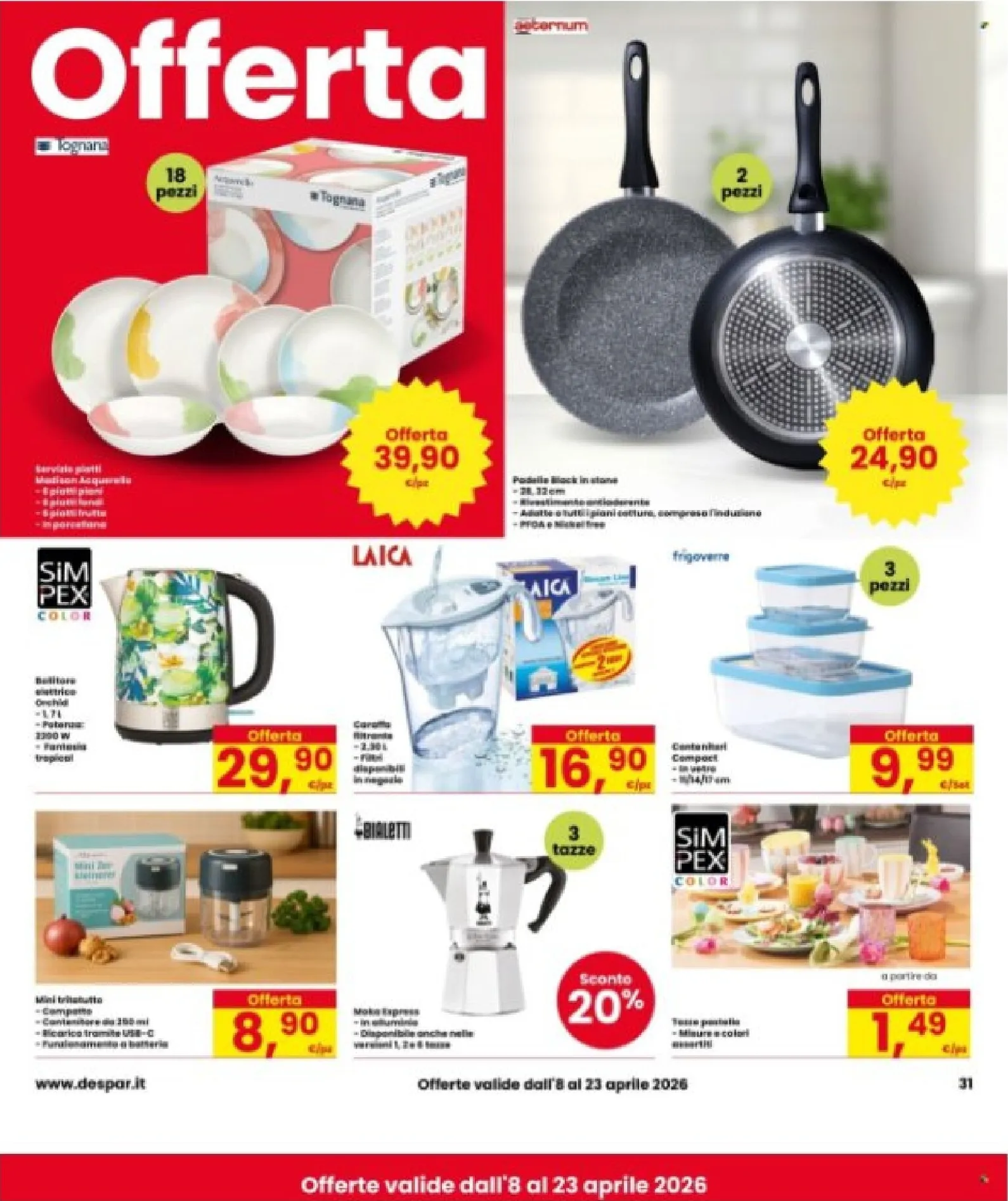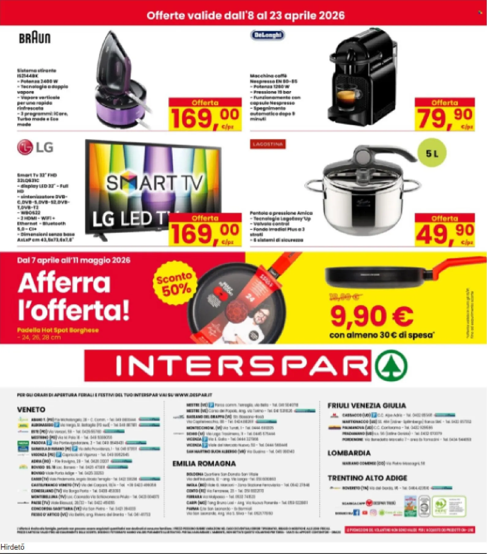 Le offerte si estendono anche a tecnologia e casa. Trovate la macchina caffè De’Longhi a 79,90€ e la Smart TV LG 32″ a 169€. Per la cucina, la pentola a pressione Lagostina è un’occasione a 49,90€. Per visionare queste nuovo offerte e altre ancora, il Interspar Volantino è la vostra guida. Ricordate, utilizzando Interspar Volantino dal 08/04/2026 potrete sempre accedere alle migliori opportunità per un risparmio intelligente.